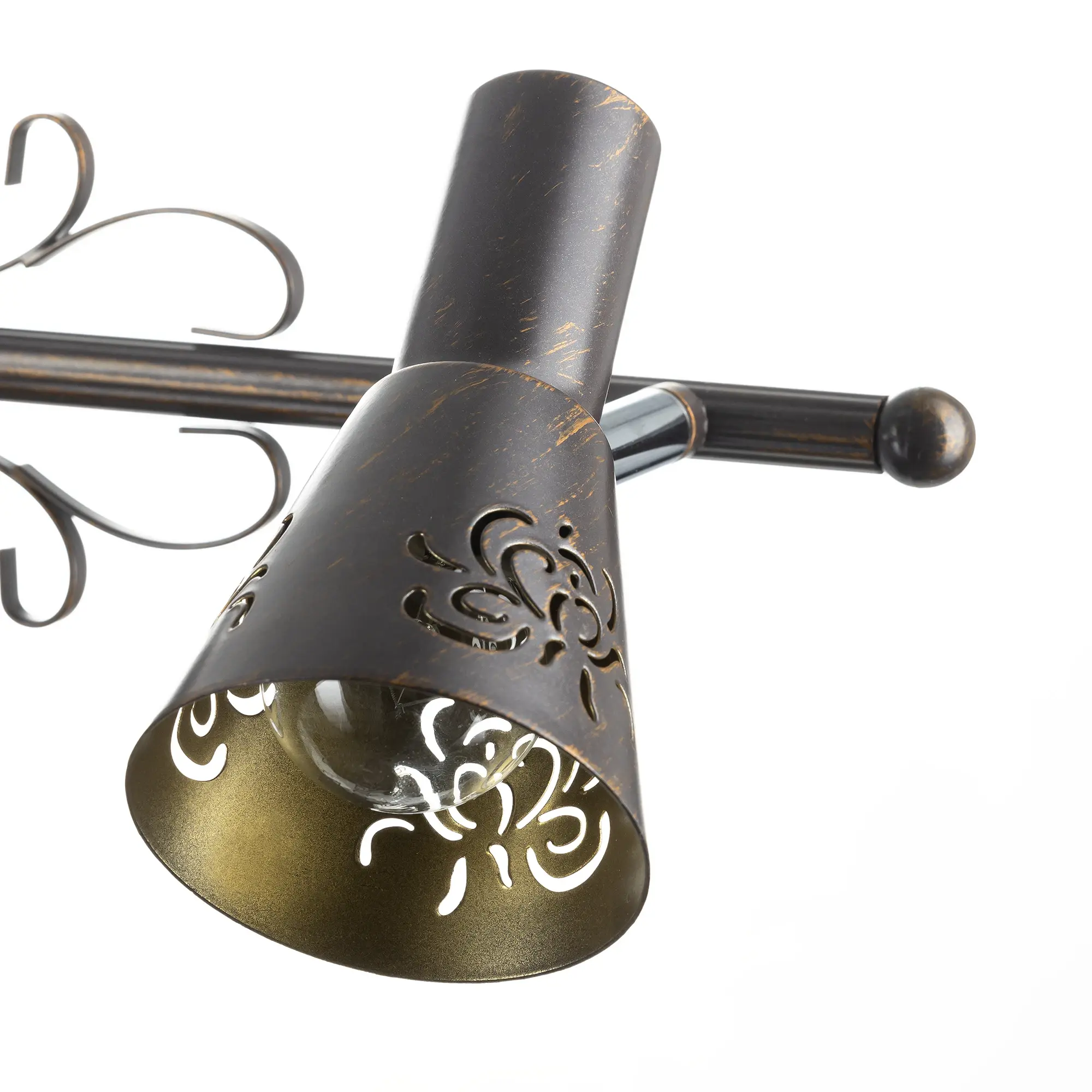 Каждый плафон закреплен на поворотном шарнире, что позволяет вращать его в разные стороны. Рожки вращаются независимо друг от друга, создавая потрясающие возможности для настройки освещения. В светильнике используется три лампы с цоколем E14 (не входят в комплект).