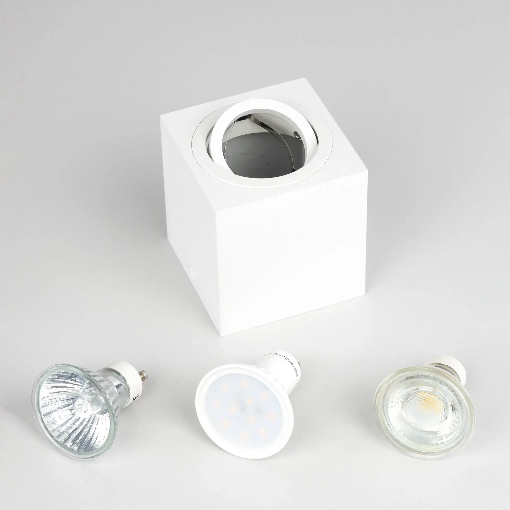 В изделии используется лампа с цоколем GU10 максимальной мощностью для галогенной лампы 50Вт. Рекомендуем использовать светодиодные лампы с прозрачным рассеивателем.