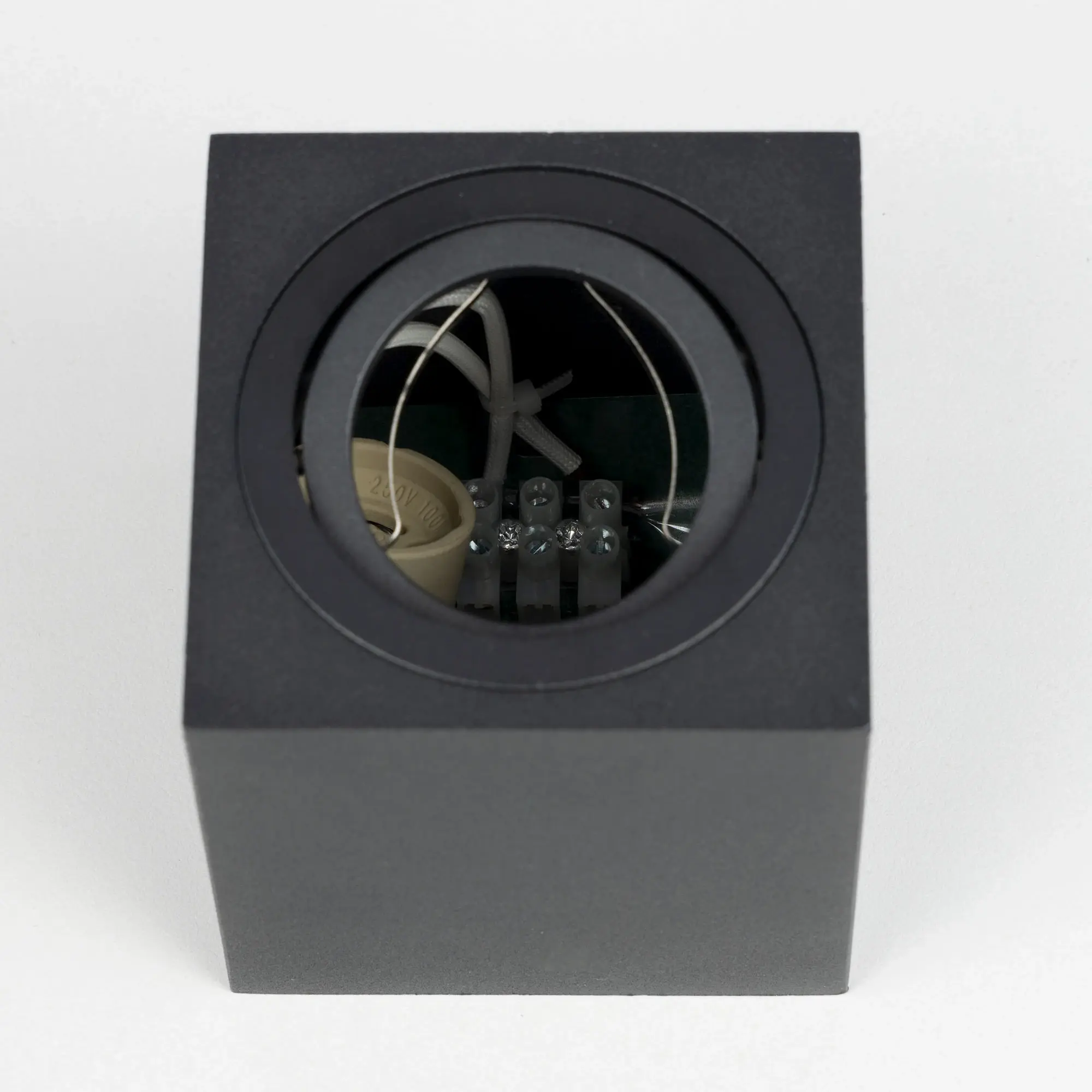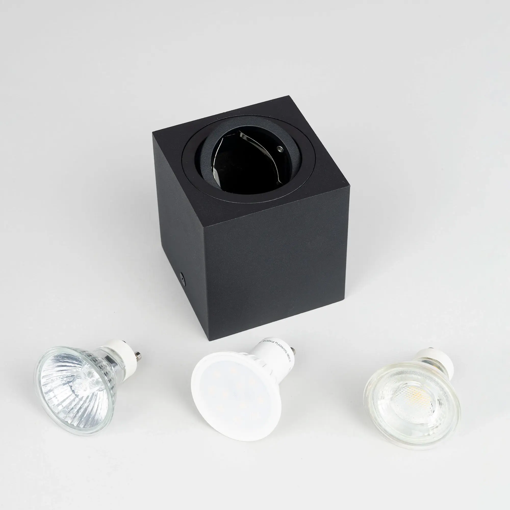 В изделии используется лампа с цоколем GU10 максимальной мощностью для галогенной лампы 50Вт (лампа в комплект не входит). Рекомендуем использовать светодиодные лампы с прозрачным рассеивателем.