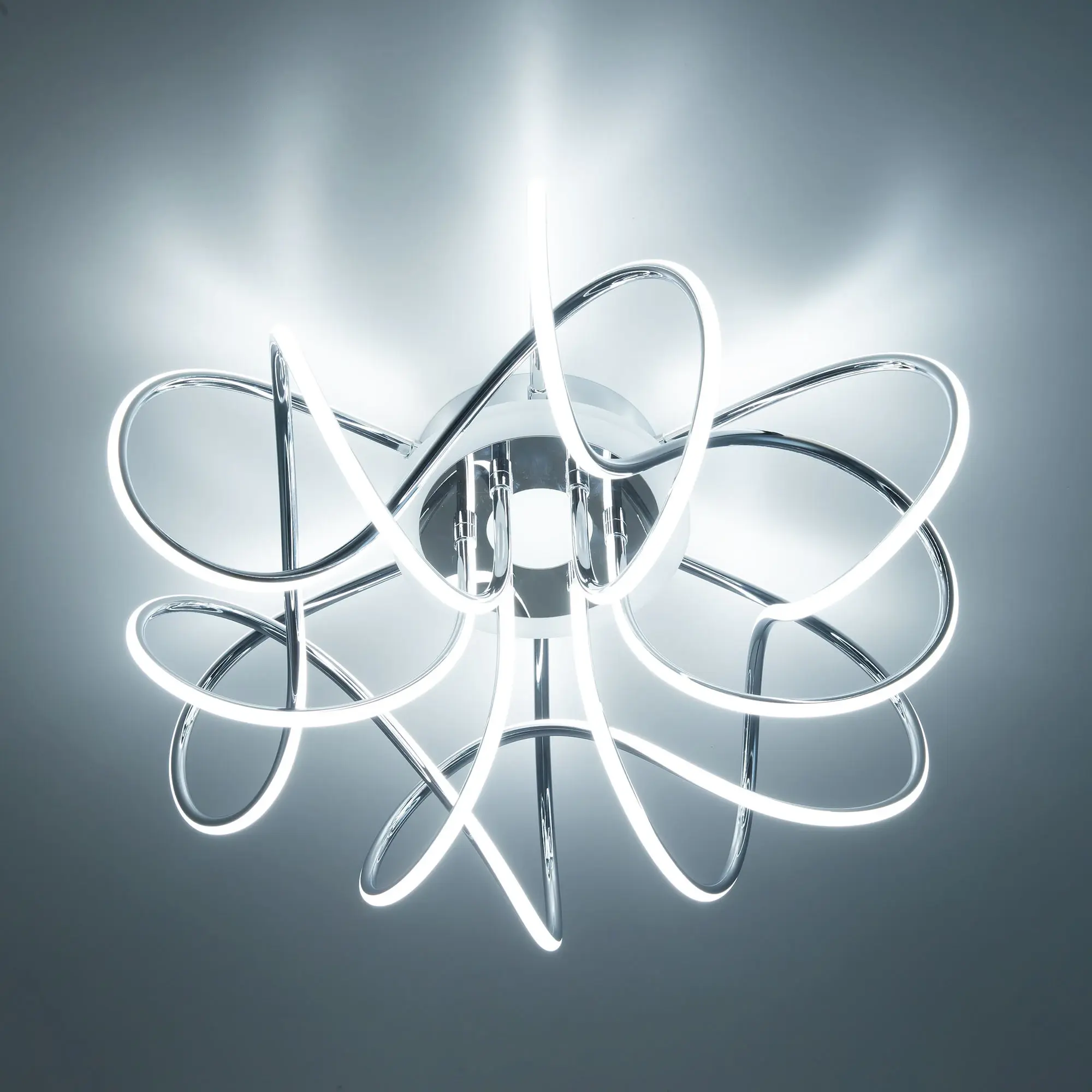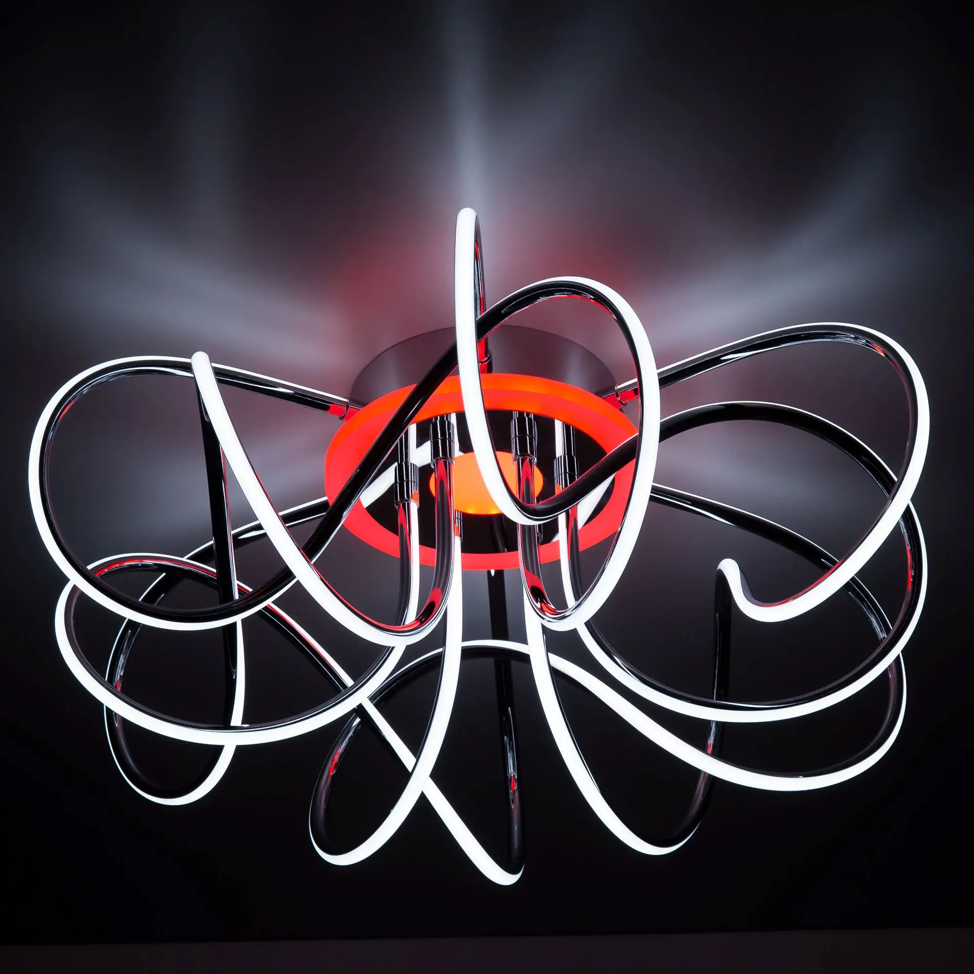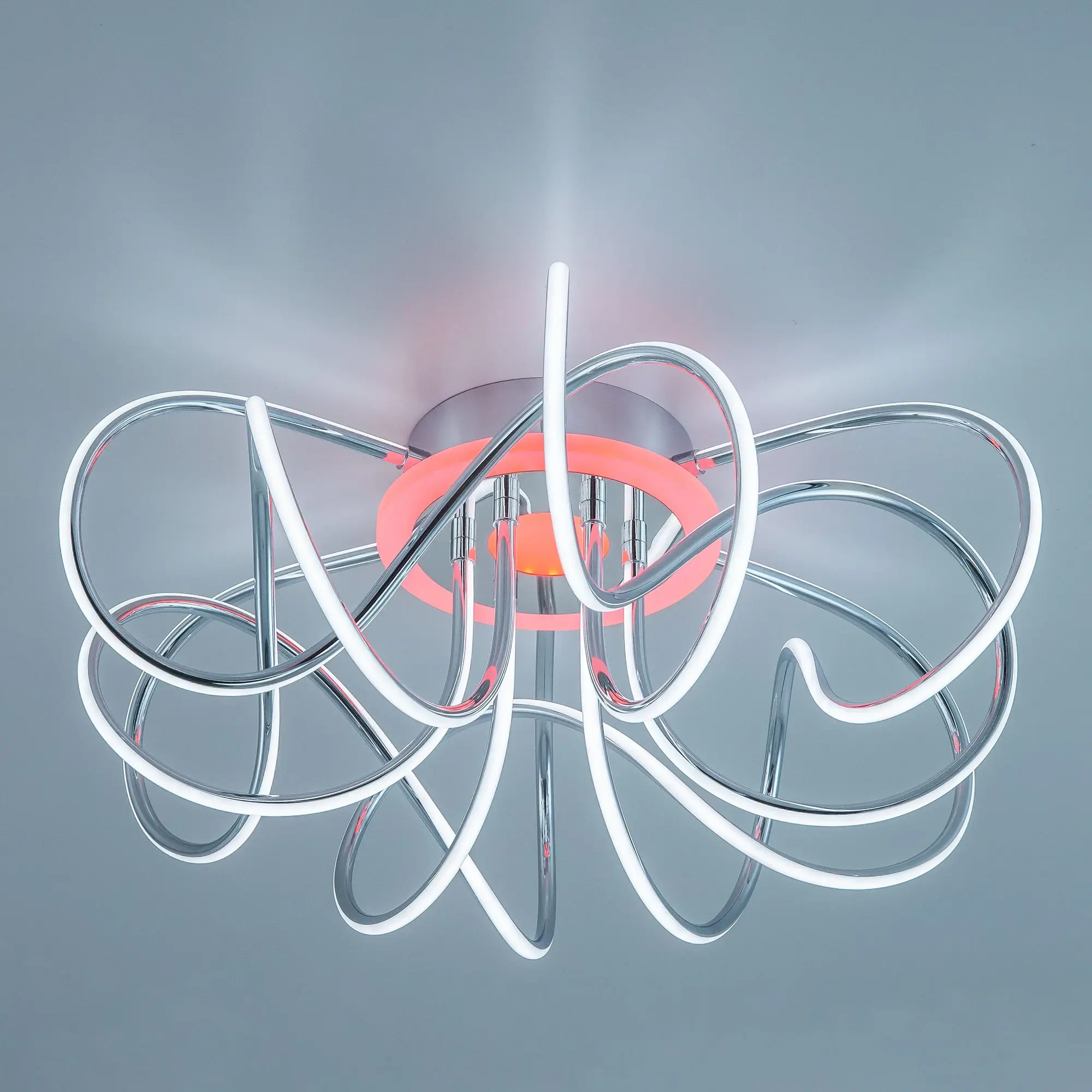 Светодиодная потолочная люстра Citilux Джемини Смарт CL229A161E RGB с голосовым управлением является ярким представителем современных УМНЫХ светильников экосистемы Citilux SMART. Светильник с круглым основанием и изогнутыми рожками. Корпус изготовлен из металла, цвет хром. Рассеиватель белый матовый из оптического полимера. Модель подходит для всех типов потолков, в том числе натяжных, тип крепления – планка. Люстрой можно управлять: из приложения на смартфоне по Wi-Fi при наличии интернета, с помощью голосовых помощников Алиса и Маруся, есть возможность запуска настроенных сценариев с помощью Сири, а также пультом дистанционного управления и с настенного выключателя. Изделие оснащено мощными светодиодами, с возможностью плавной регулировки яркости от 100% до 10%. Цветовая температура регулируется в диапазоне от 3000К до 5500К, позволяя настроить любые оттенки теплого, нейтрального или холодного света. В основании светильника установлена независимая цветная RGB подсветка. Мощность люстры 130Вт. Пульт ДУ в комплекте, тип батареек ААА (батарейками не комплектуется).