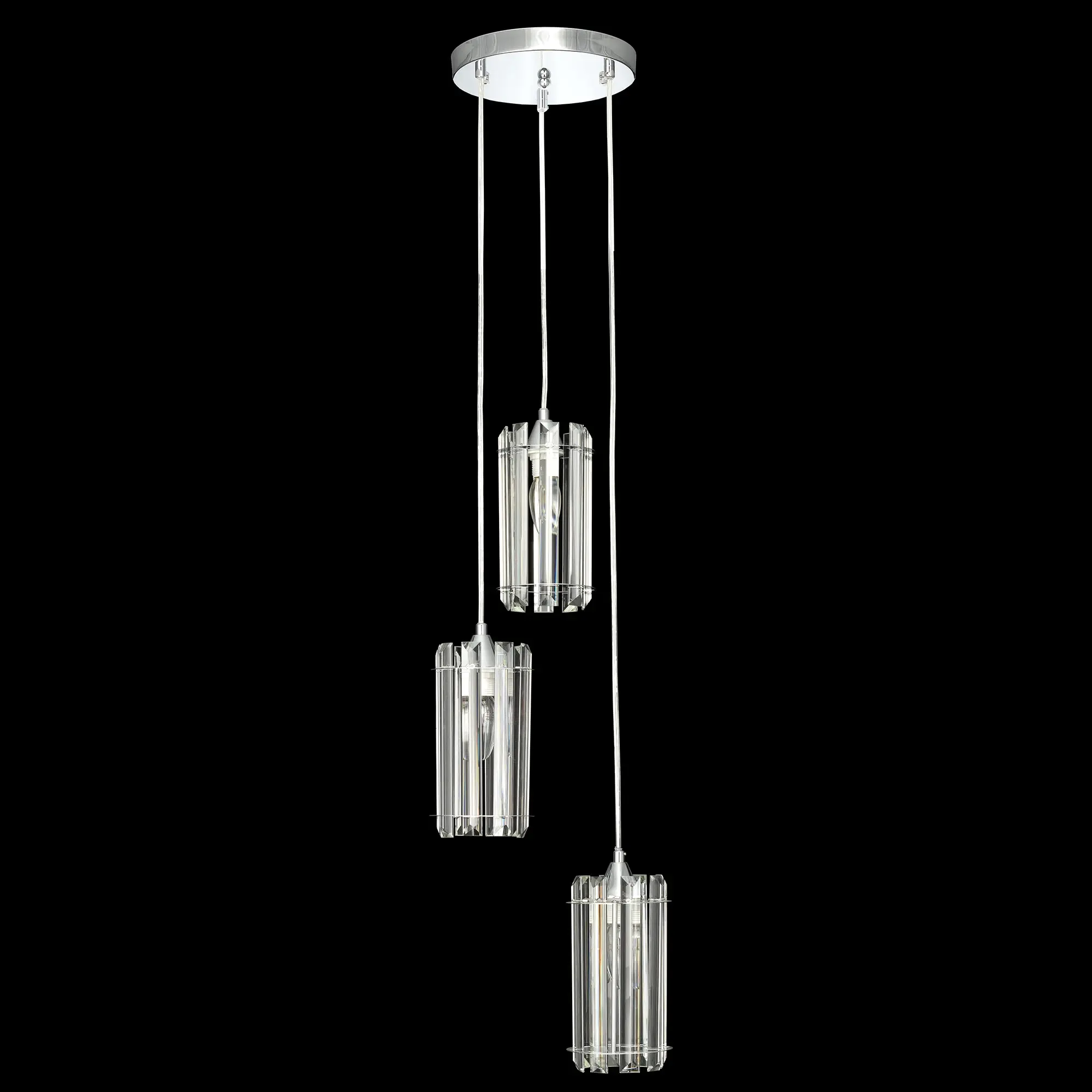 Подвесной хрустальный светильник Citilux Джейн CL306031 выполнен в современном стиле. Он имеет металлическое основание круглой формы и глянцевое хромированное покрытие. Особенностью данной модели являются три хрустальных подвесных плафона, ниспадающие изящным каскадом. Каждый плафон цилиндрической формы, крупные хрустальные элементы кристально прозрачные с современной огранкой.