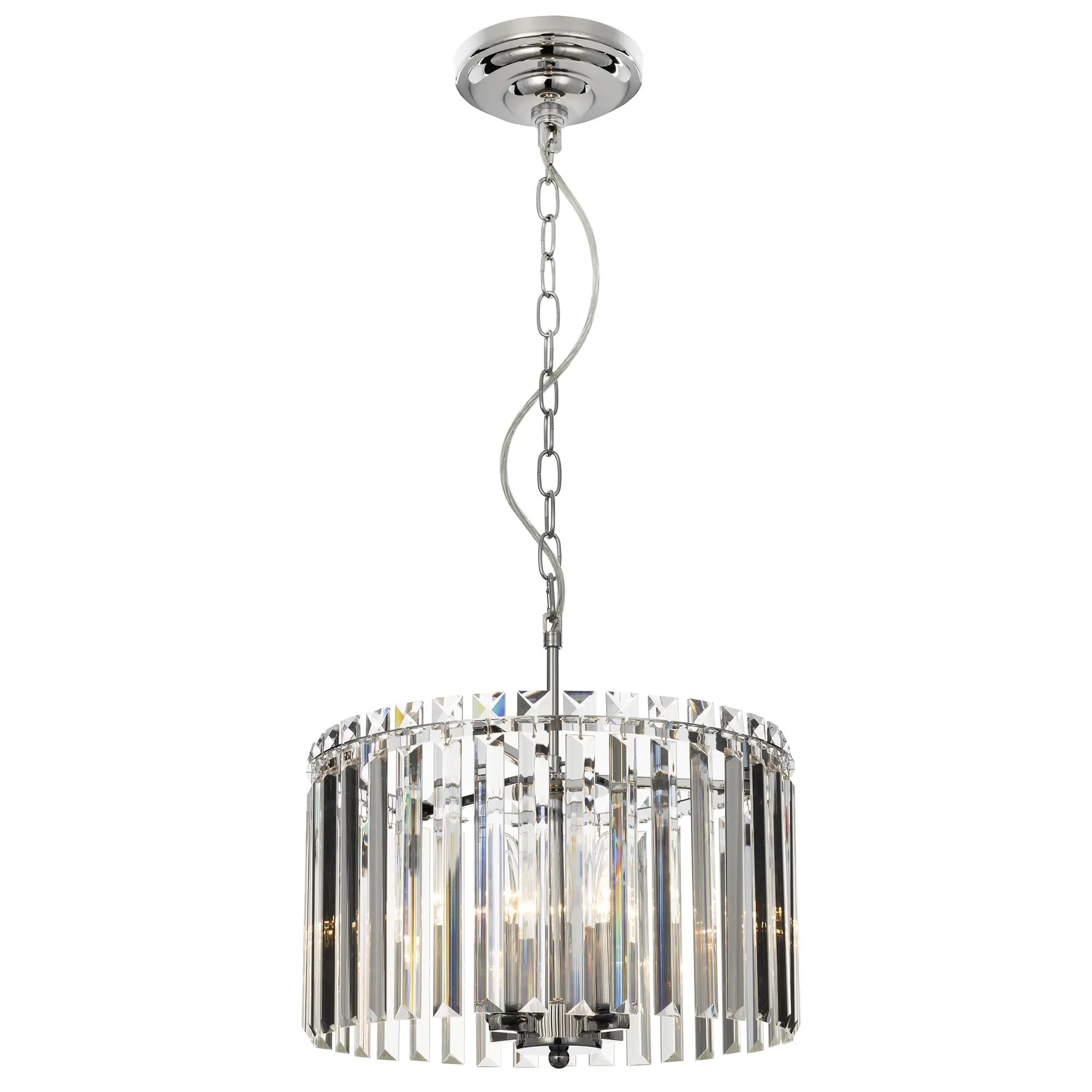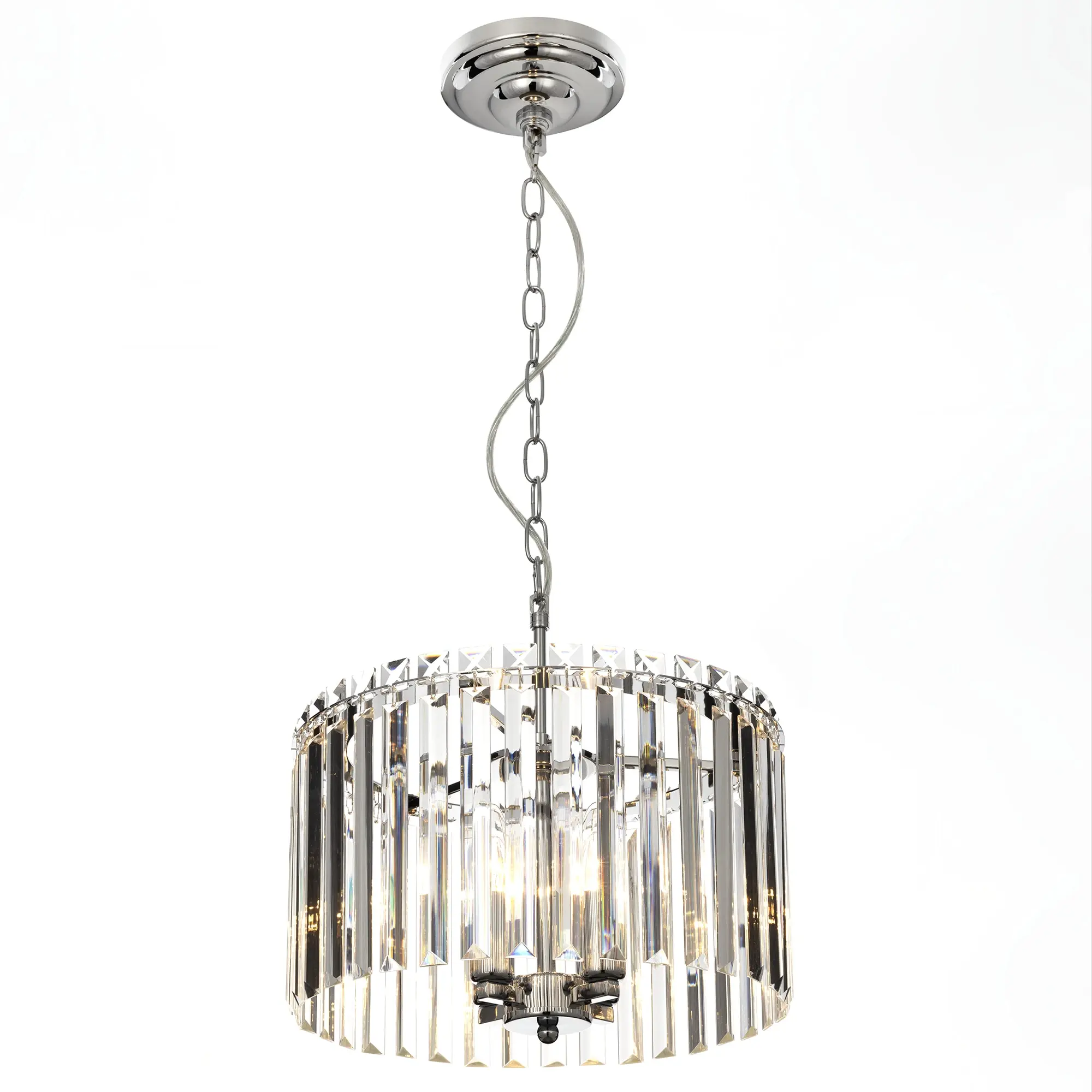 Подвесная хрустальная люстра Citilux Джейн CL306141 выполнена в стиле современной классики. Корпус светильника металлический круглой формы, цвет глянцевый хром. Подвески хрустальные, кристально прозрачные с модной огранкой.