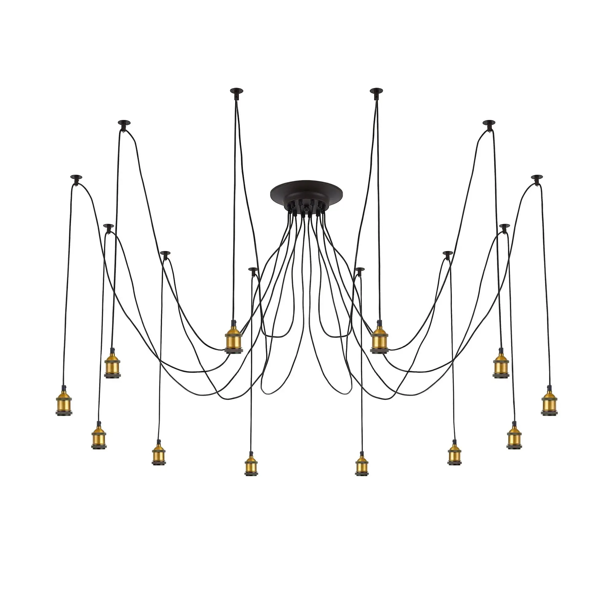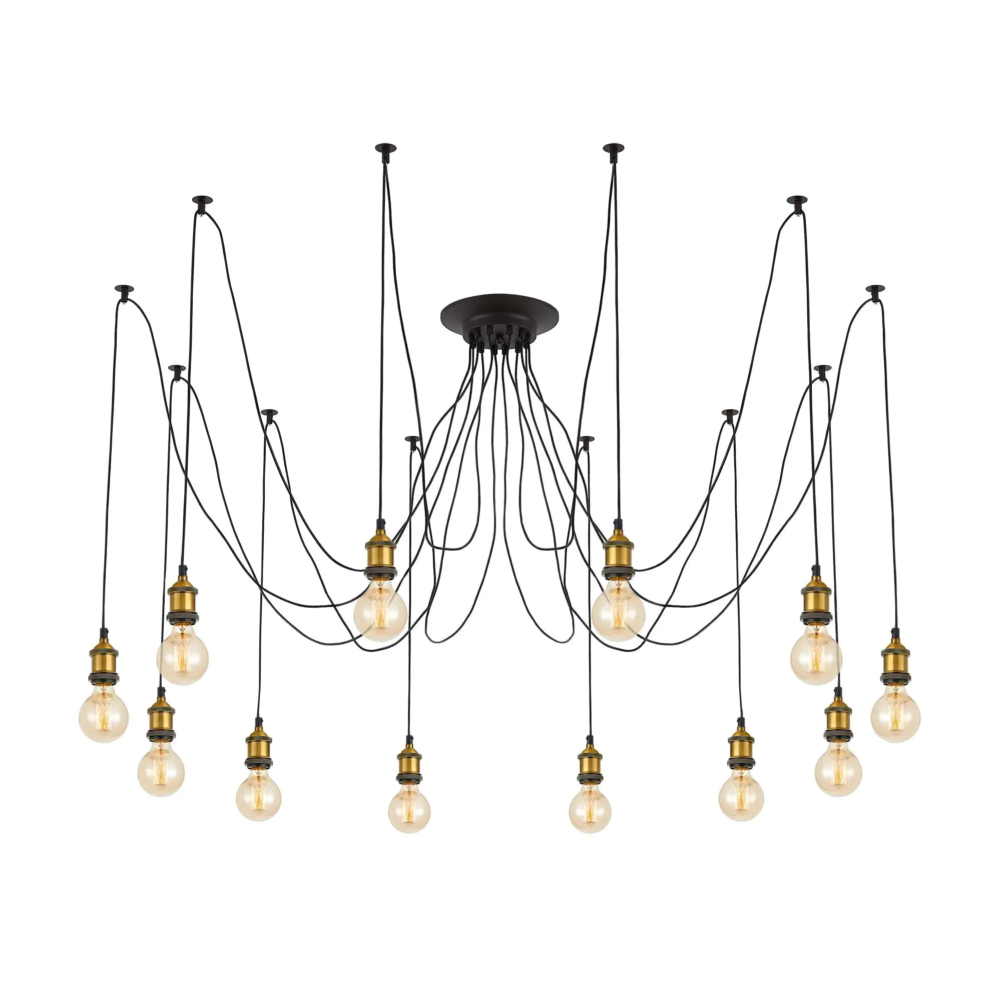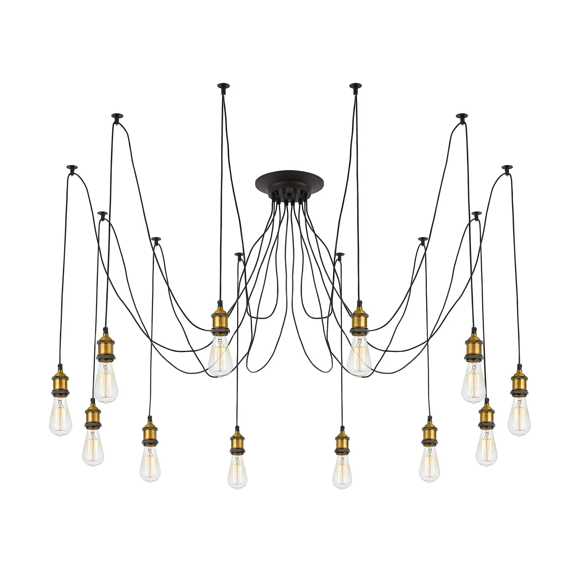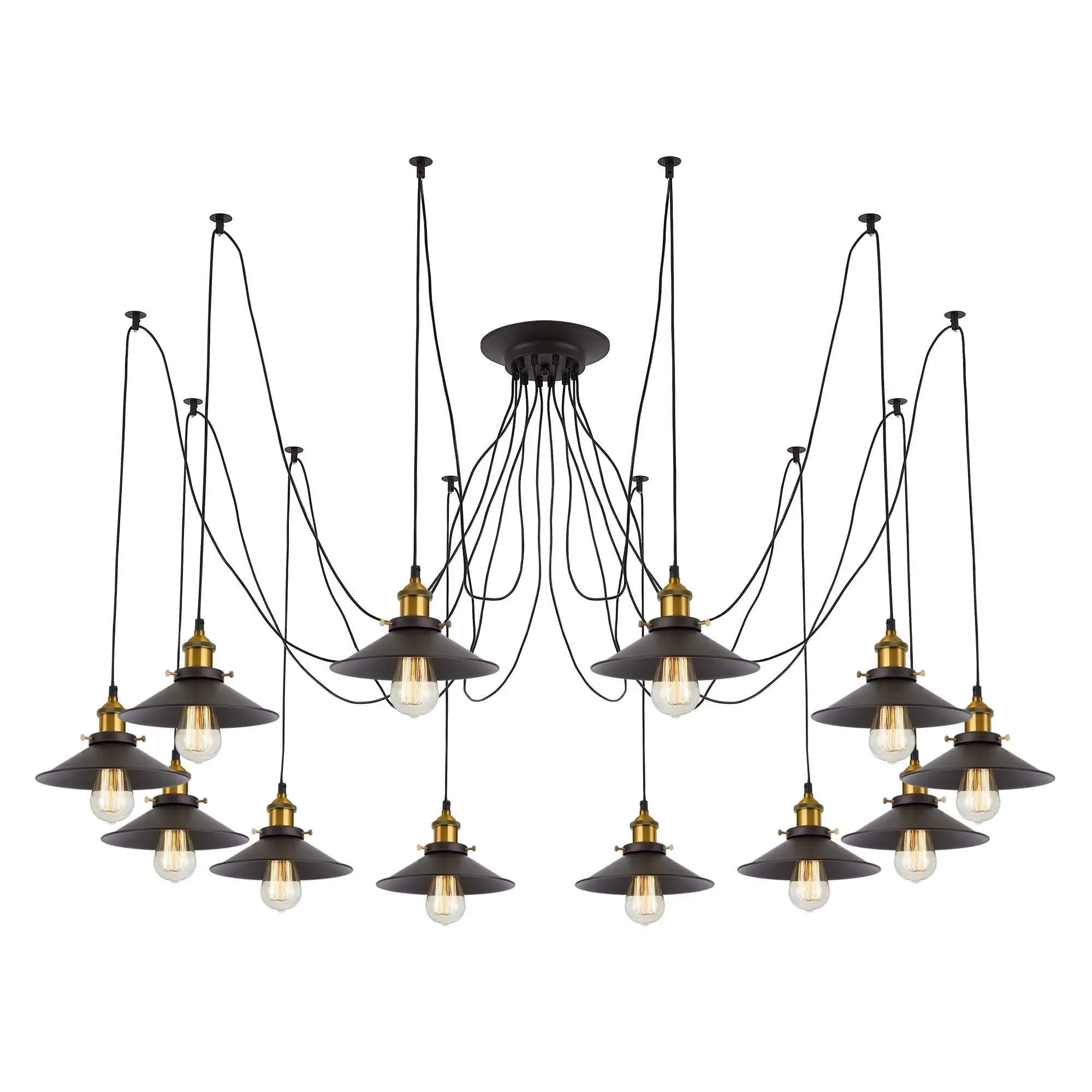 В изделии 12 ламп с цоколем Е27 максимальной мощностью для ламп накаливания 75Вт (в комплект не входят, приобретаются отдельно). Длинные провода (по 2,3м), в сочетании с дополнительным индивидуальным крепежом к потолку, позволяют при установке придать светильнику свою уникальную форму и легко адаптировать модель для высоких, стандартных и низких потолков. Тип крепления – планка.