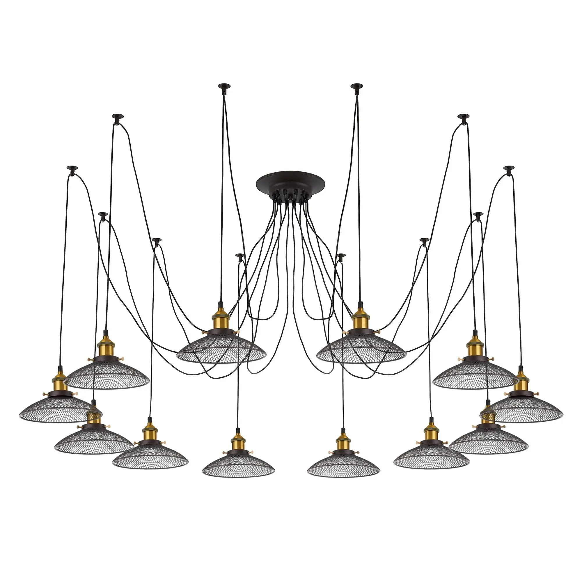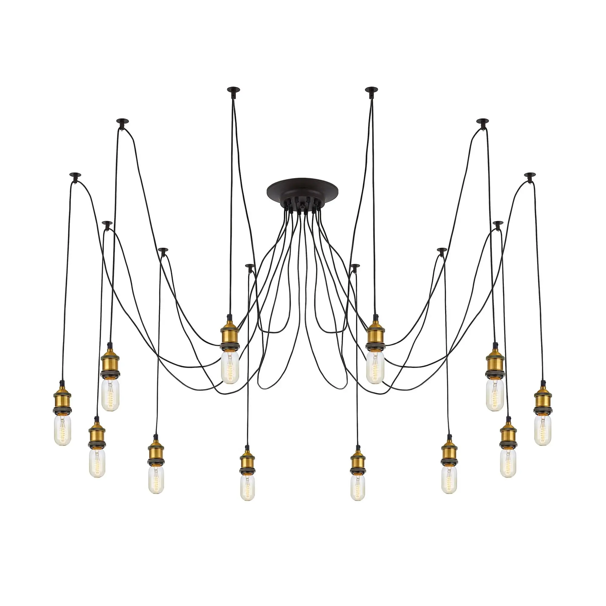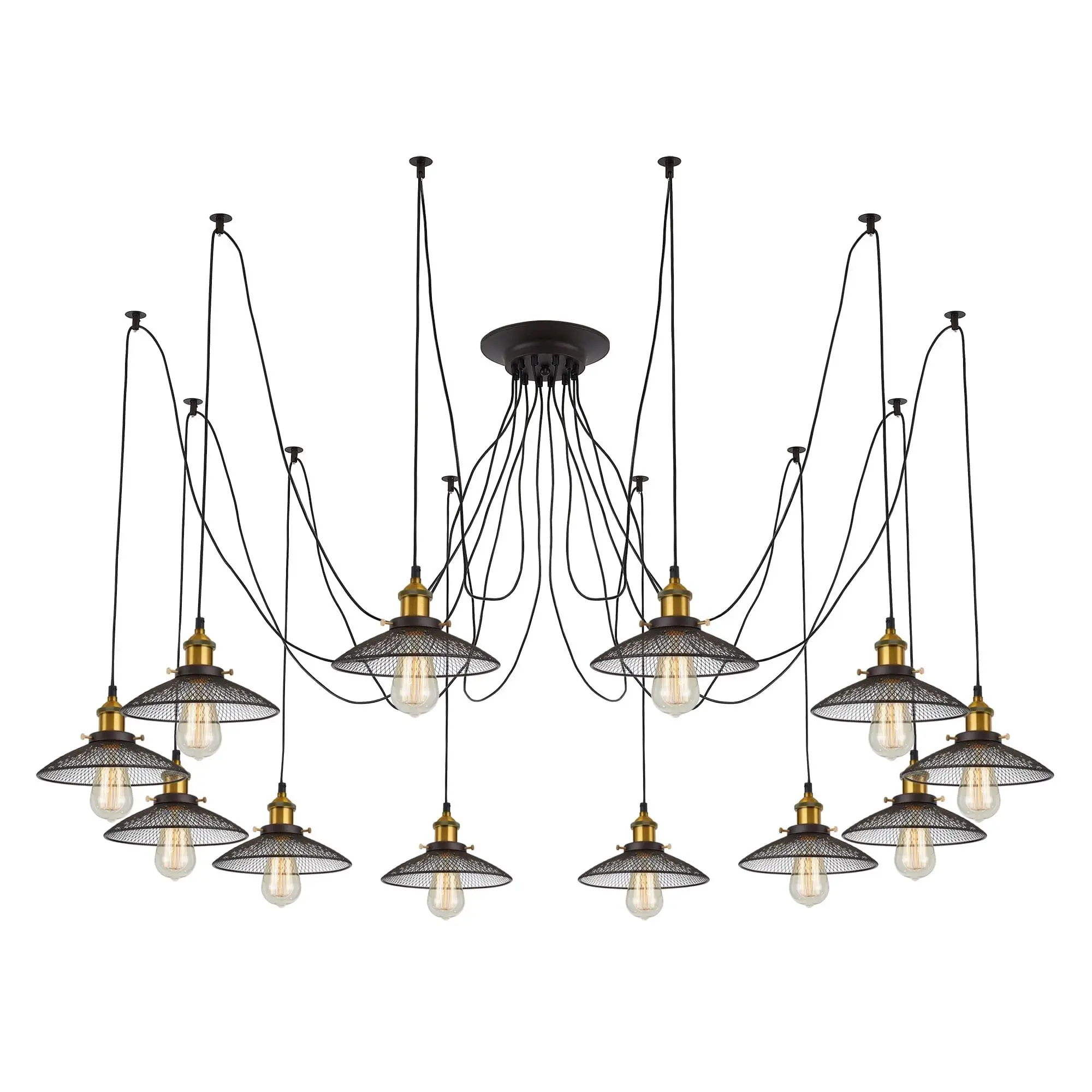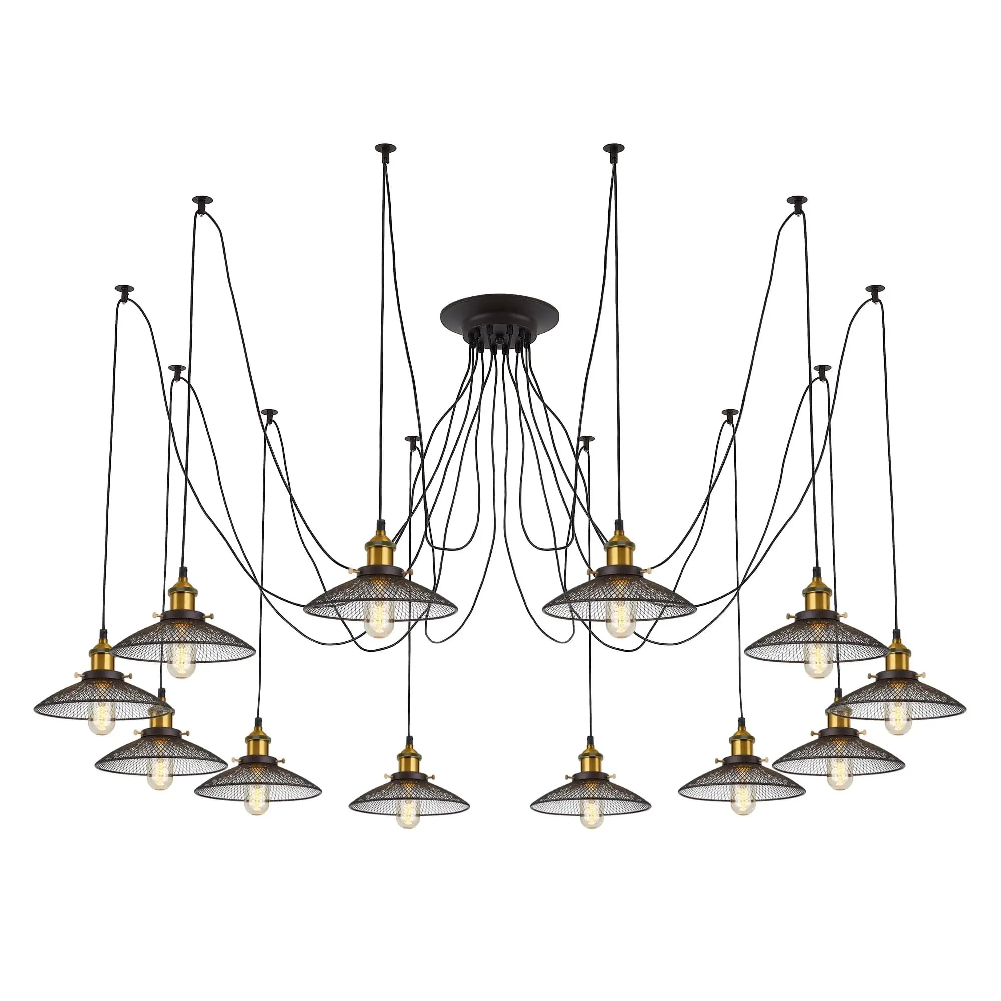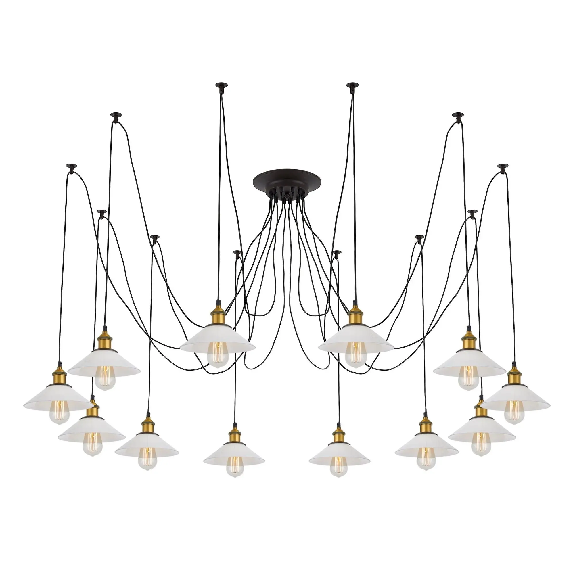 В изделии 12 ламп с цоколем Е27 максимальной мощностью для ламп накаливания 75Вт (в комплект не входят, приобретаются отдельно). Длинные провода (по 2,3м), в сочетании с дополнительным индивидуальным крепежом к потолку, позволяют при установке придать светильнику свою уникальную форму и легко адаптировать модель для высоких, стандартных и низких потолков. Тип крепления – планка.