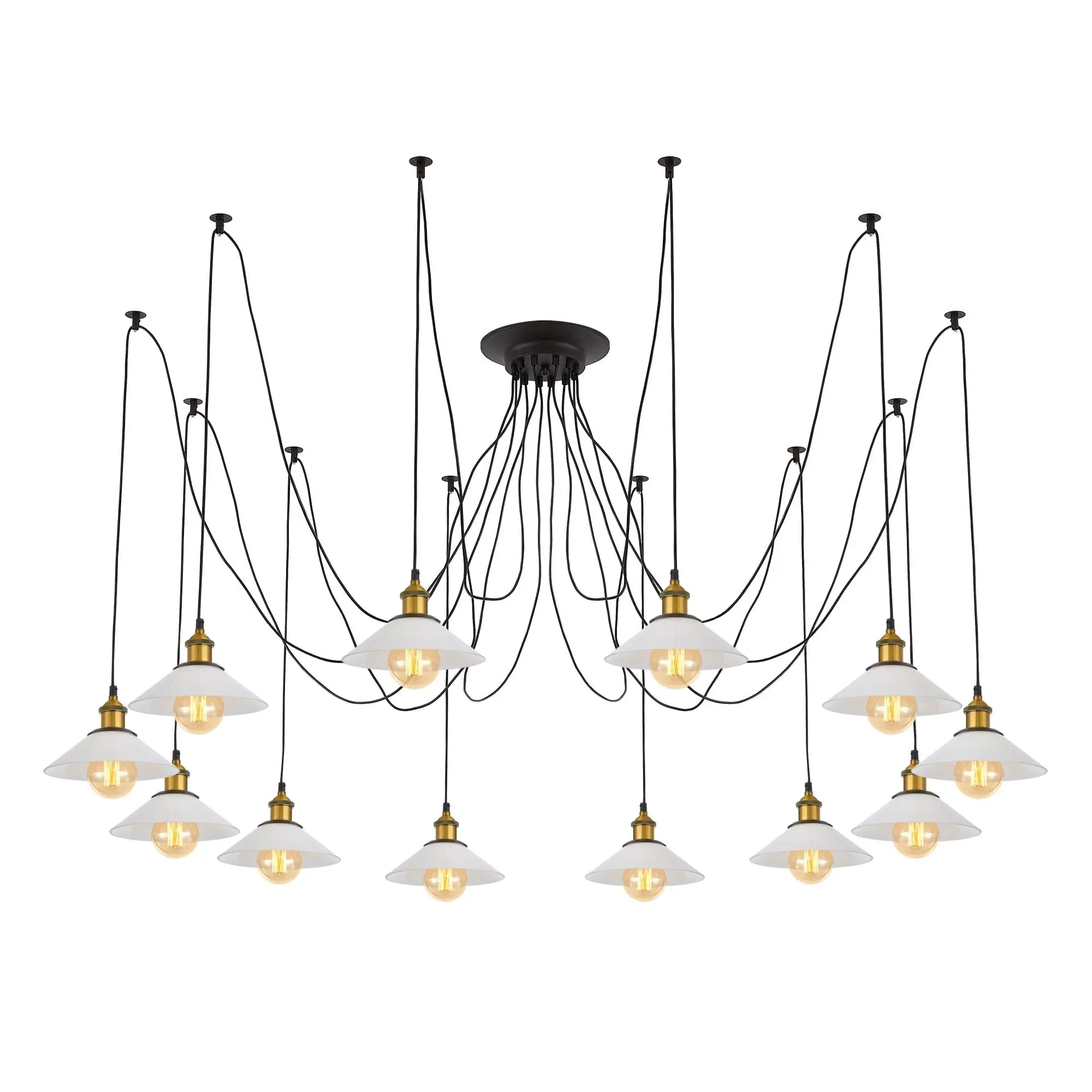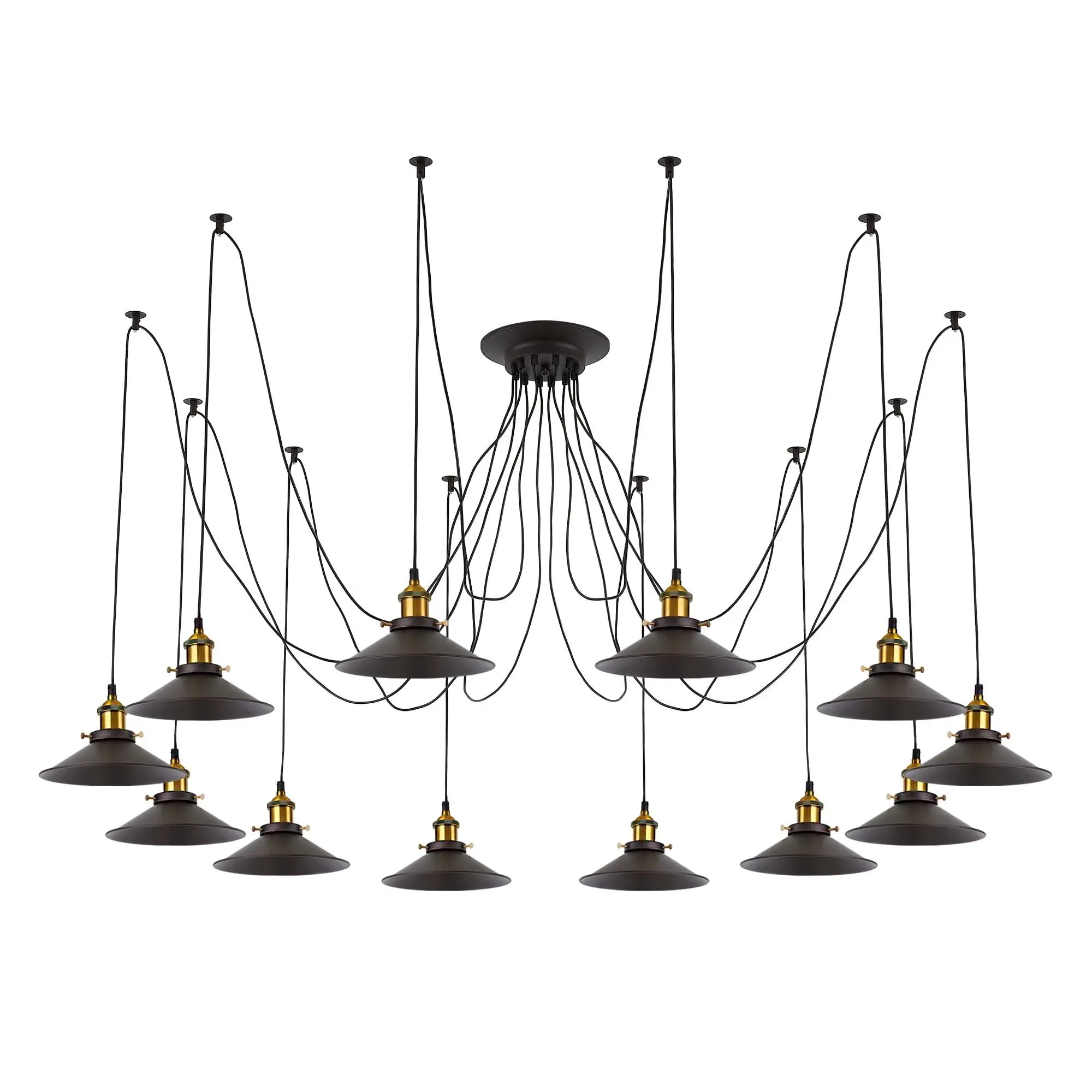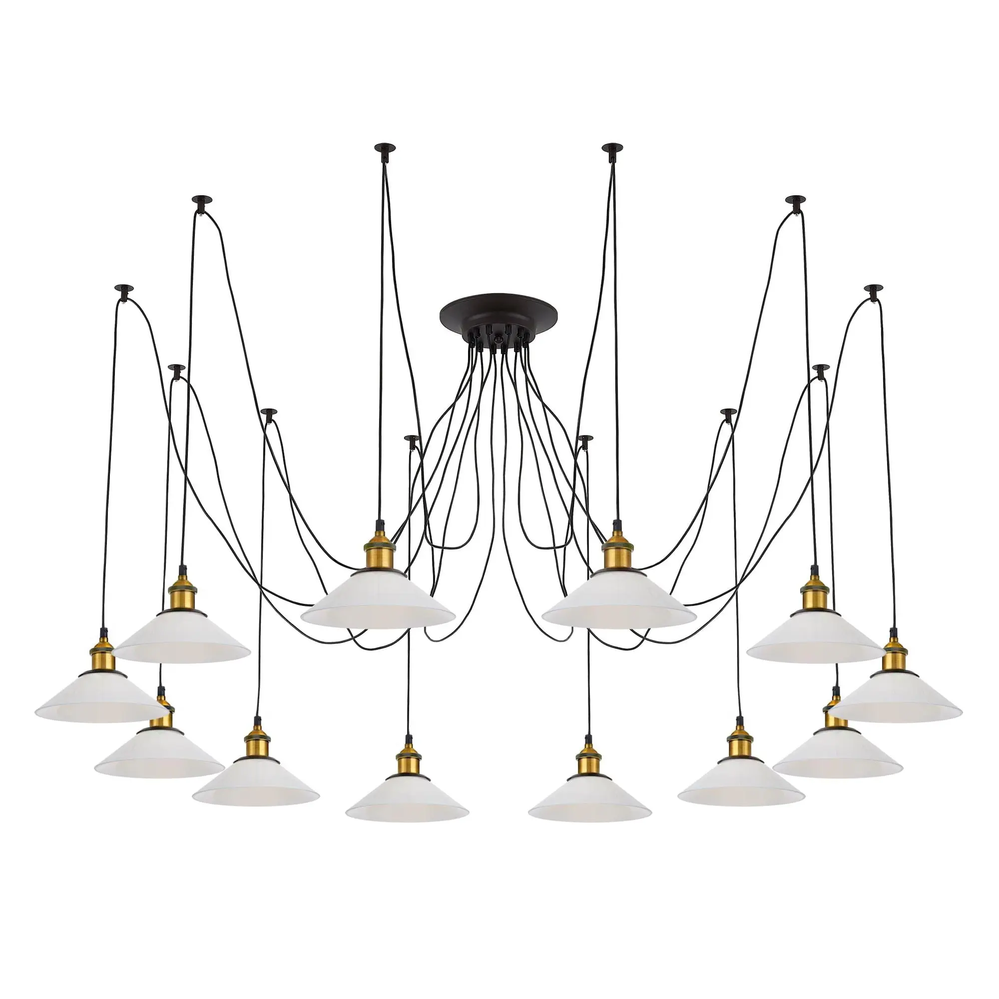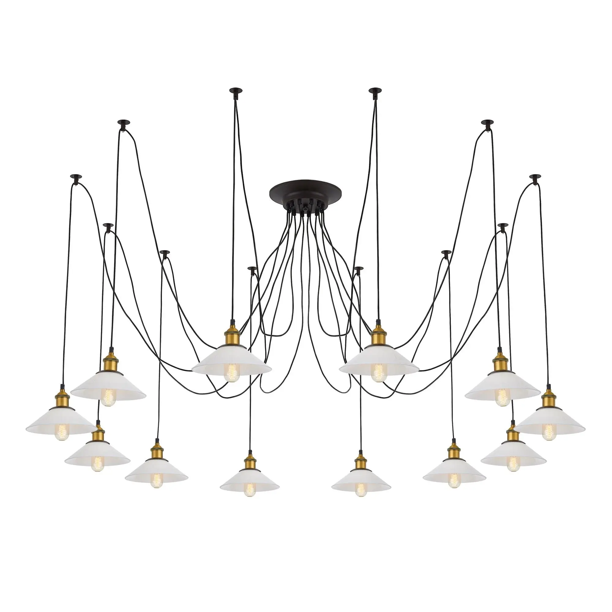 В изделии 12 ламп с цоколем Е27 максимальной мощностью для ламп накаливания 75Вт (в комплект не входят, приобретаются отдельно). Длинные провода (по 2,3м), в сочетании с дополнительным индивидуальным крепежом к потолку, позволяют при установке придать светильнику свою уникальную форму и легко адаптировать модель для высоких, стандартных и низких потолков. Тип крепления – планка.