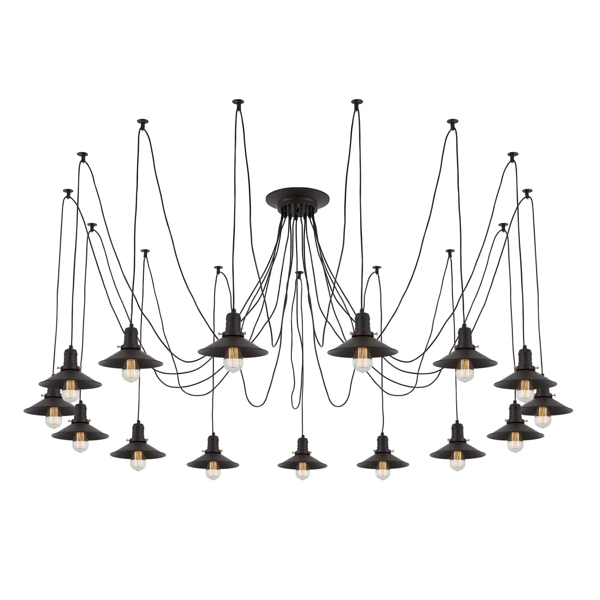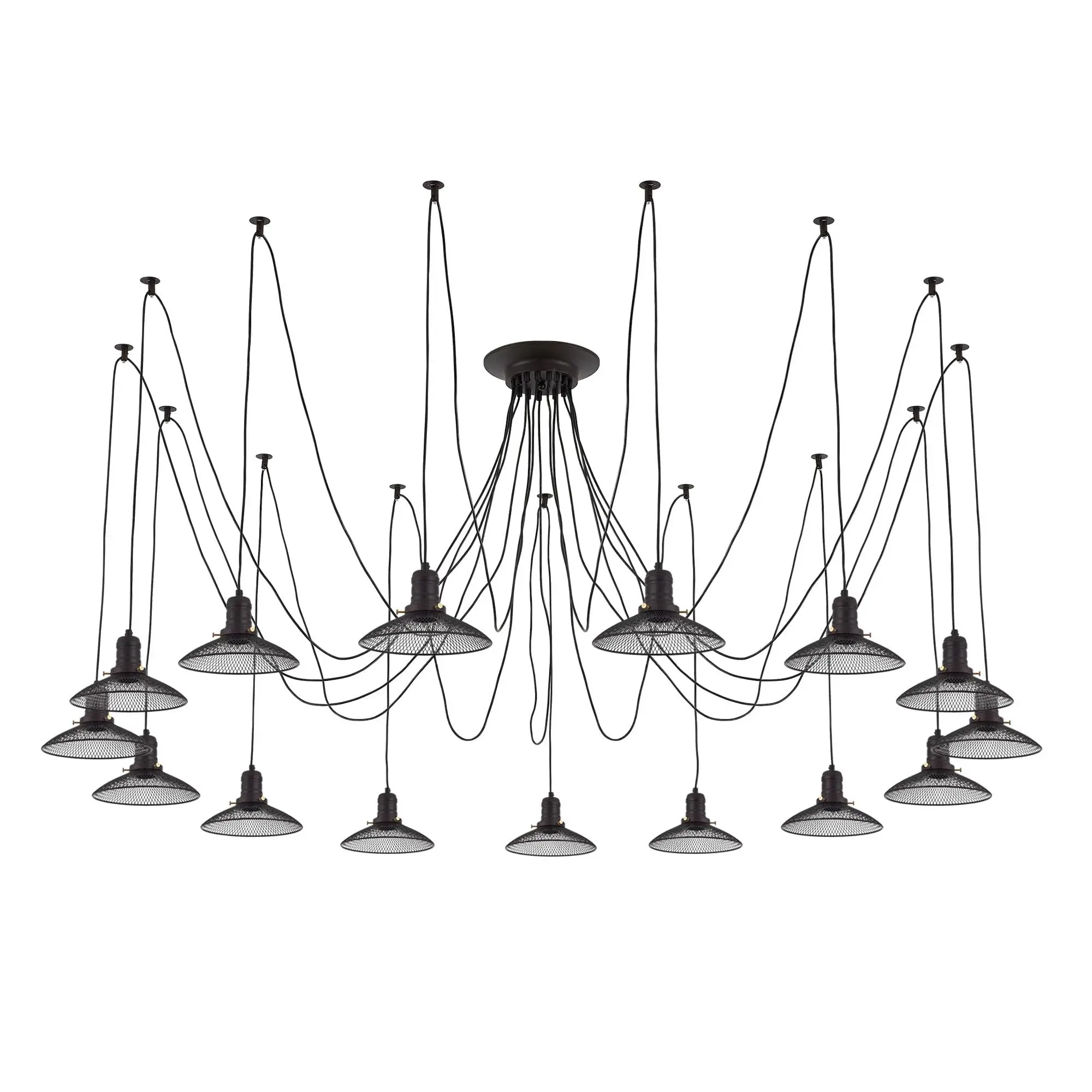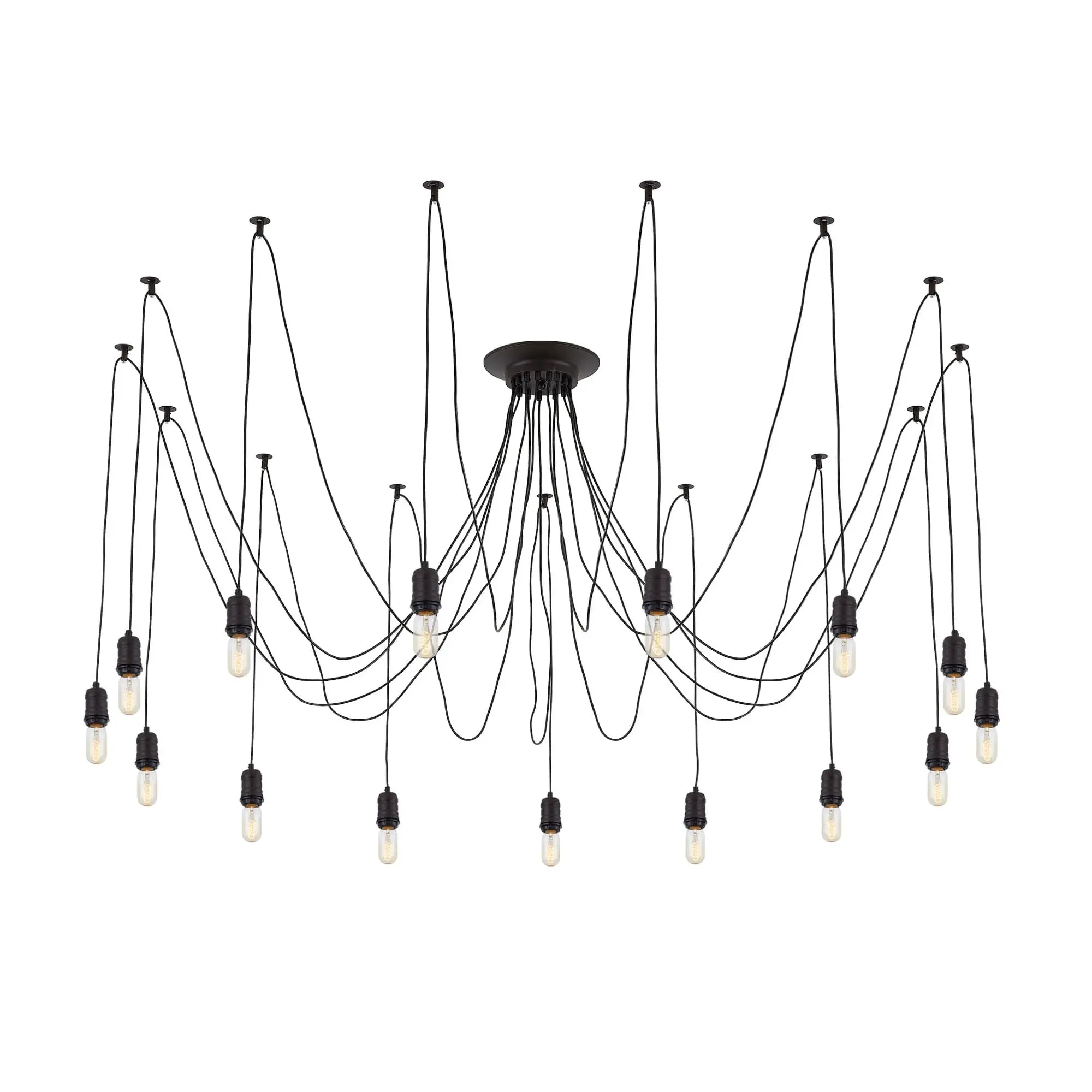 В изделии 15 ламп с цоколем Е27 максимальной мощностью для ламп накаливания 75Вт (в комплект не входят, приобретаются отдельно). Длинные провода (по 2,5м), в сочетании с дополнительным индивидуальным крепежом к потолку, позволяют при установке придать светильнику свою уникальную форму и легко адаптировать модель для высоких, стандартных и низких потолков. Тип крепления – планка.