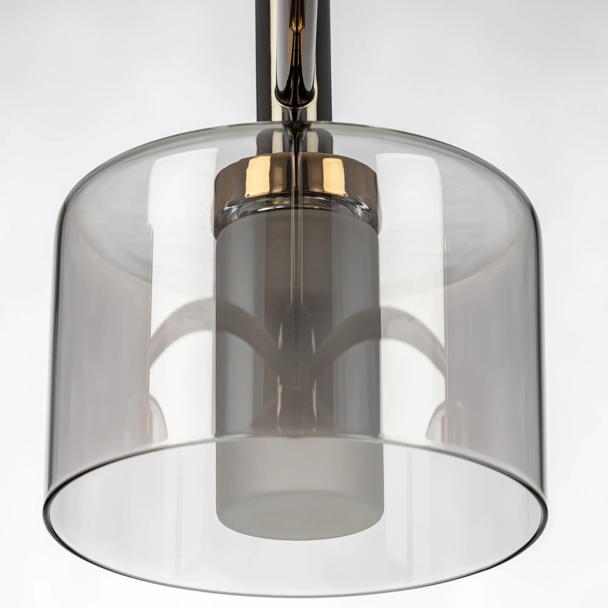 Элегантная люстра на штанге Citilux ELAN CL241171 гармонично сочетает чёткие современные формы и благородство классического дизайна. Металлический корпус цвета чёрный хром дополнен декоративными элементами глянцевого золота. Плафоны стеклянные двойные, цилиндрической формы. Внешний плафон из прозрачного стекла дымчатого оттенка, внутренний - белый полуматовый.