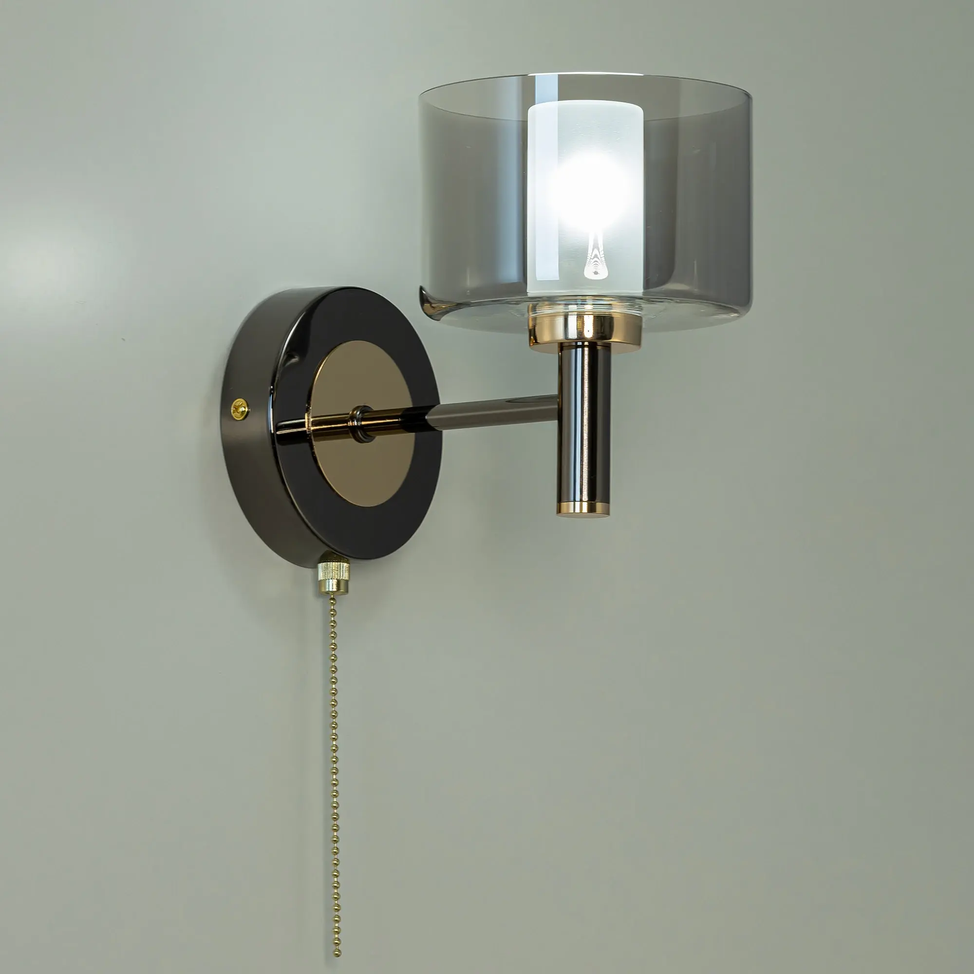 Элегантный настенный светильник Citilux ELAN CL241311 гармонично сочетает чёткие современные формы и благородство классического дизайна. Металлический корпус цвета чёрный хром дополнен декоративными элементами глянцевого золота. Плафон стеклянный двойной, цилиндрической формы. Внешний плафон из прозрачного стекла дымчатого оттенка, внутренний - белый полуматовый.