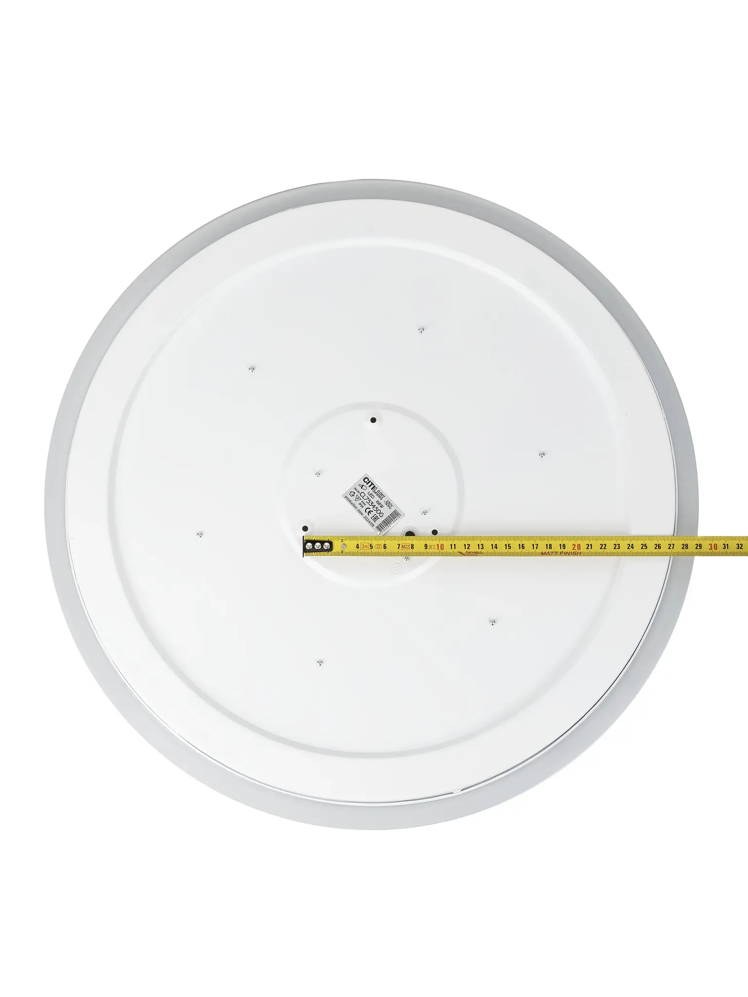 Накладной светильник подходит для всех видов потолков, в том числе натяжных. Тип крепления – через основание. Изделие комплектуется инфракрасным пультом ДУ. Для питания пульта применяются 2 батарейки формата ААА, напряжением 1,5V (не входят в комплект).