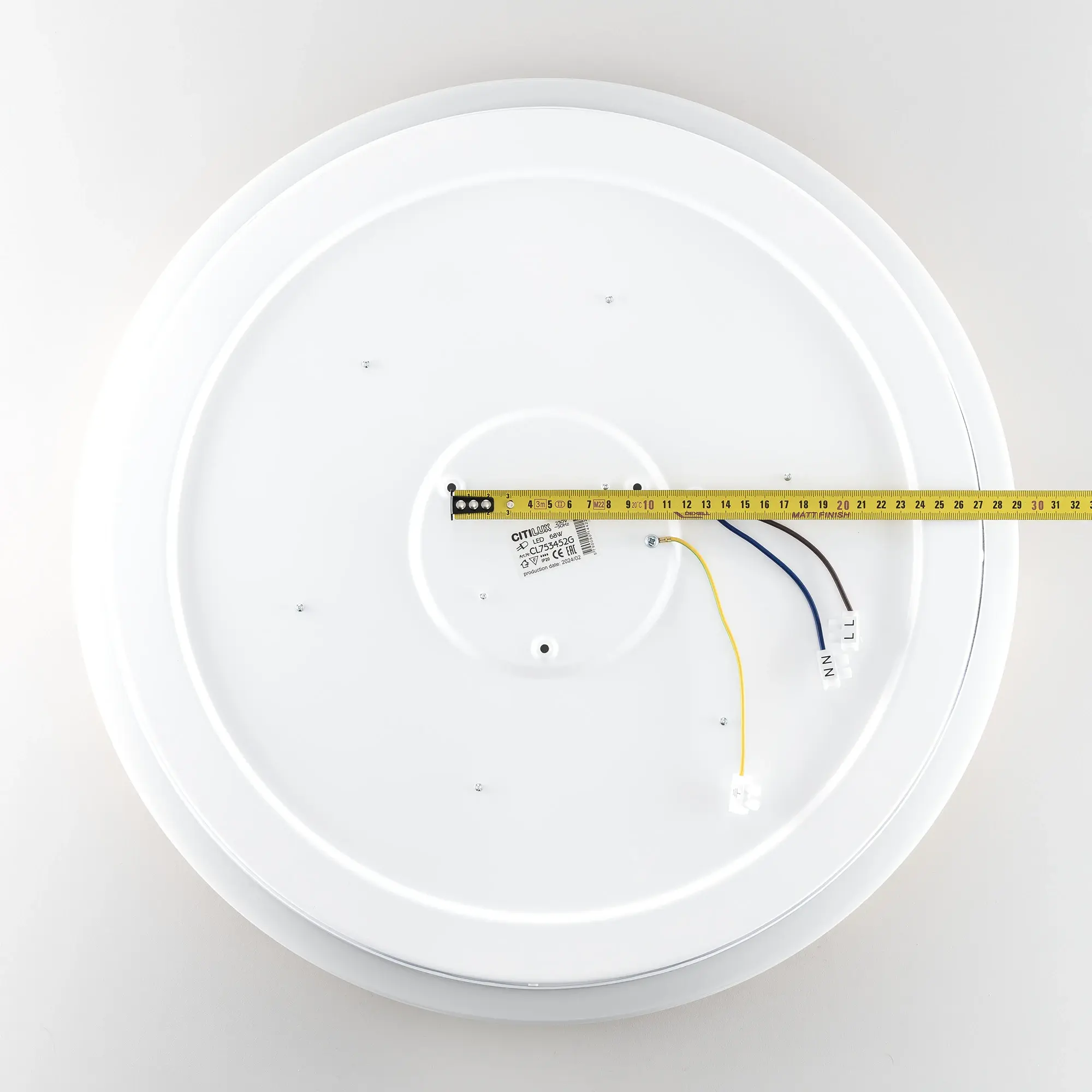 Мощность изделия 68Вт, световой поток 5800Лм. С помощью пульта дистанционного управления пользователь может плавно регулировать яркость 10% - 100%, менять цветовую температуру в диапазоне 3000K - 5500K, что позволяет настроить любые оттенки теплого, нейтрального или холодного света. Цветная многорежимная RGB подсветка может наполнить пространство яркими и насыщенными цветами. Функция таймера и 4 настраиваемых режима памяти позволяют управлять светильником максимально комфортно.