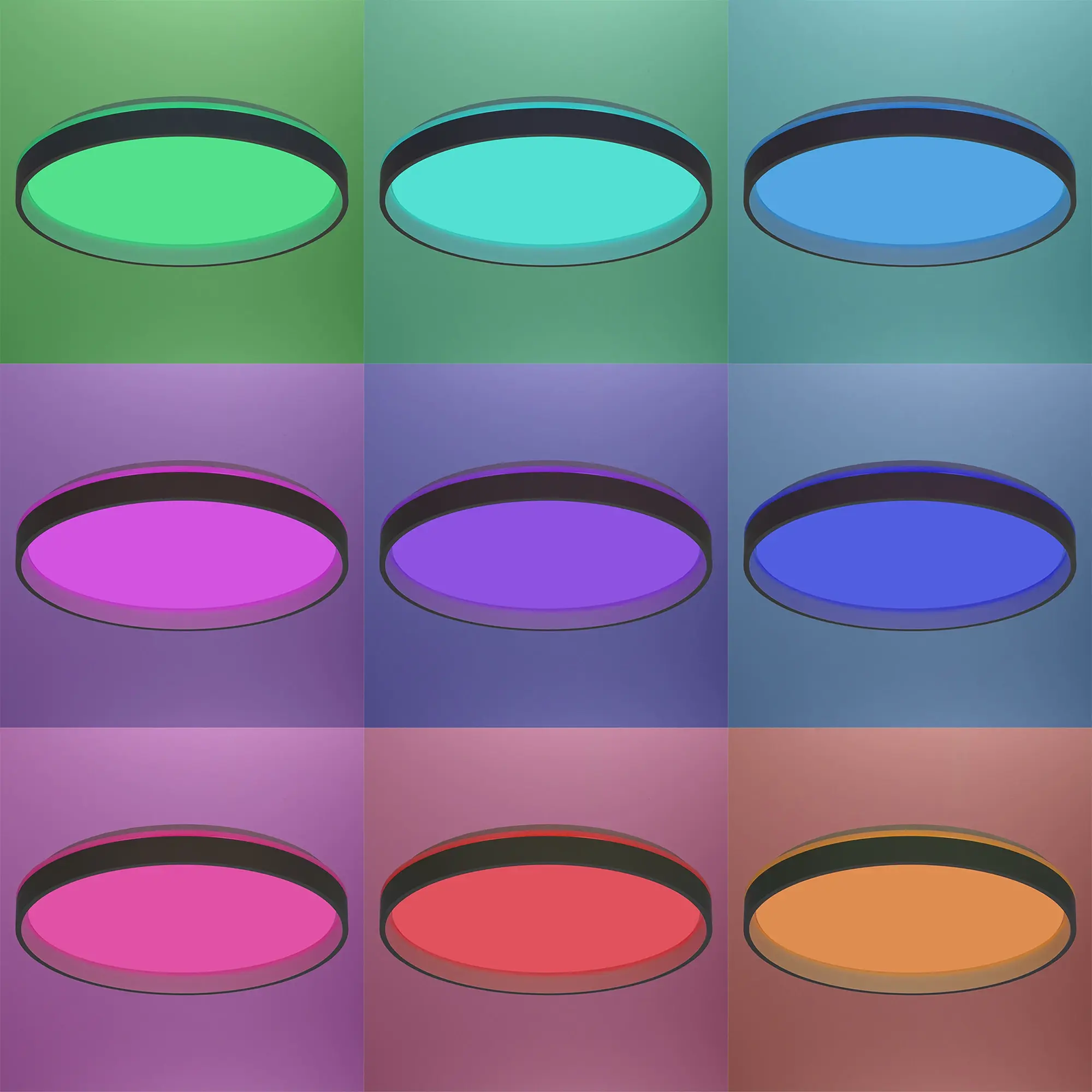 Мощность изделия 90Вт, световой поток 7700Лм. С помощью пульта дистанционного управления пользователь может плавно регулировать яркость 10% - 100%, менять цветовую температуру в диапазоне 3000K - 5500K, что позволяет настроить любые оттенки теплого, нейтрального или холодного света. Цветная многорежимная RGB подсветка может наполнить пространство яркими и насыщенными цветами. Функция таймера и 4 настраиваемых режима памяти позволяют управлять светильником максимально комфортно.