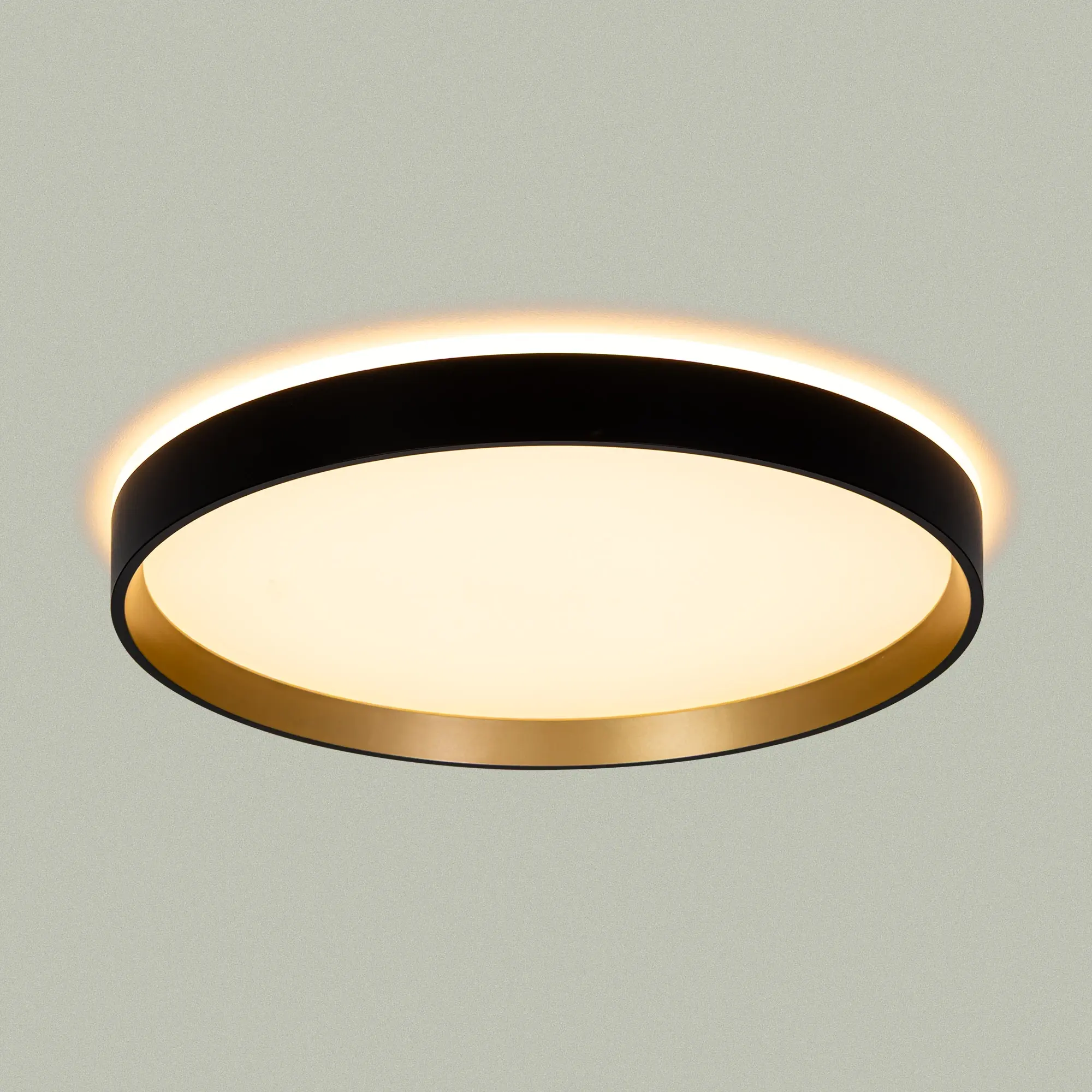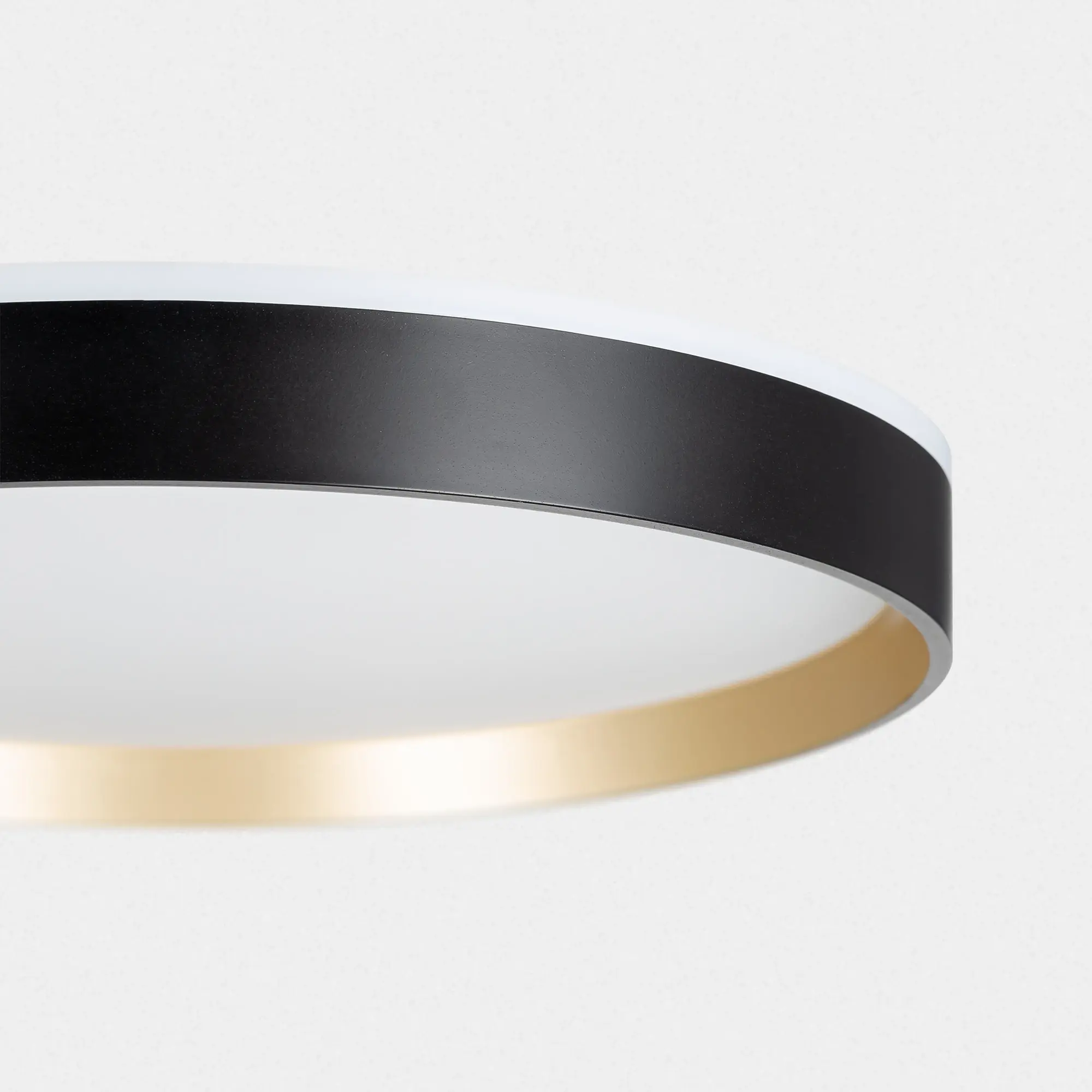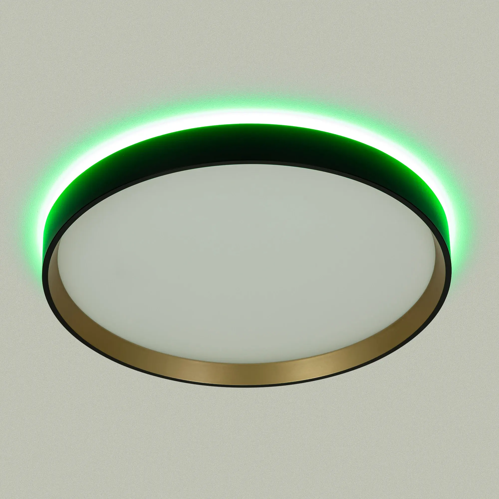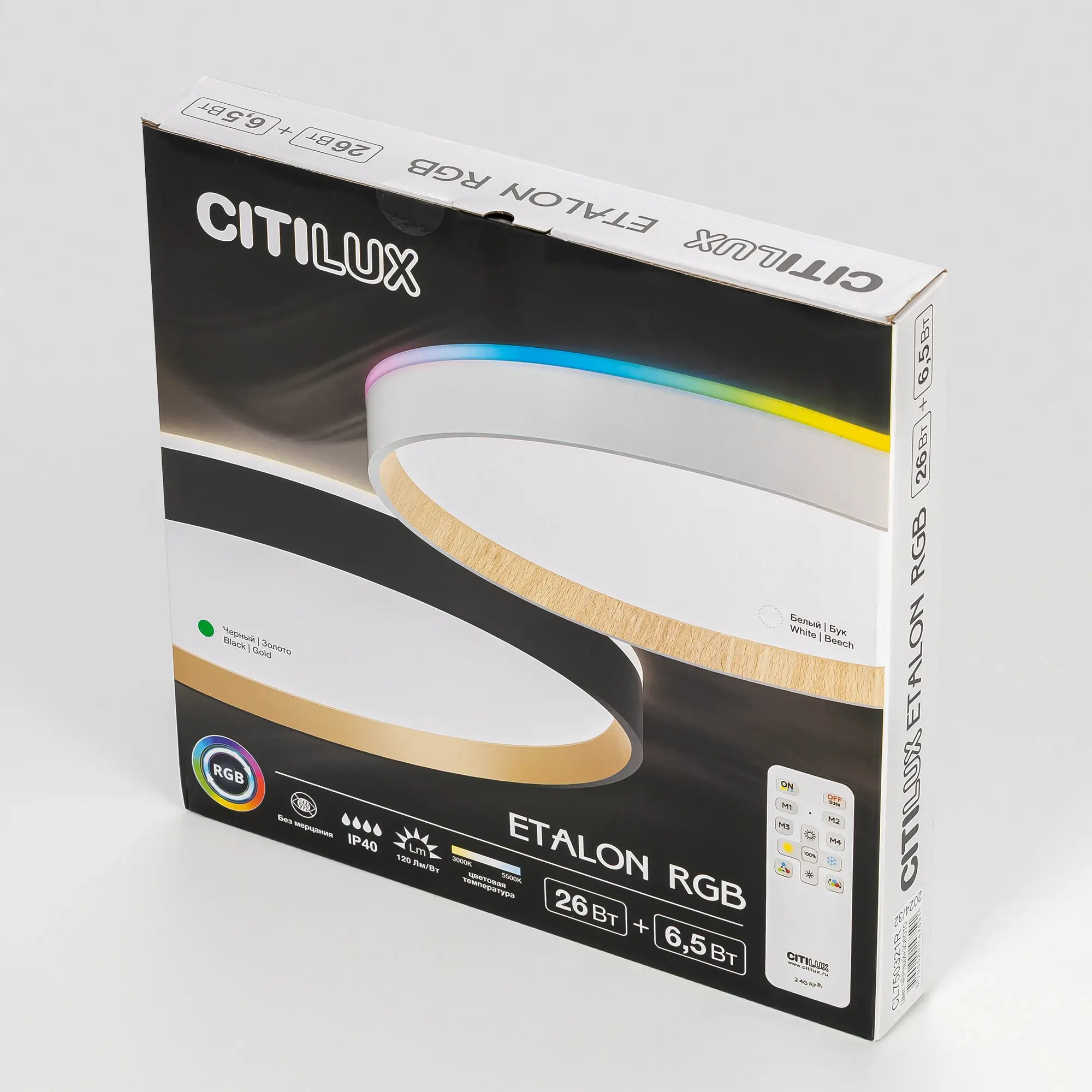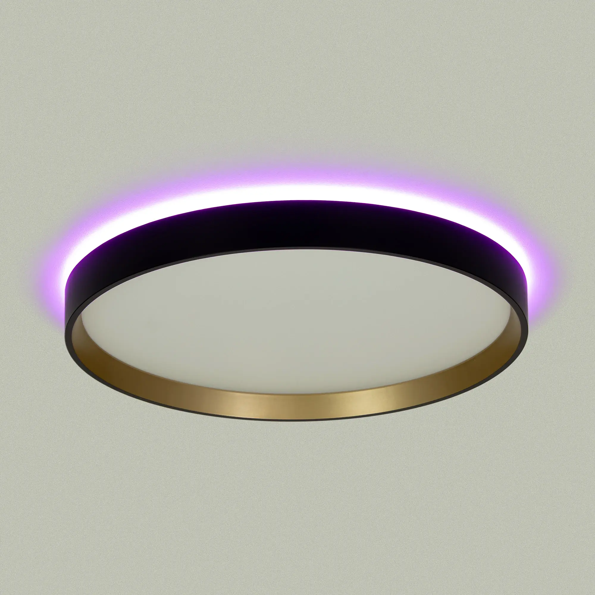 Настенно-потолочный светодиодный светильник Citilux ETALON CL750321R выполнен в современном скандинавском стиле. Корпус изготовлен из чёрного ударопрочного полимера с декоративным золотым внутренним ободом. Рассеиватель матовый из оптического полимера. Модель оснащена двумя светодиодными модулями – основного света и красочной потолочной RGB подсветки.