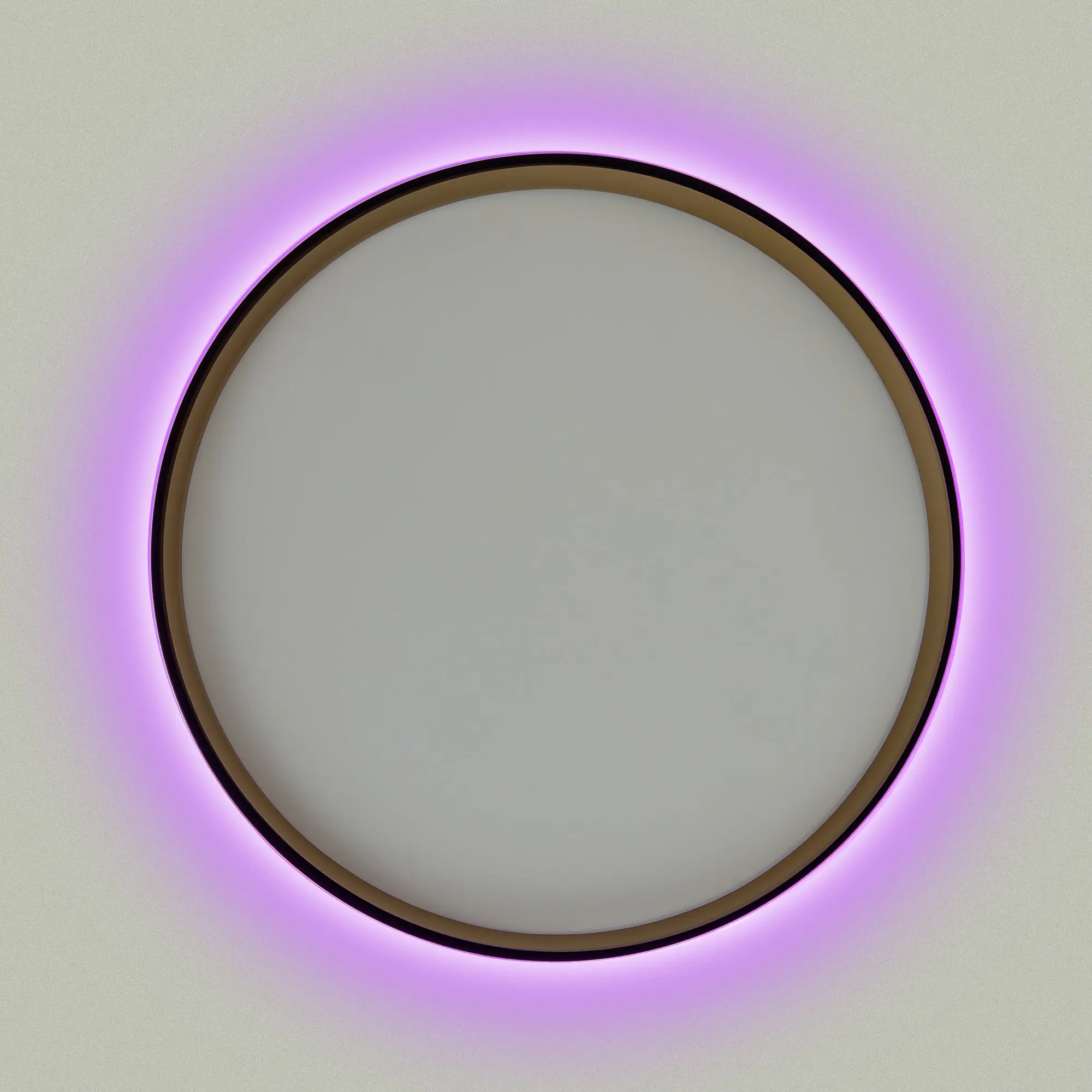 Изделие обладает высокой энергоэффективностью основного света – 120Лм/Вт, осветит до 13м². Мощность: основной свет - 26Вт, потолочная подсветка – 6,5Вт. Диаметр 32см, высота 3,9см. Тип крепления – удобная монтажная платформа. Исключительно лёгкий монтаж!