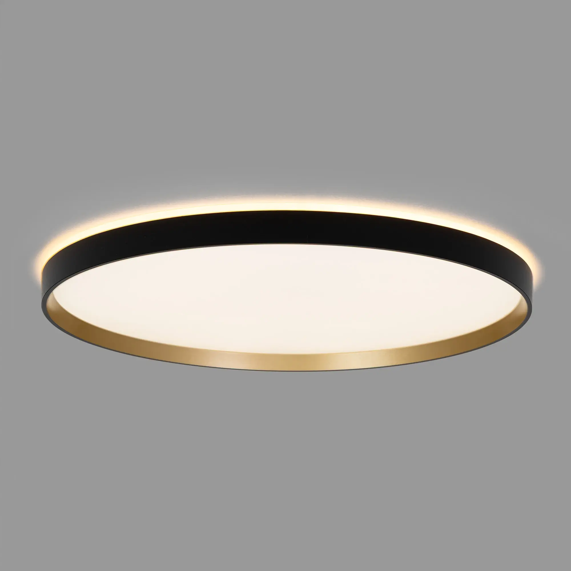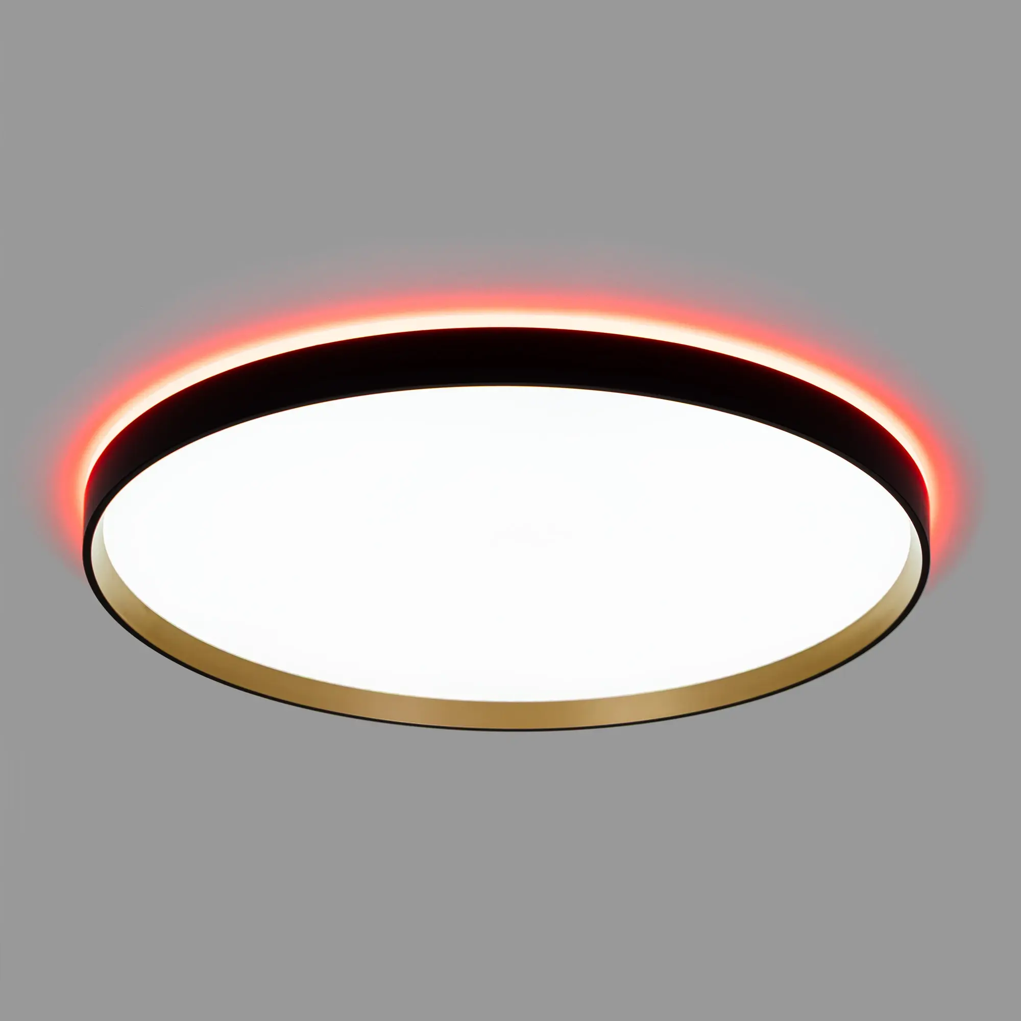 Настенно-потолочный светодиодный светильник Citilux ETALON CL750501R выполнен в современном стиле. Корпус изготовлен из чёрного ударопрочного полимера с декоративным золотым внутренним ободом. Рассеиватель матовый из оптического полимера. Модель оснащена двумя светодиодными модулями – основного света и красочной потолочной RGB подсветки.