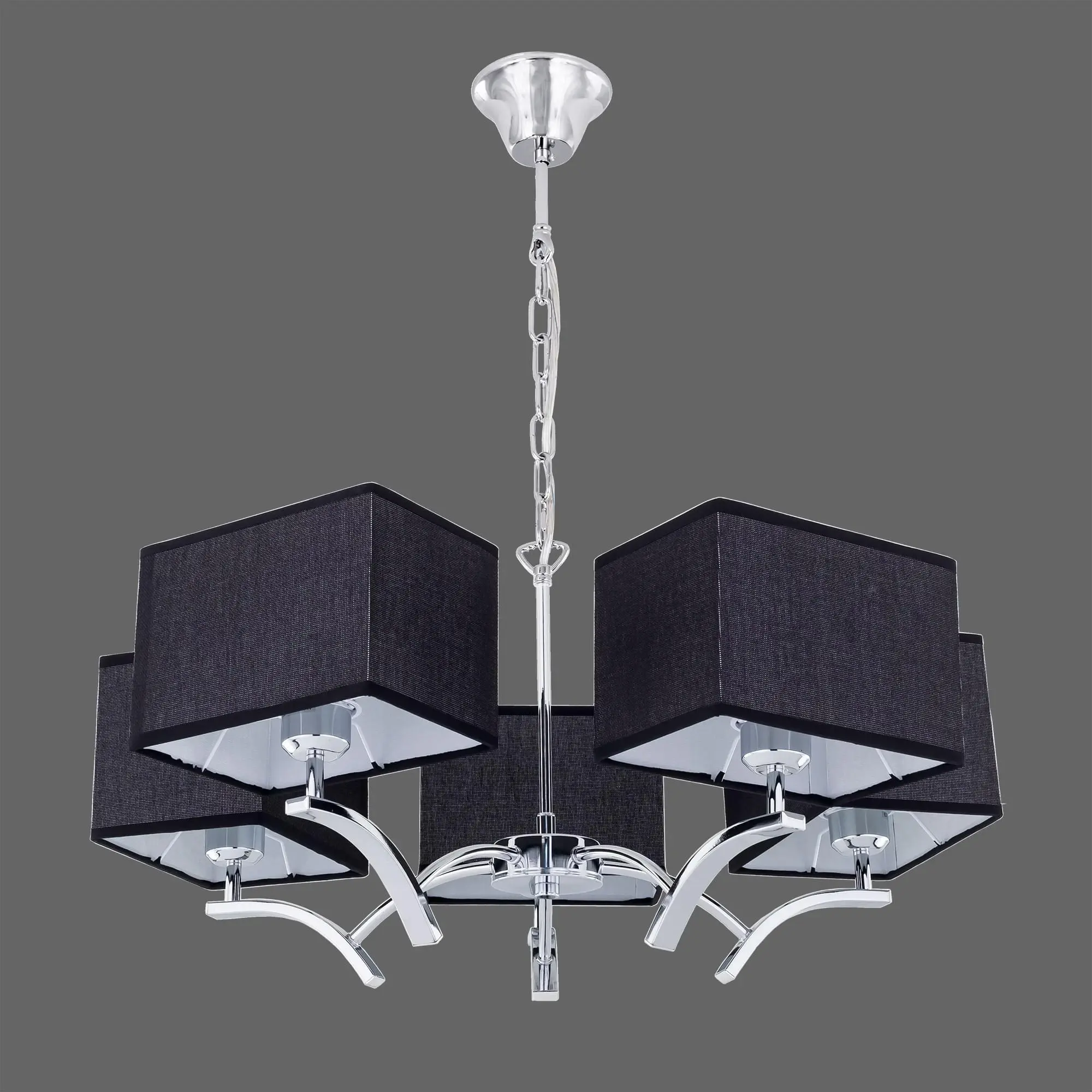 Подвесная люстра Citilux Эвора Квадро CL460252 выполнена в современном стиле. Корпус светильника металлический с элегантно изогнутыми рожками, цвет глянцевый хром. Абажуры квадратные из текстурной ткани чёрного цвета на подложке из оптического полимера.