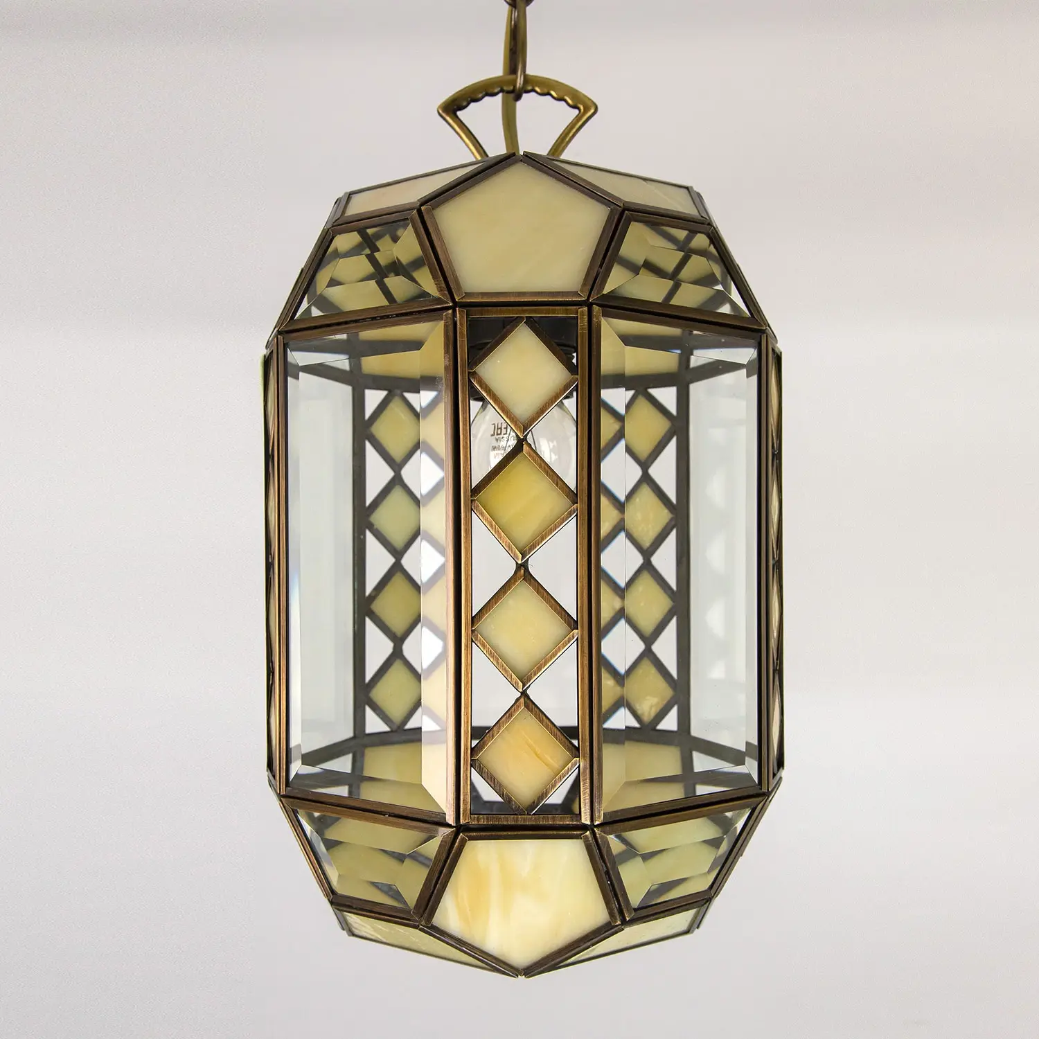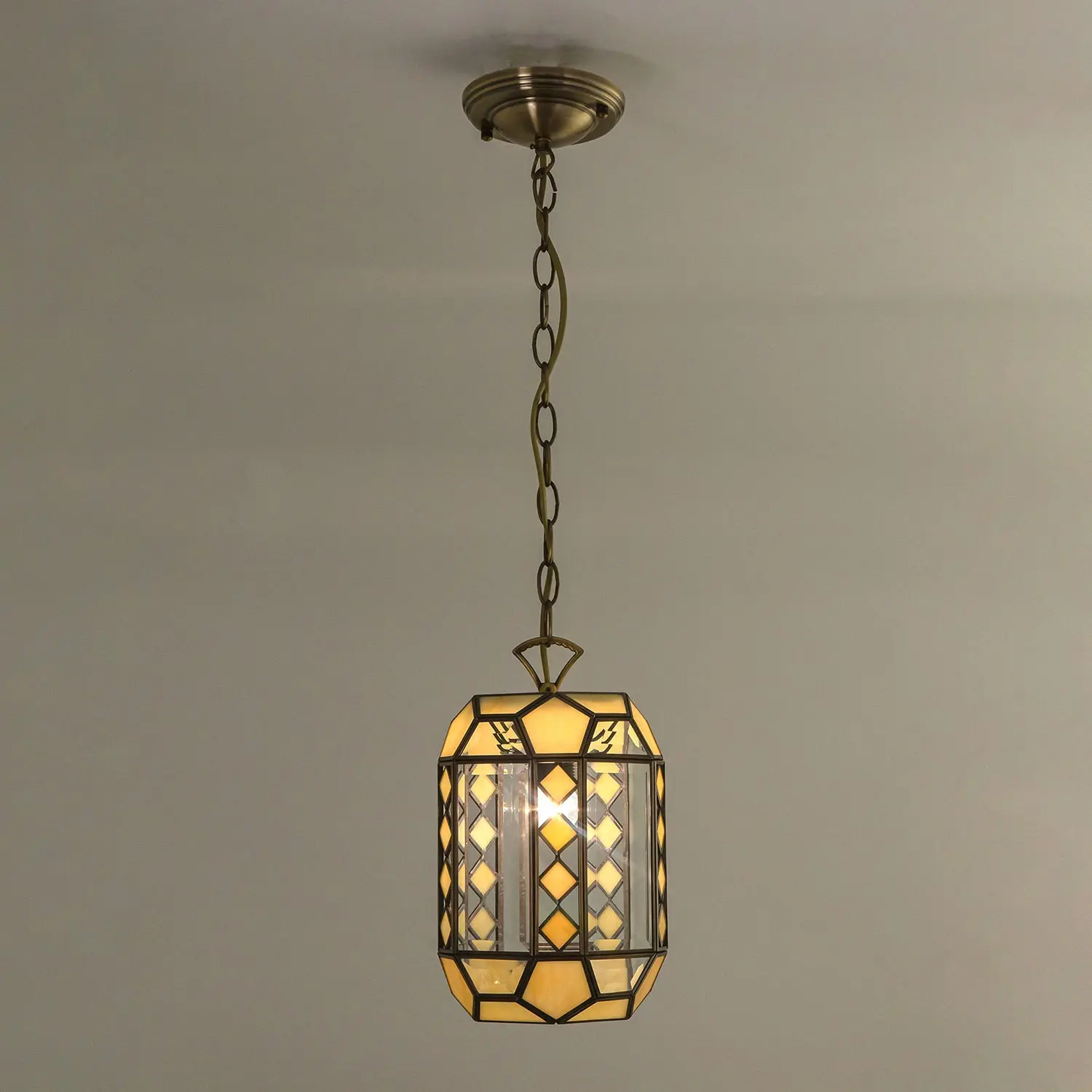 Одиночный подвес Citilux Faset CL441111 в стиле ретро. Каркас светильника — из металлического сплава с покрытием под старую бронзу. Плафон сложной формы изготовлен вручную из витражного стекла разных оттенков.