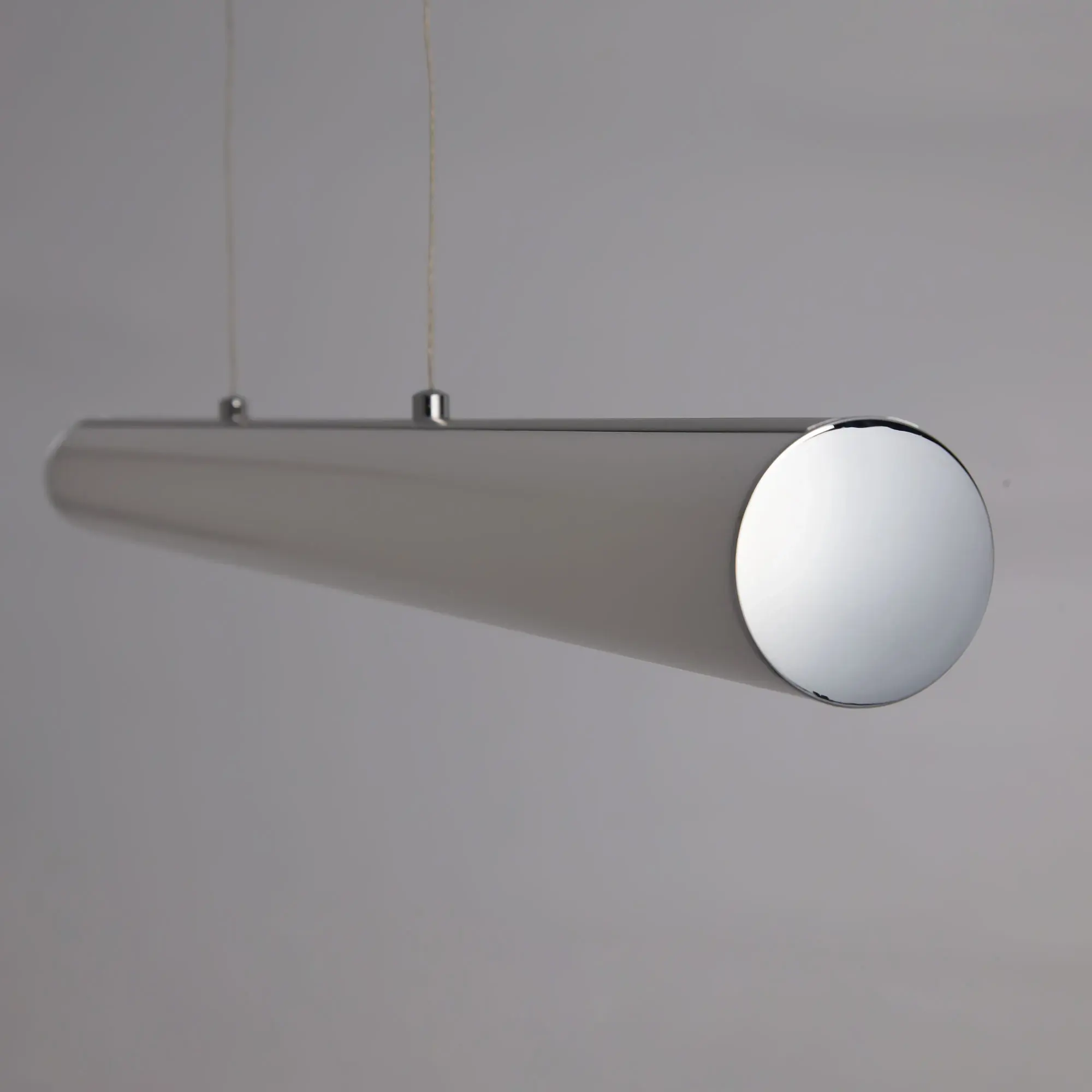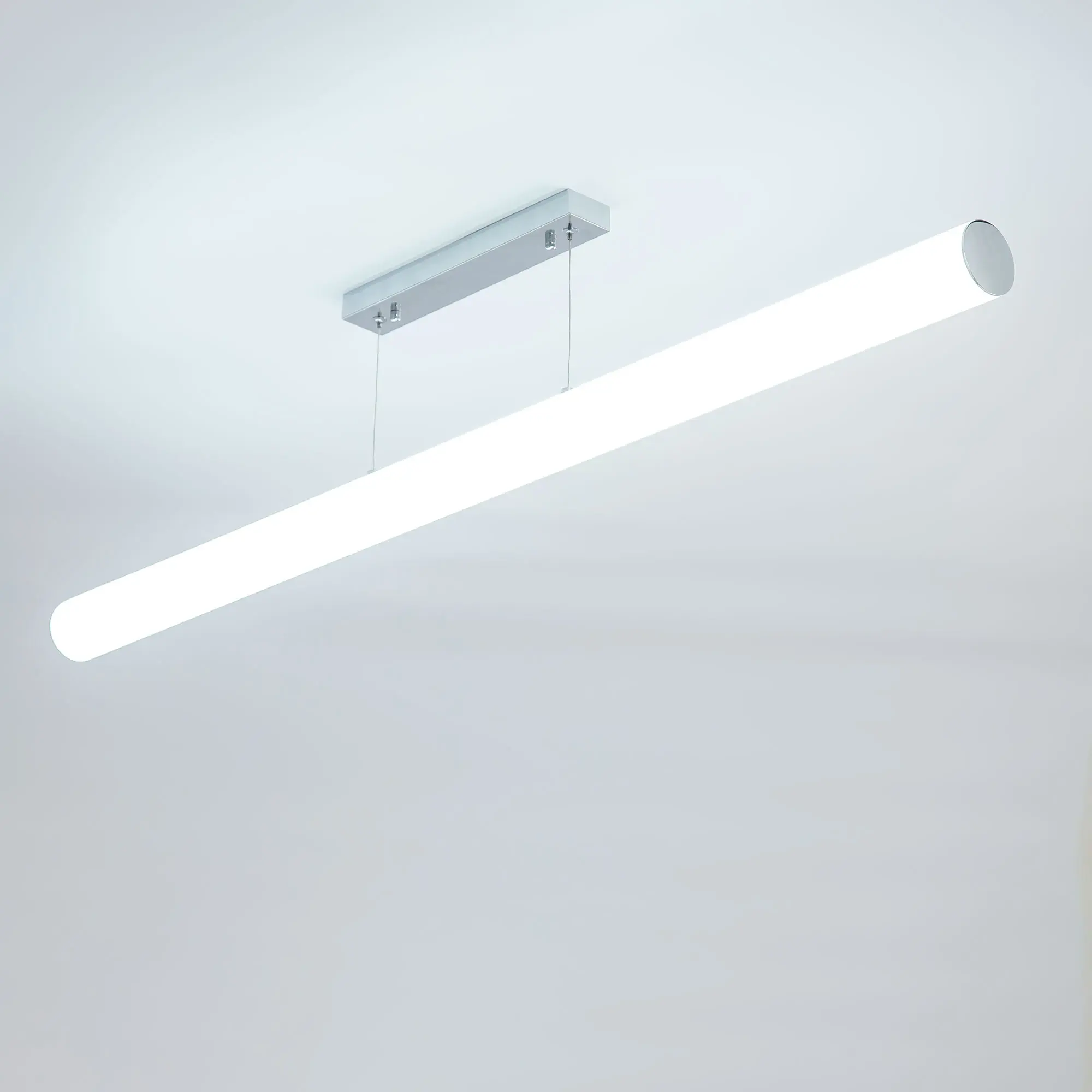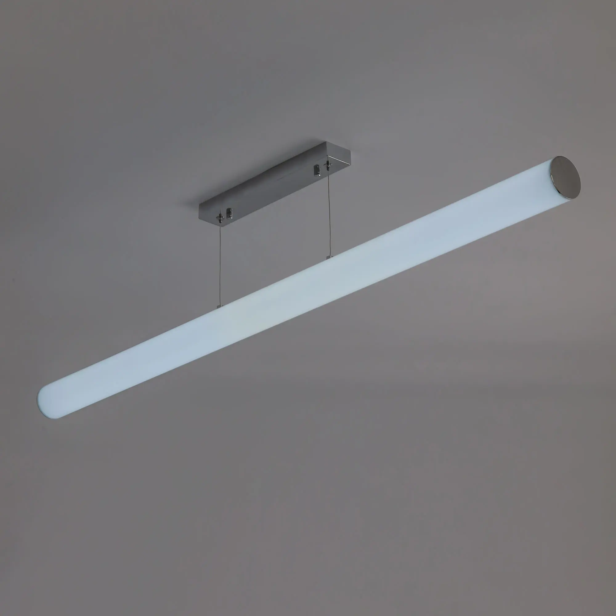 Современный светодиодный светильник Citilux Фауст CL721P36N со встроенным ступенчатым диммером. Плафон-рассеиватель цилиндрической формы, изготовлен из оптического полимера, диаметр 6см. Основание металлическое, прямоугольной формы, цвет хром. Длина светильника 115см, высота регулируется от 40см до 1,2м, мощность 36Вт, световой поток 3240Лм, цветовая температура 4000К. Встроенный ступенчатый диммер управляется обычным настенным выключателем. Три ступени яркости, первое включение всегда 100%, если интервал между переключениями меньше двух секунд, происходит регулировка яркости - 40 и 15%. Подходит для всех типов потолков, тип крепления – планка.,