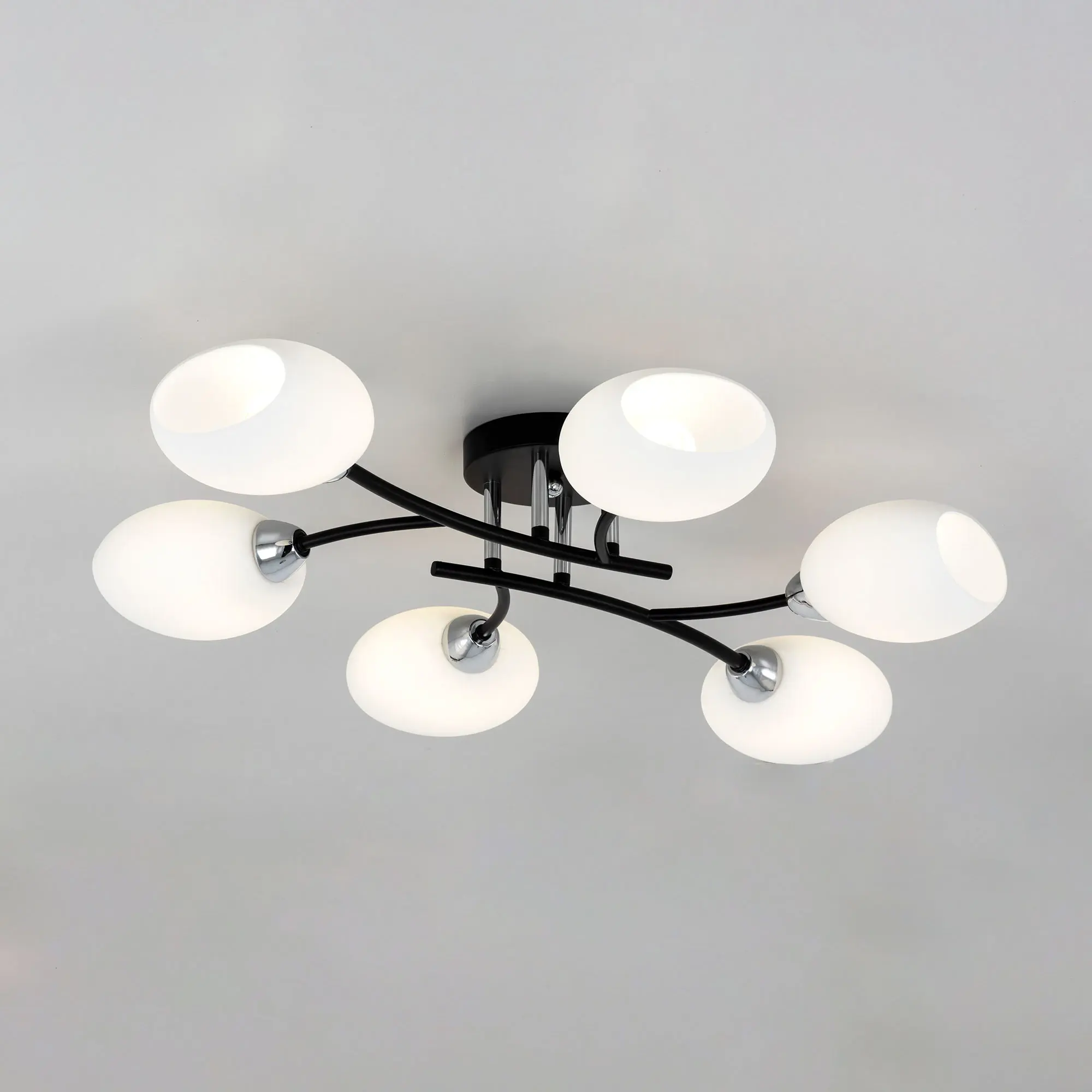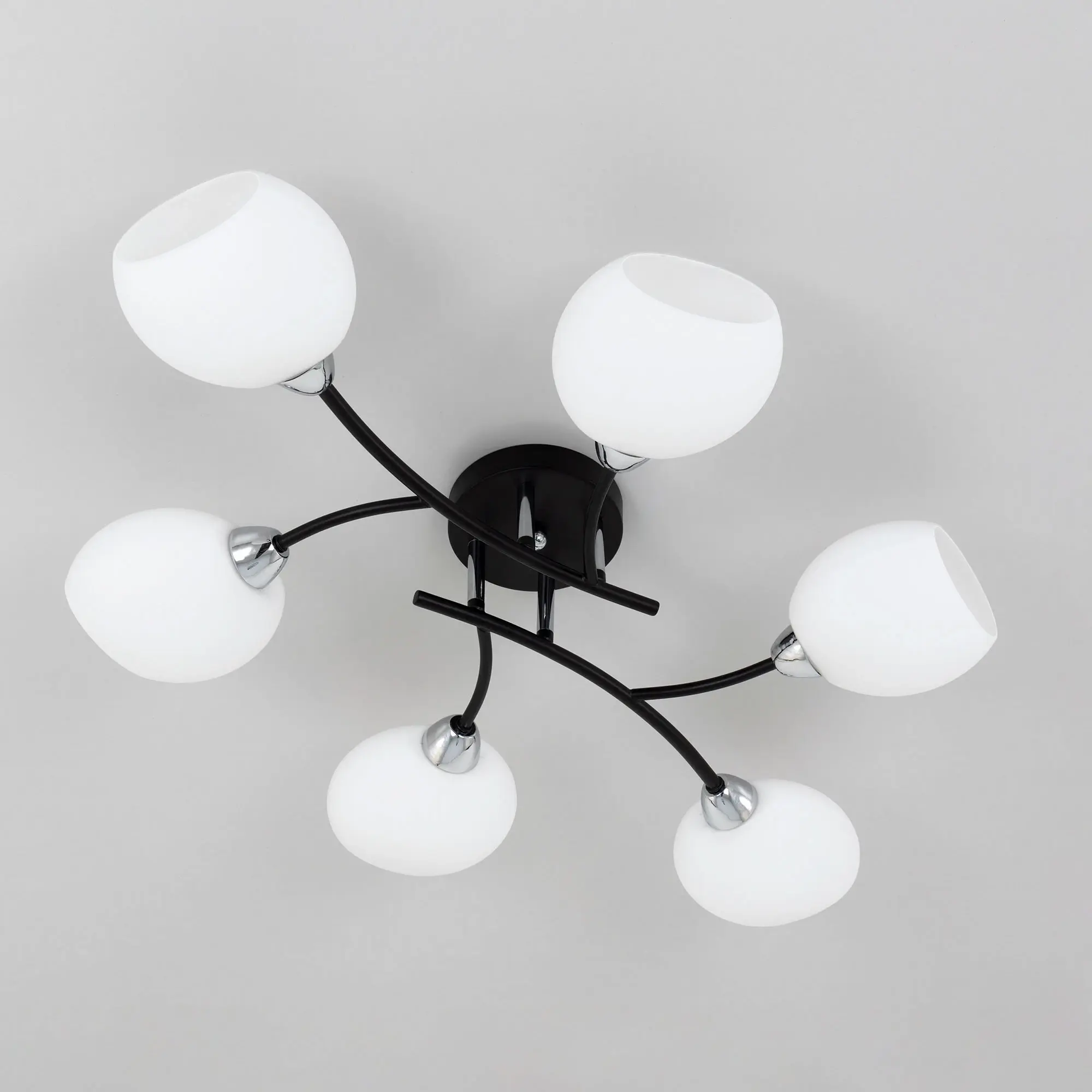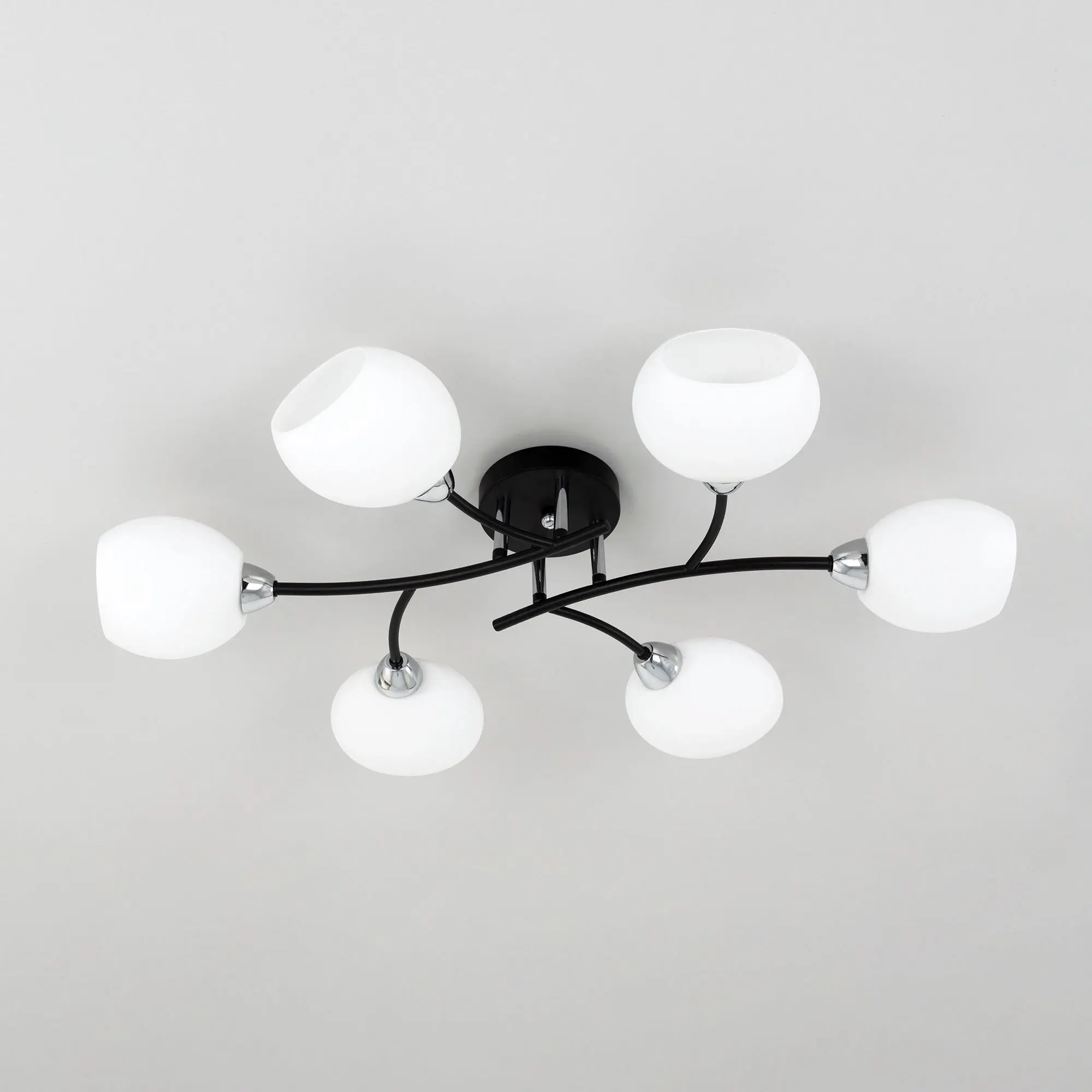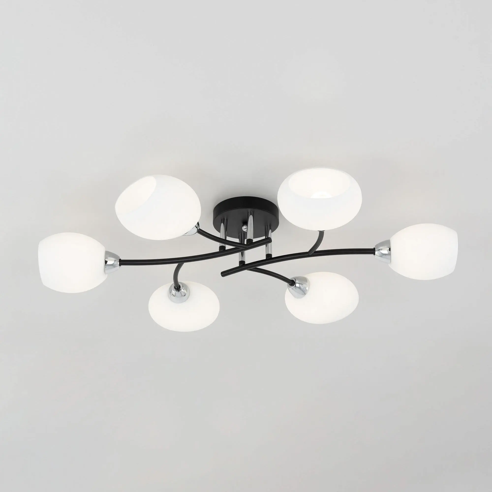 Потолочная люстра Citilux Флорида CL148165 выполнена в современном стиле. Корпус светильника металлический, чёрного цвета, с декоративными хромированными элементами. Плафоны изготовлены из матового стекла. В изделии используются лампы с цоколем Е14 максимальной мощностью для ламп накаливания 60Вт (в комплект не входят, приобретаются отдельно). Светодиодные лампы можно устанавливать более яркие. Модель поставляется в компактной упаковке, перед установкой требуется самостоятельная сборка, крепёж и инструкция в комплекте. Рассчитана на работу как с одноклавишным, так и с двухклавишным выключателем. Подходит для всех типов потолков, в том числе натяжных, тип крепления – планка. Люстра шестирожковая, размер 80х55см, высота 14,5см, осветит около 16м².
