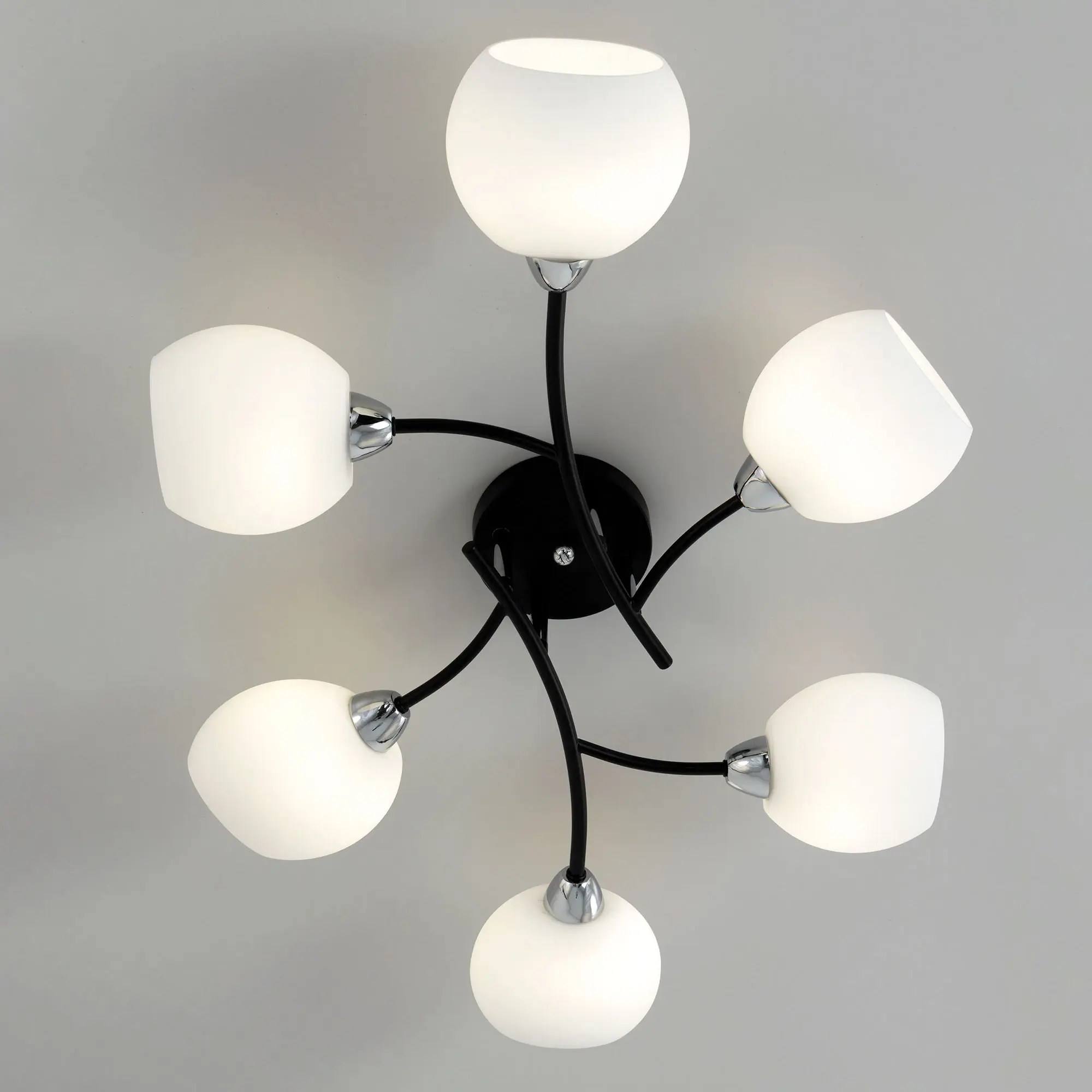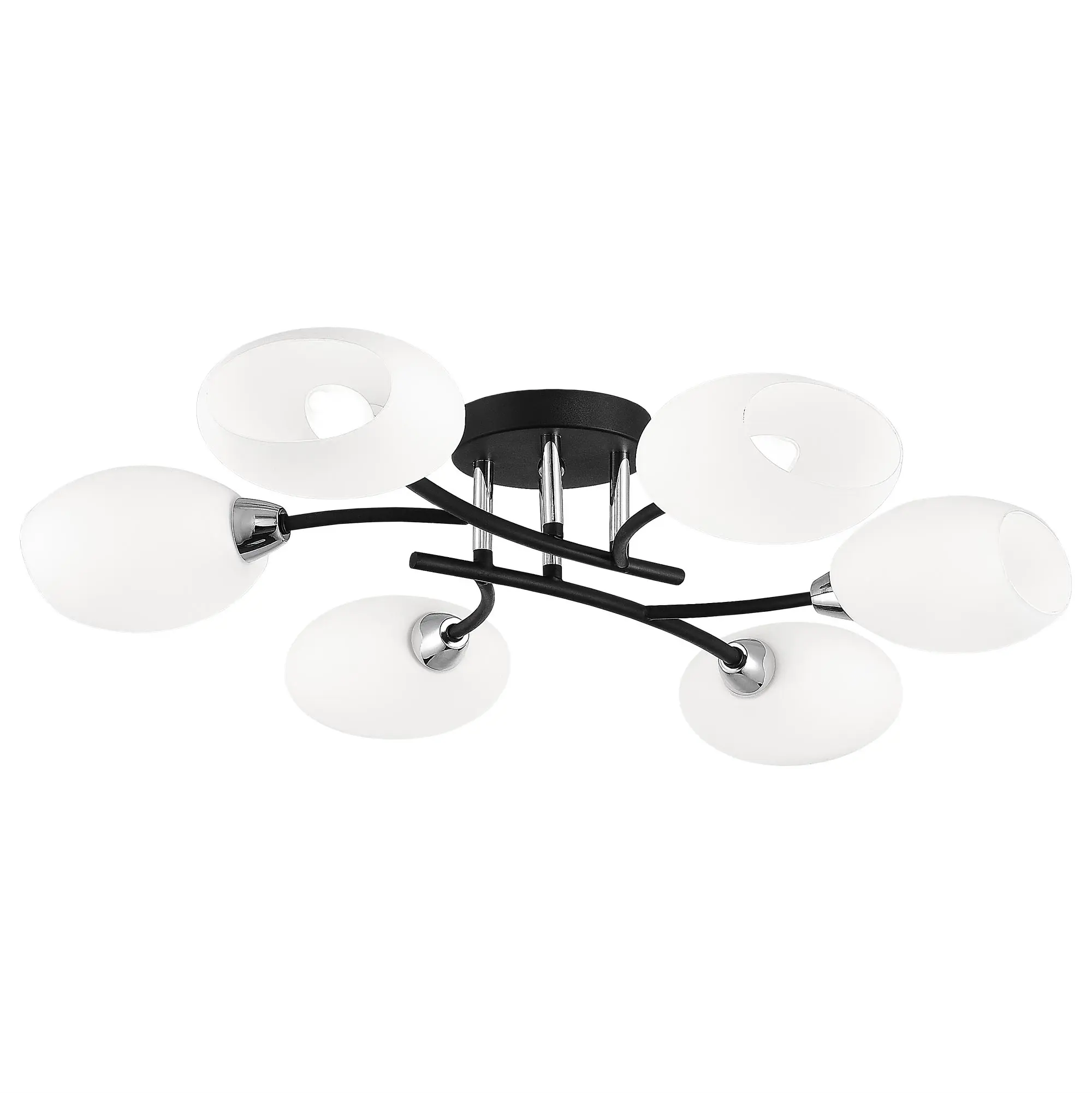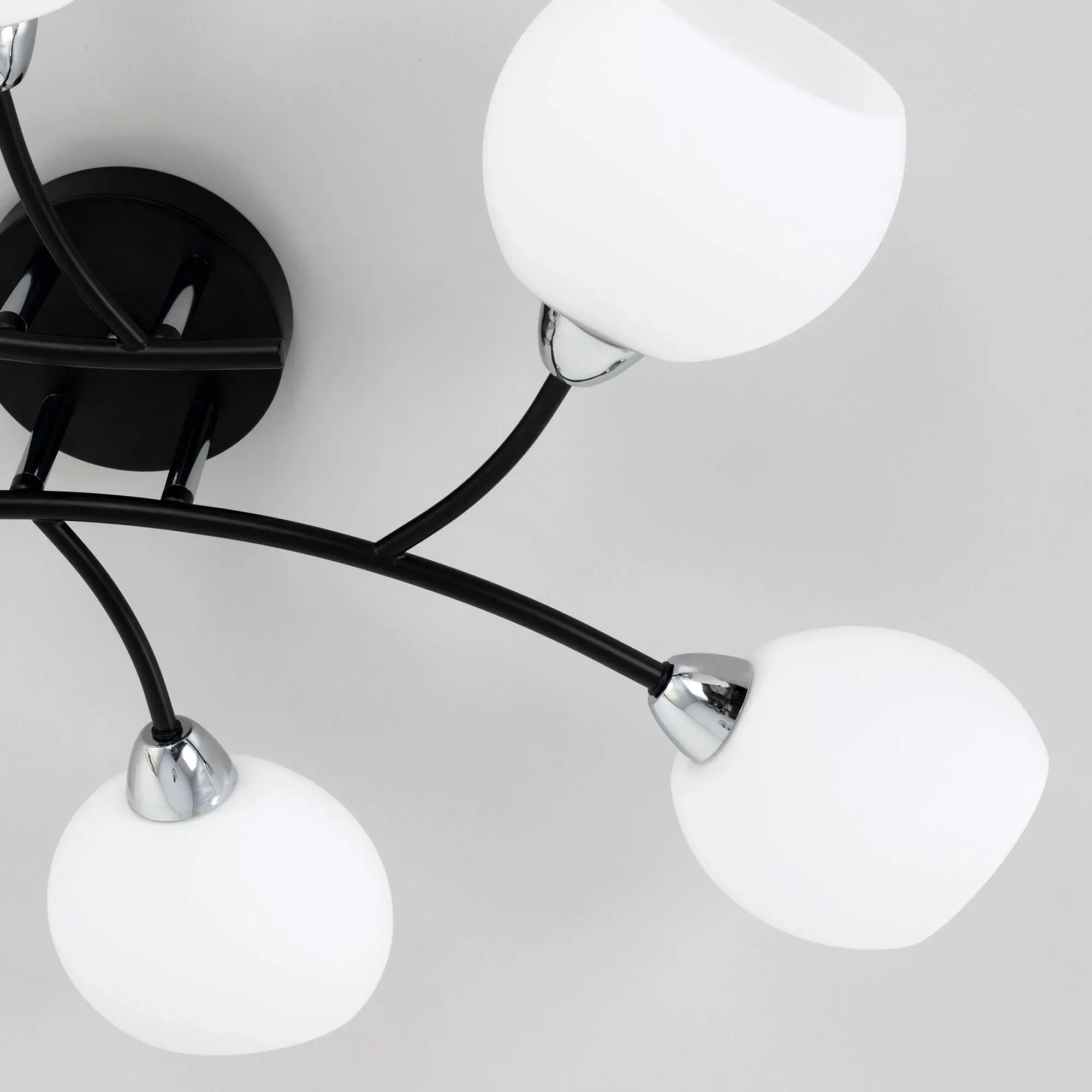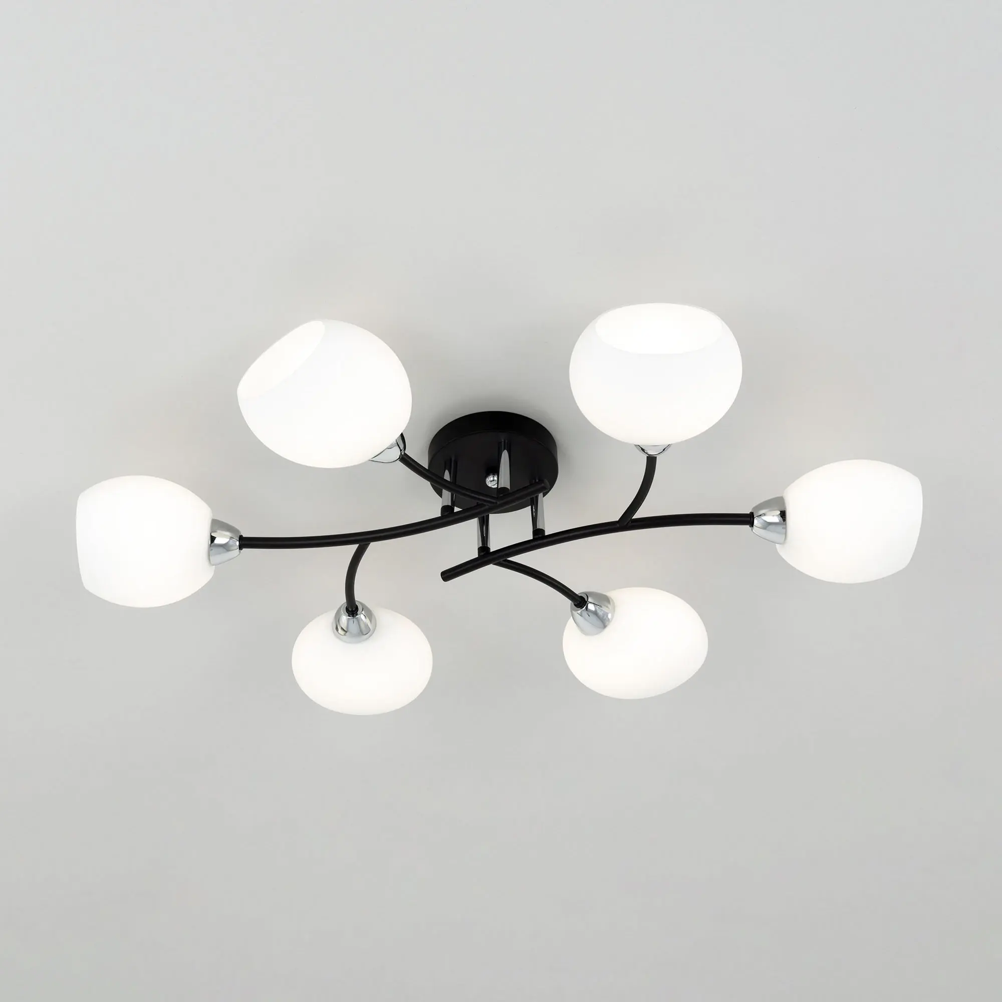 Потолочная люстра Citilux Флорида CL148165 выполнена в современном стиле. Корпус светильника металлический, чёрного цвета, с декоративными хромированными элементами. Плафоны изготовлены из матового стекла. В изделии используются лампы с цоколем Е14 максимальной мощностью для ламп накаливания 60Вт (в комплект не входят, приобретаются отдельно). Светодиодные лампы можно устанавливать более яркие. Модель поставляется в компактной упаковке, перед установкой требуется самостоятельная сборка, крепёж и инструкция в комплекте. Рассчитана на работу как с одноклавишным, так и с двухклавишным выключателем. Подходит для всех типов потолков, в том числе натяжных, тип крепления – планка. Люстра шестирожковая, размер 80х55см, высота 14,5см, осветит около 16м².