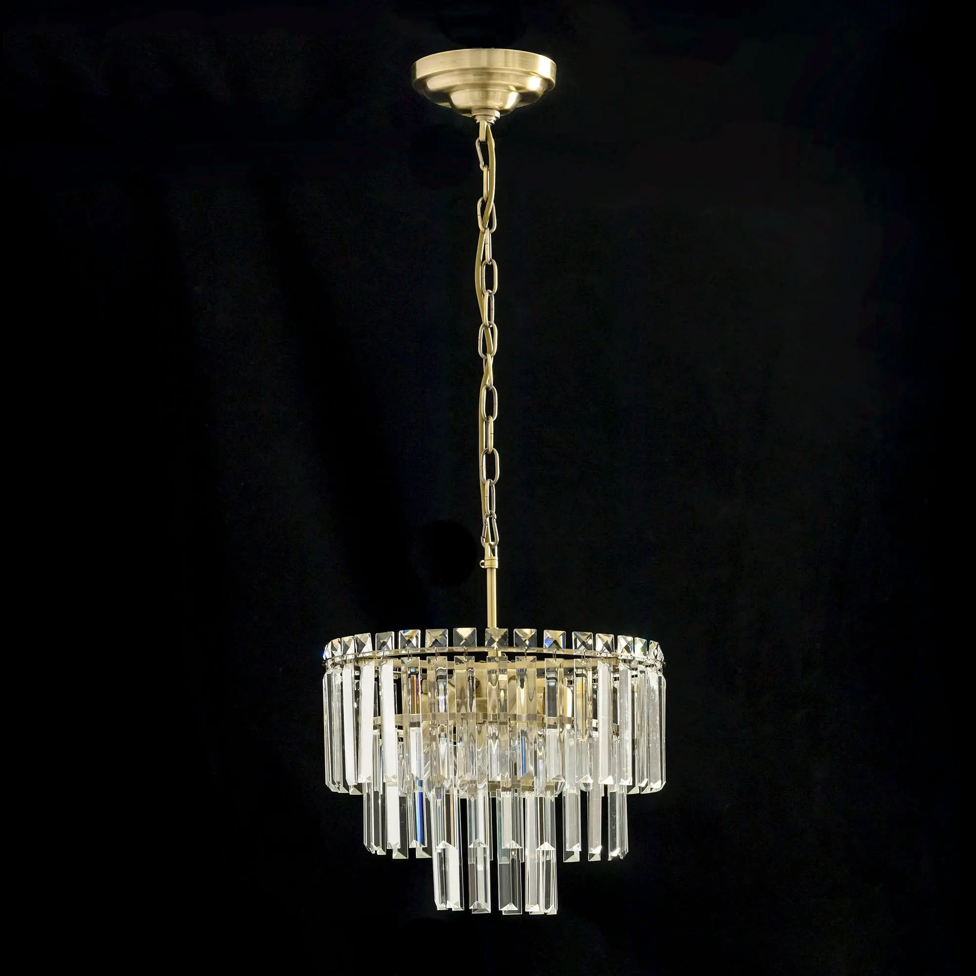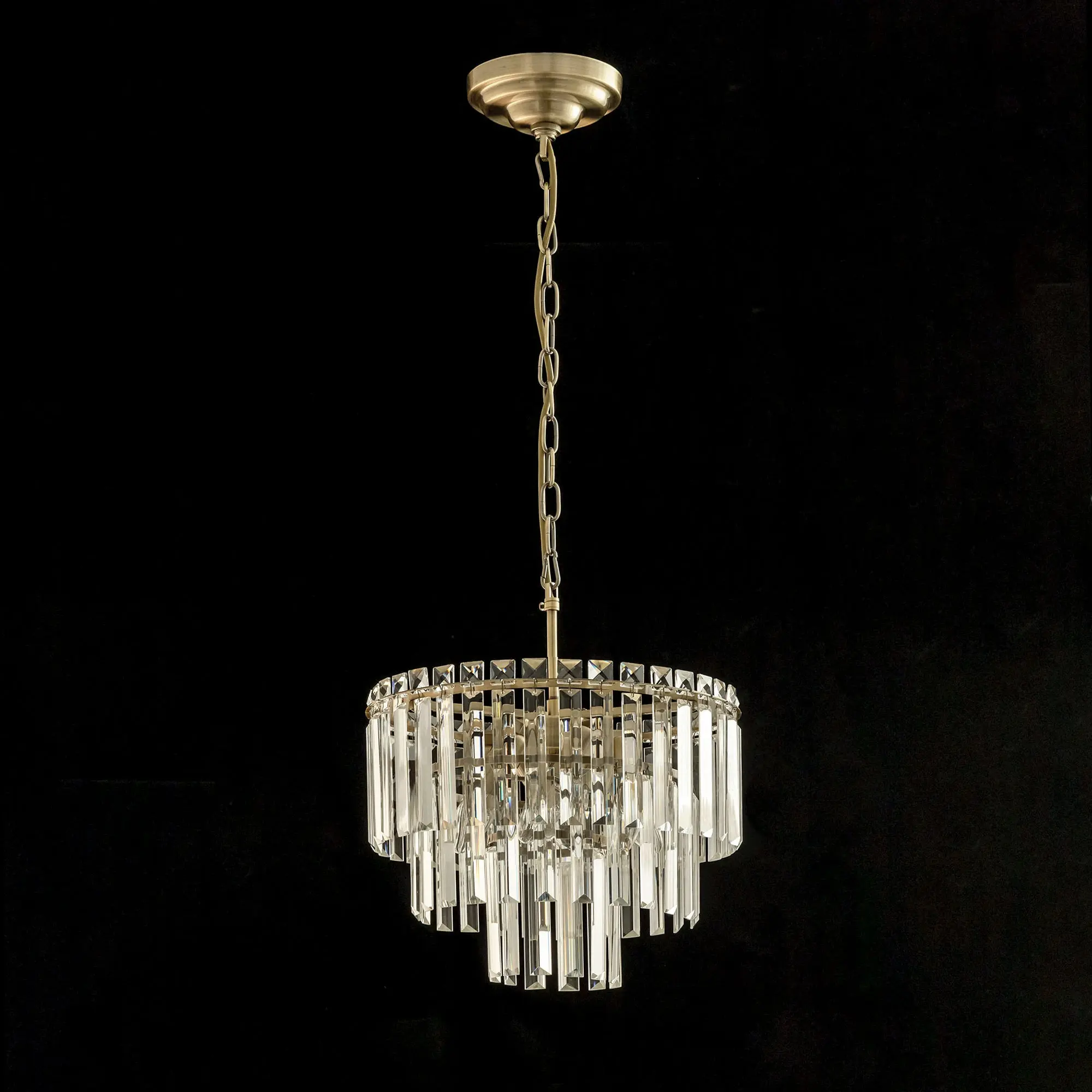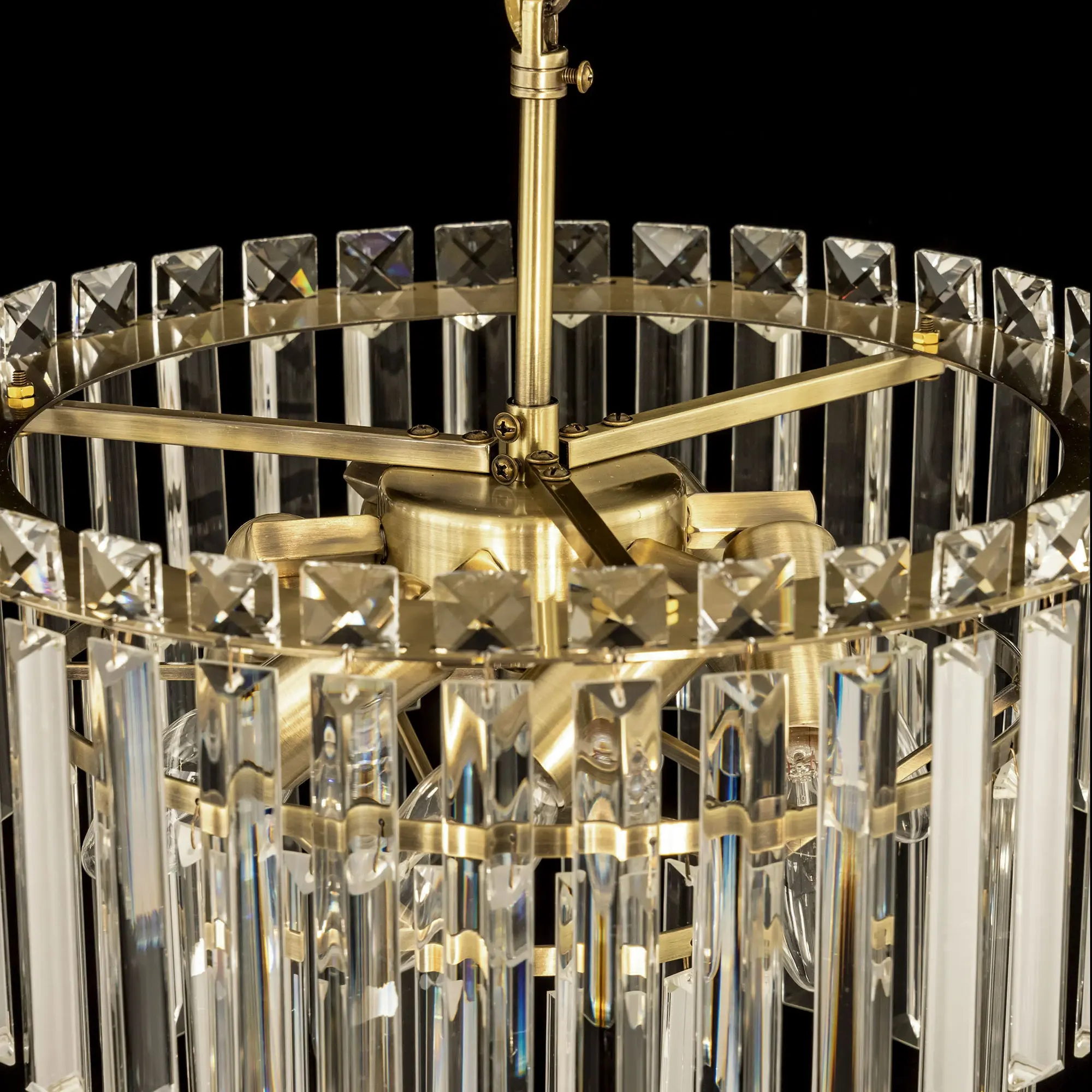 Хрустальная люстра Citilux Фонда CL303163 на цепи. Корпус светильника металлический, цвет бронза. Хрустальные элементы, прозрачные, с модной огранкой «призма». В светильнике используются 6 ламп с цоколем Е14, максимальной мощностью для ламп накаливания 60Вт, светодиодные лампы можно использовать более яркие. Изделие подходит для помещений как с высокими, так и с низкими потолками, длина цепи регулируется при установке. Светильник подходит для всех типов потолков, в том числе натяжных, тип крепления – планка. Подвесная люстра Citilux Фонда CL303163 отлично подойдет для освещения интерьеров, оформленных в современном и классическом стиле,