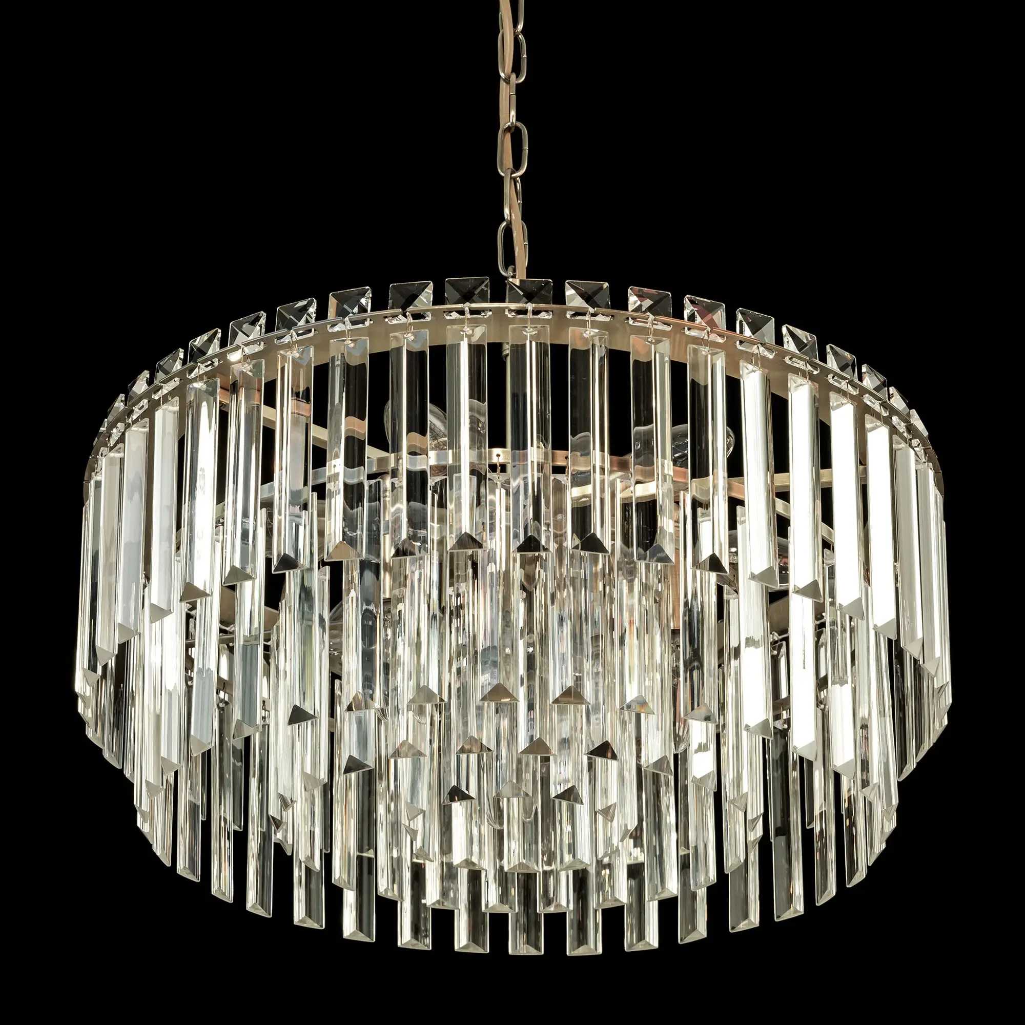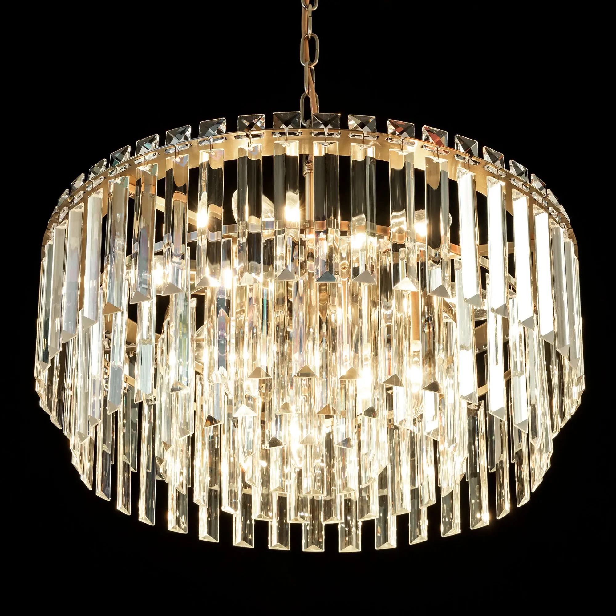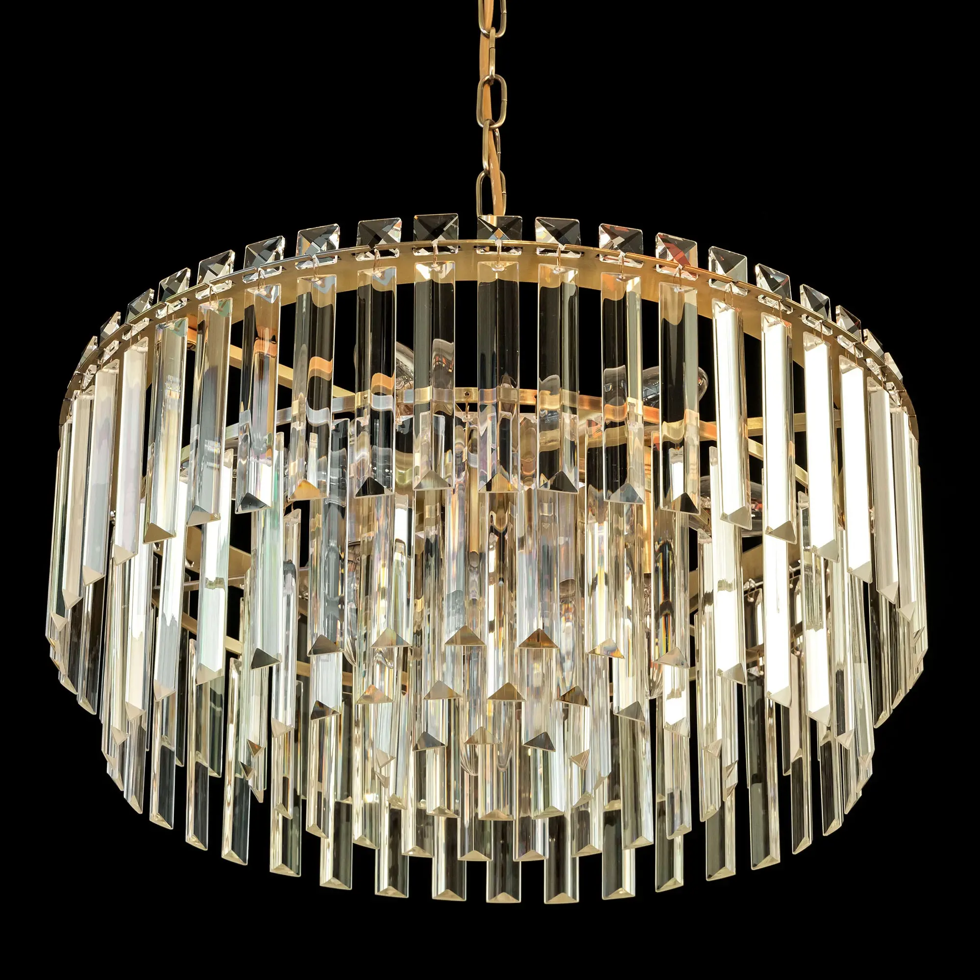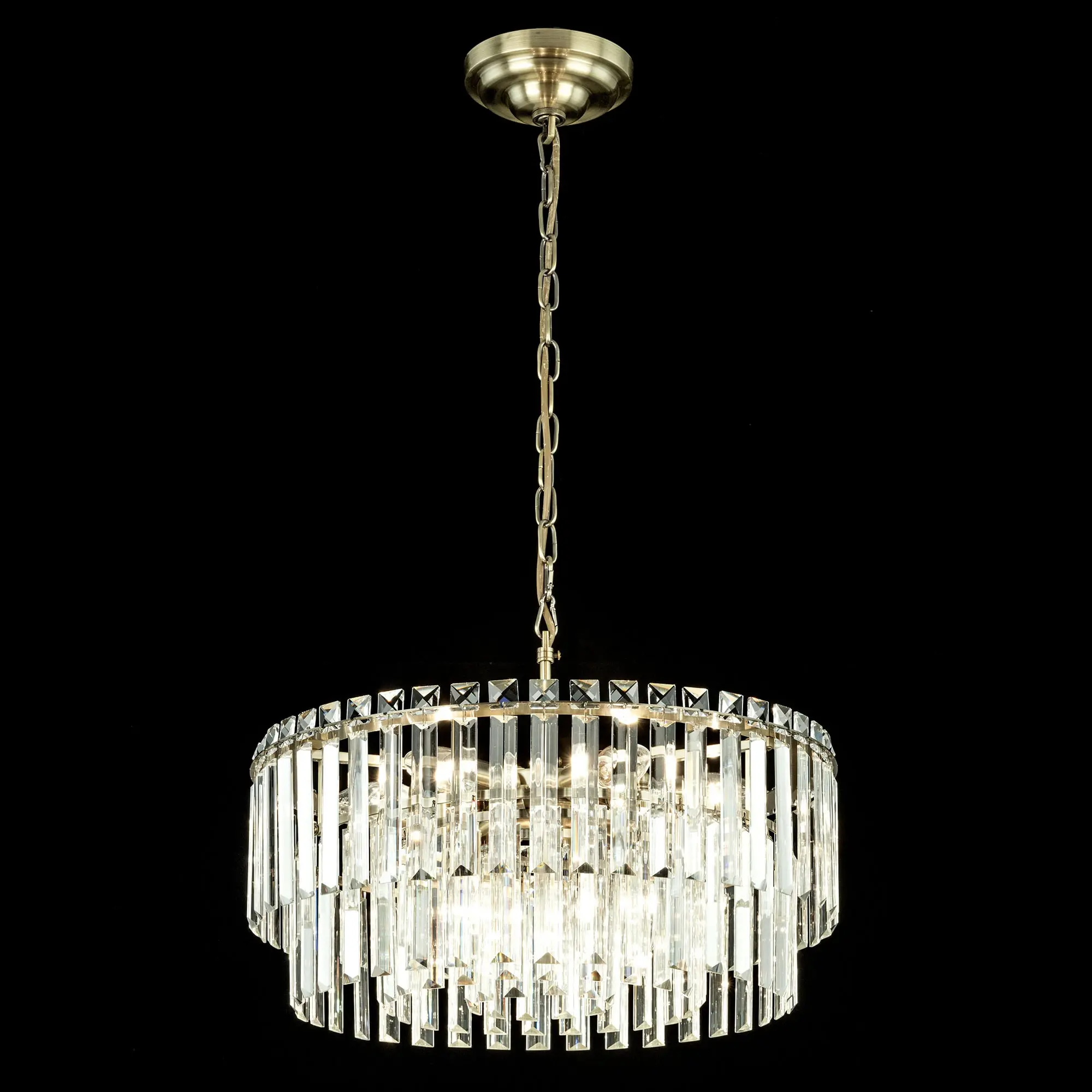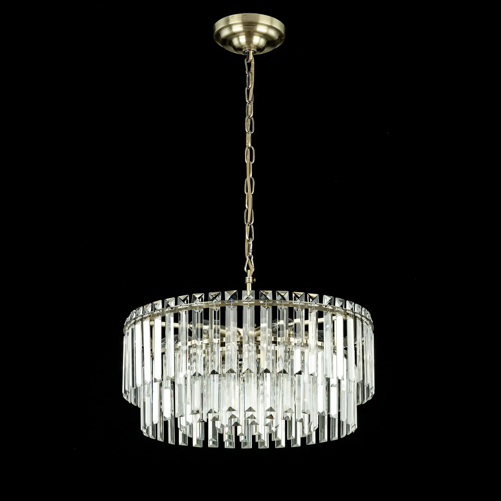 Хрустальная люстра Citilux Фонда CL303193 на цепи. Корпус светильника металлический, цвет бронза. Хрустальные элементы, прозрачные, с модной огранкой «призма». В светильнике используются 9 ламп с цоколем Е14, максимальной мощностью для ламп накаливания 60Вт, светодиодные лампы можно использовать более яркие. Изделие подходит для помещений как с высокими, так и с низкими потолками, длина цепи регулируется при установке. Светильник подходит для всех типов потолков, в том числе натяжных, тип крепления – планка. Подвесная люстра Citilux Фонда CL303193 отлично подойдет для освещения интерьеров, оформленных в современном и классическом стиле.