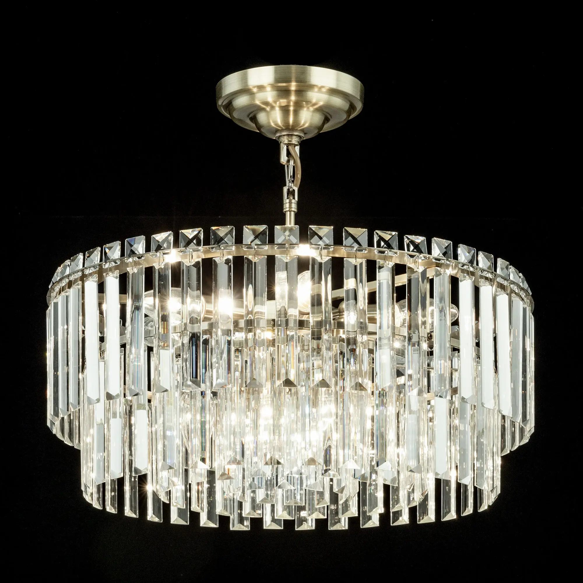 Хрустальная люстра Citilux Фонда CL303193 на цепи. Корпус светильника металлический, цвет бронза. Хрустальные элементы, прозрачные, с модной огранкой «призма». В светильнике используются 9 ламп с цоколем Е14, максимальной мощностью для ламп накаливания 60Вт, светодиодные лампы можно использовать более яркие. Изделие подходит для помещений как с высокими, так и с низкими потолками, длина цепи регулируется при установке. Светильник подходит для всех типов потолков, в том числе натяжных, тип крепления – планка. Подвесная люстра Citilux Фонда CL303193 отлично подойдет для освещения интерьеров, оформленных в современном и классическом стиле,