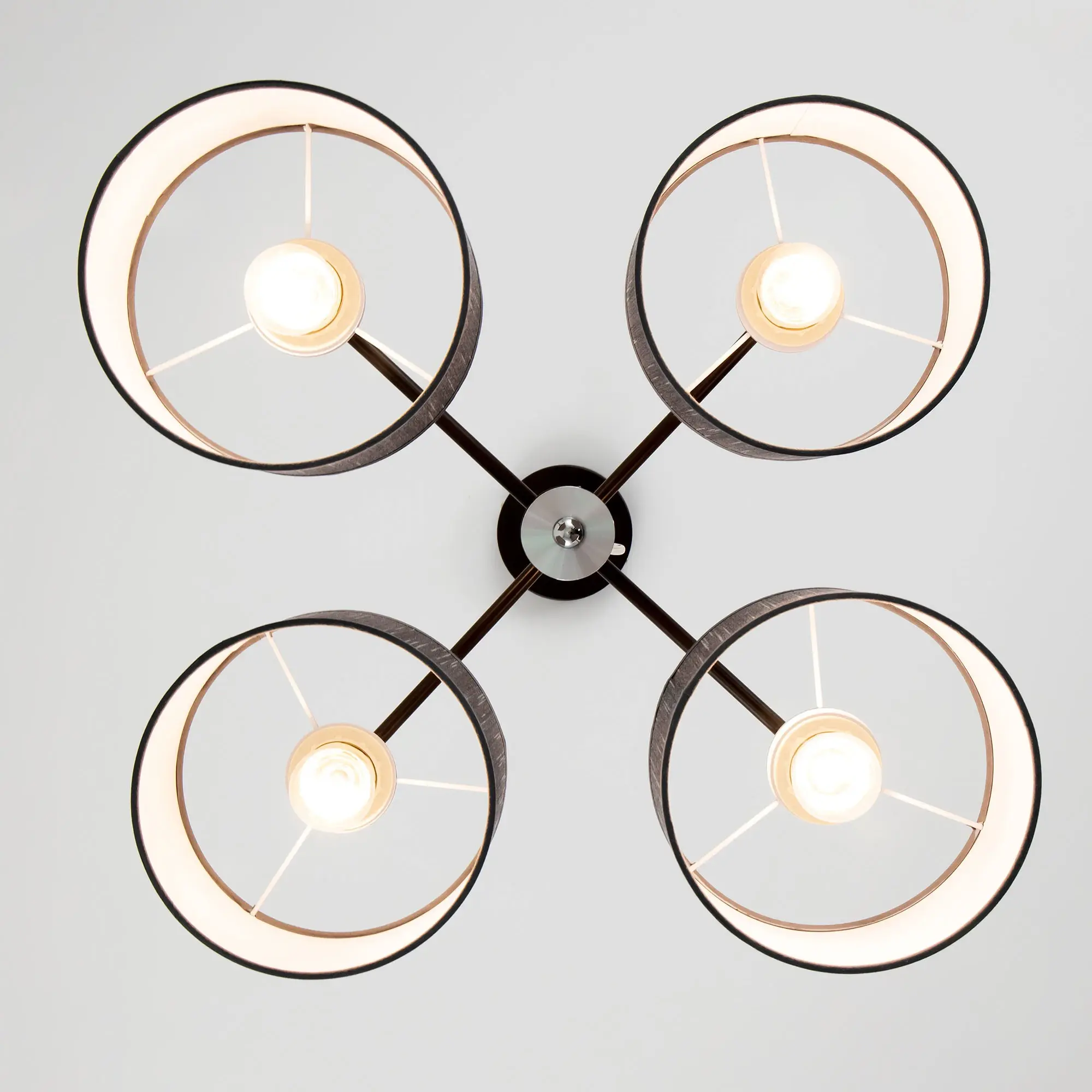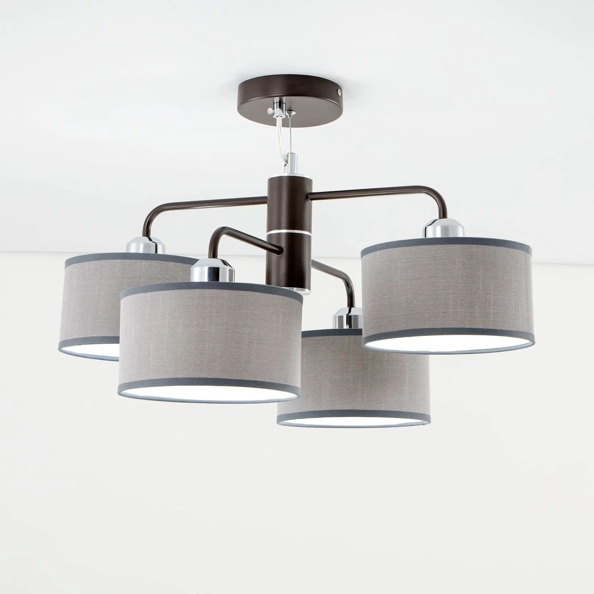 Подвесная люстра Citilux Форма CL428241 для современных интерьеров. Корпус светильника металлический, цвет венге (коричневый), с декоративными хромированными элементами. Абажуры цилиндрической формы, из текстурной ткани серого цвета, на подложке из оптического полимера. Размеры абажура: диаметр 12см, высота 10см. В изделии используются лампы с цоколем Е27, максимальной мощностью для ламп накаливания 60Вт. Светодиодные лампы можно использовать более яркие. Диаметр модели 44см, высота регулируется в диапазоне от 32см до 123см. Тип крепления к потолку – планка.