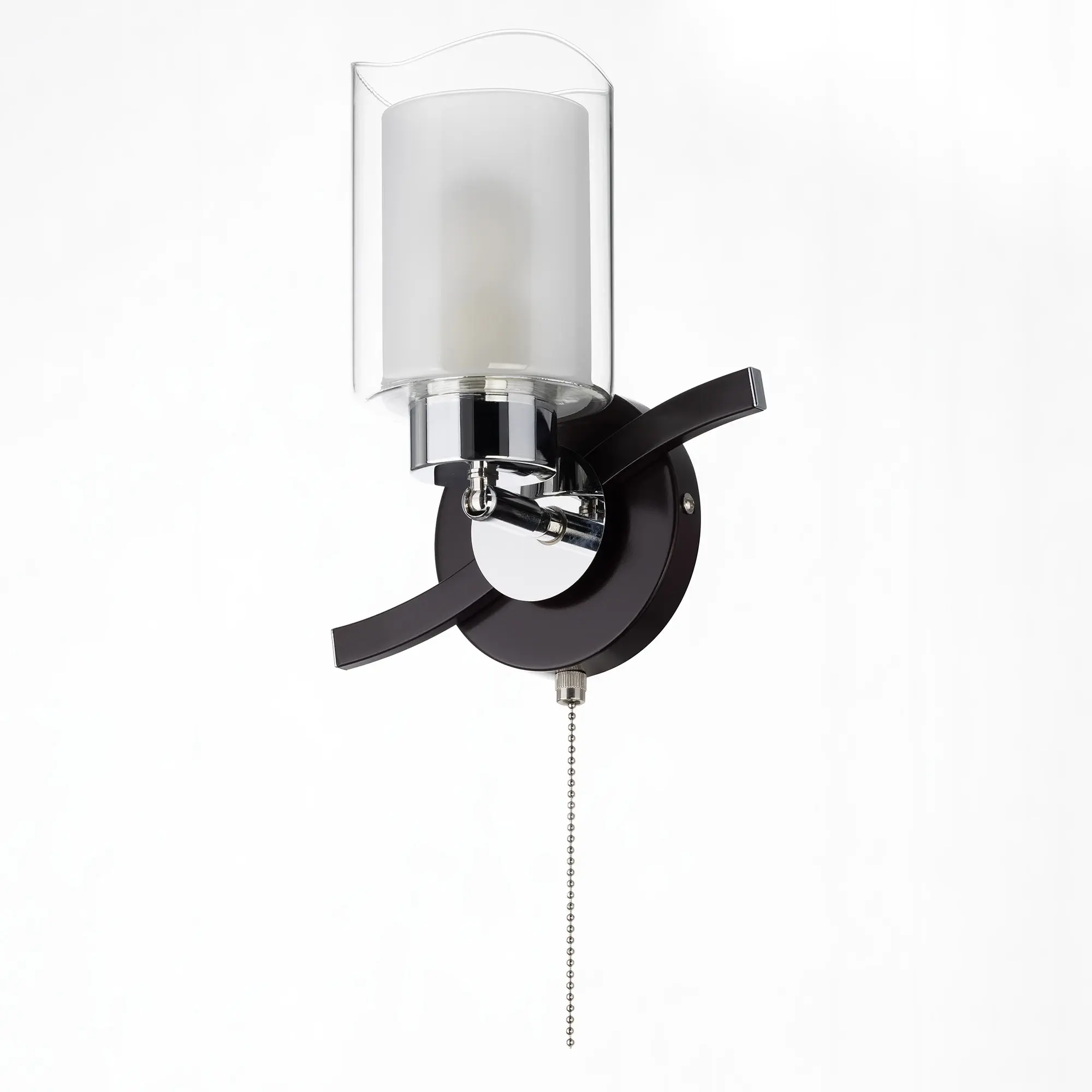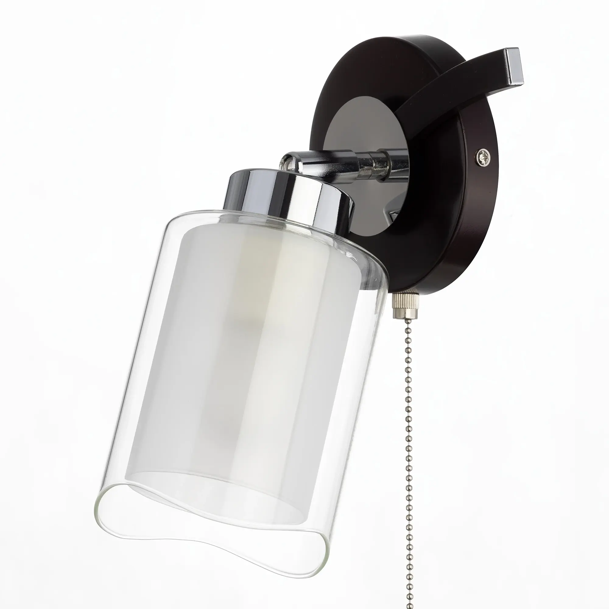 Бра настенная серии Фортуна выполнена в цвете венге с декоративными хромовыми элементами. Плафон оснащен поворотным механизмом, что позволяет зафиксировать его в любом положении. Например, плафон можно направить вверх и свет будет более равномерным и рассеянным, либо же повернуть на поверхность, где света нужно больше. Плафоны выполнены из стекла, наружное прозрачное, а внутреннее белое матовое. Светильник оснащен заводским выключателем на основании. Цоколь патрона Е27 с ограничением мощности для ламп накаливания 75 ватт, светодиодные лампочки можно ставить любой мощности. Основание бра сделано из металла. Площадь освещения до 4 квадратных метров. Размер: Ширина 21 см, Высота: 25, Глубина: 12.5см.