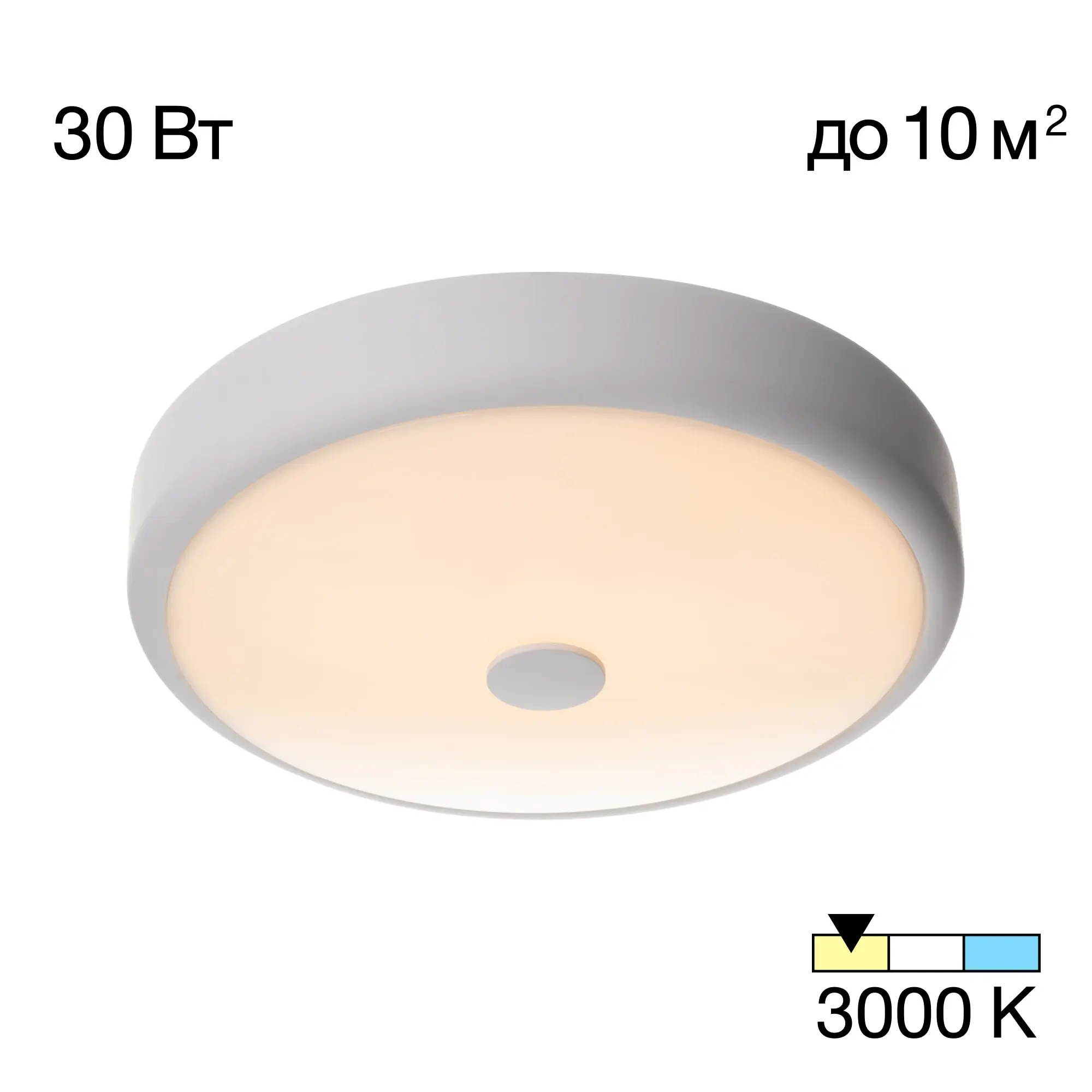 Светодиодный светильник Citilux Фостер-1 CL706130 в современном стиле. Основание металлическое, круглой формы, окрашено белой матовой текстурной краской. Плафон из оптического полимера, прекрасно рассеивает яркий свет. Такие плоские светильники часто называют светильник – таблетка. Диаметр 41,5см, высота 9,5см. Мощность 30Вт, цветовая температура 3000К – тёплый белый свет, без мерцаний и пульсаций, что благотворно отразится на здоровье глаз. Подходит для всех типов потолков, в том числе натяжных. Освети около 10м².,