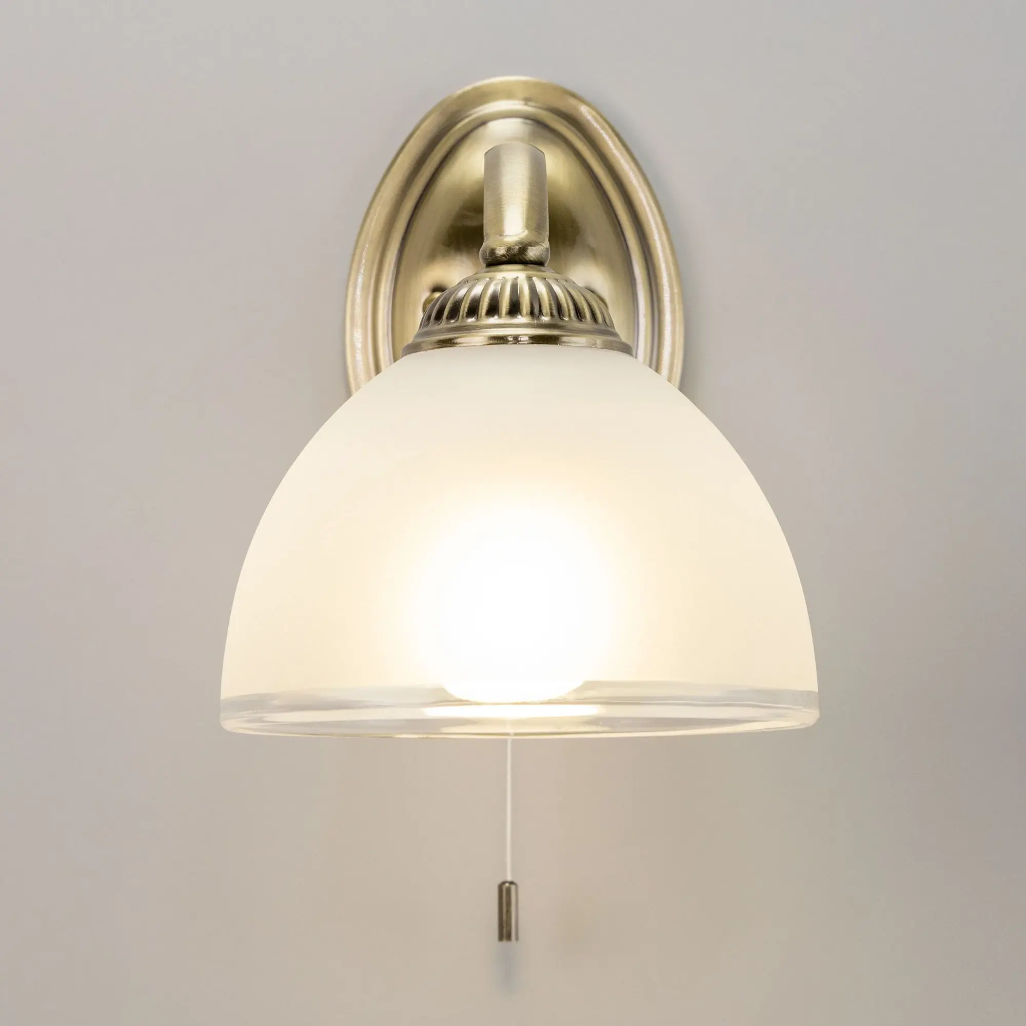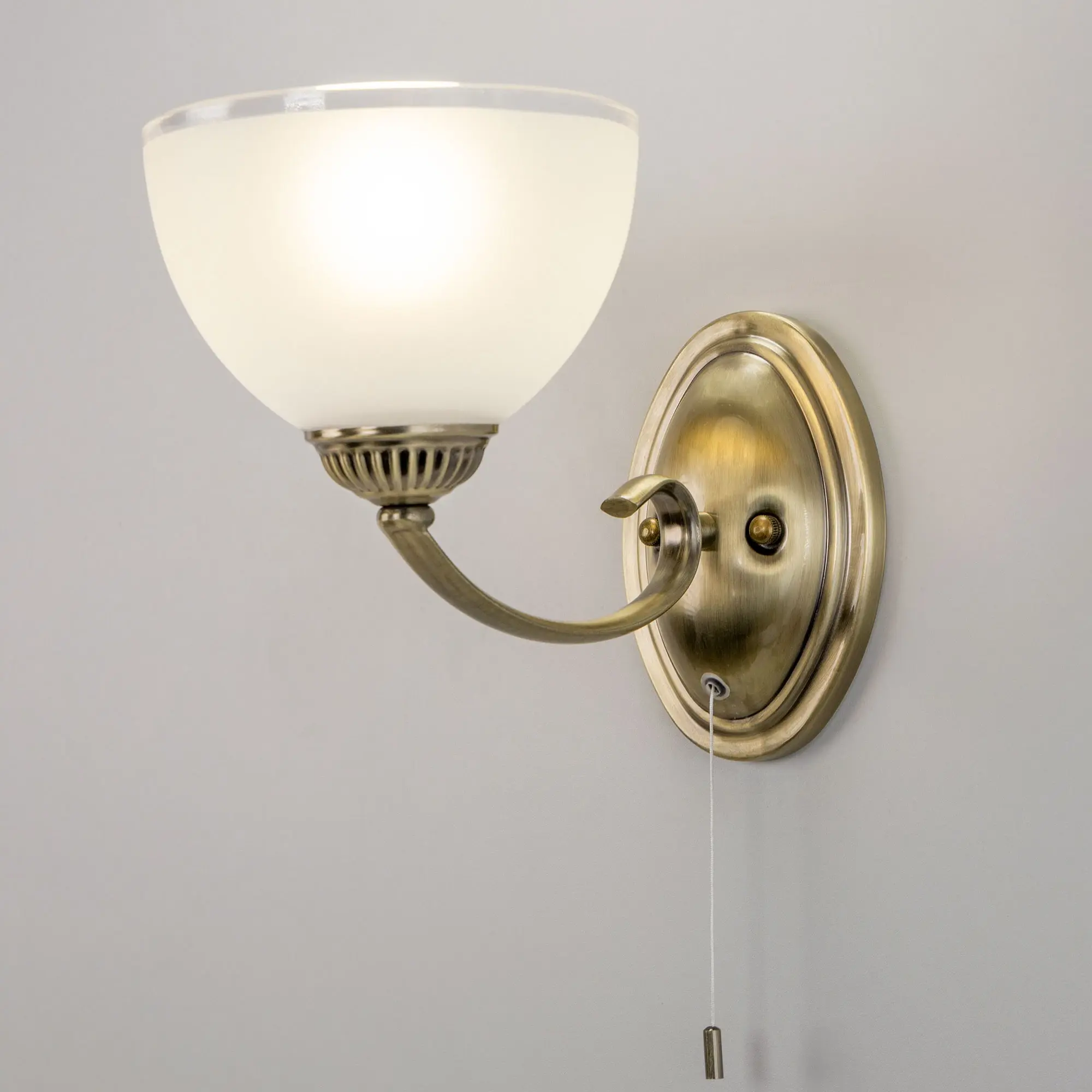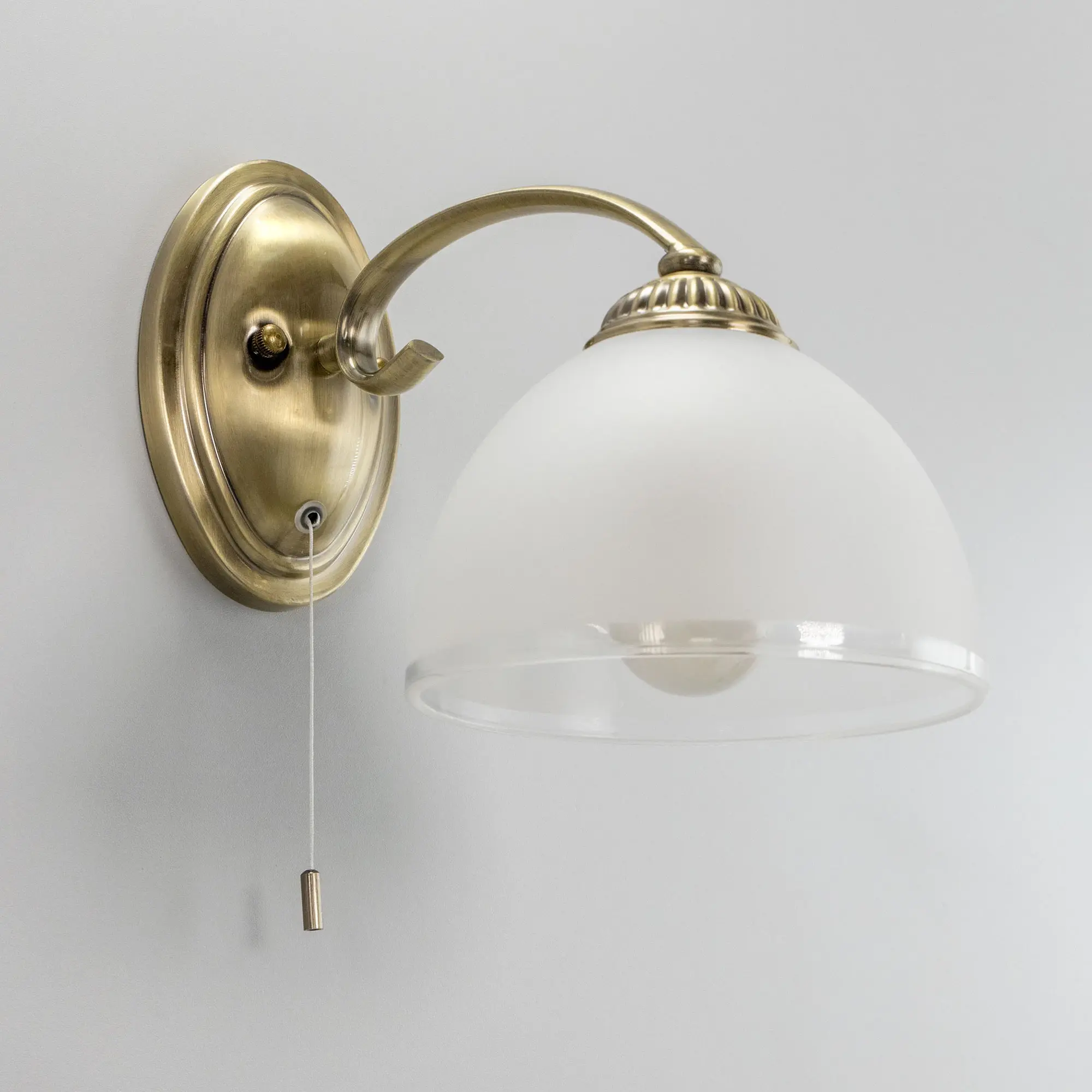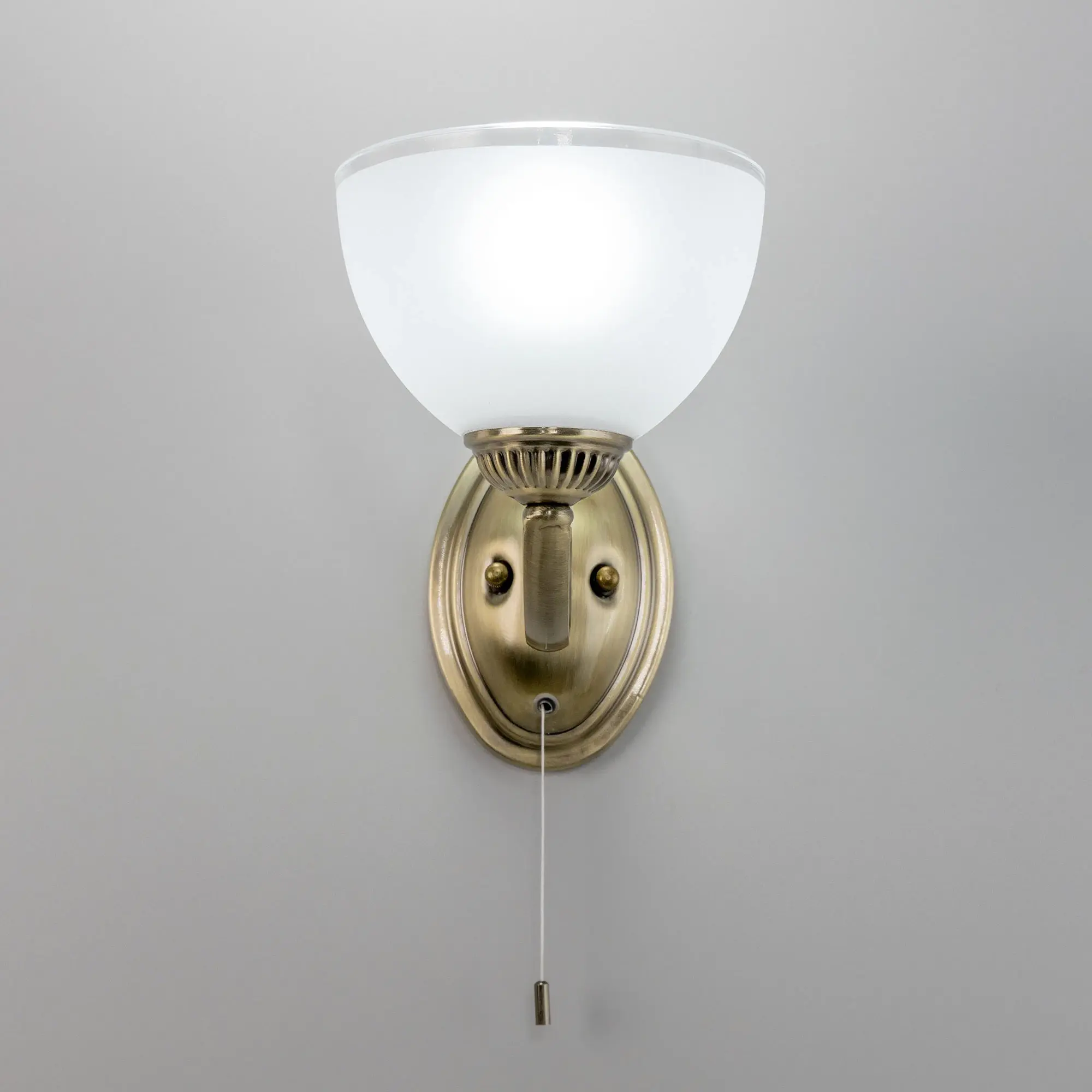 Настенный светильник Citilux Франческа CL417313 в классическом стиле с удобным выключателем. Корпус металлический, с литым рожком, цвет бронза. Плафон стеклянный, полуматовый, со стильной прозрачной окантовкой. Бра можно установить плафоном вверх или плафоном вниз. В изделии используется 1 лампа с цоколем Е27 и максимальной мощностью для ламп накаливания 75Вт. Светодиодные лампы можно использовать более яркие. Высота 20см, ширина 15см, глубина 26,5см.,