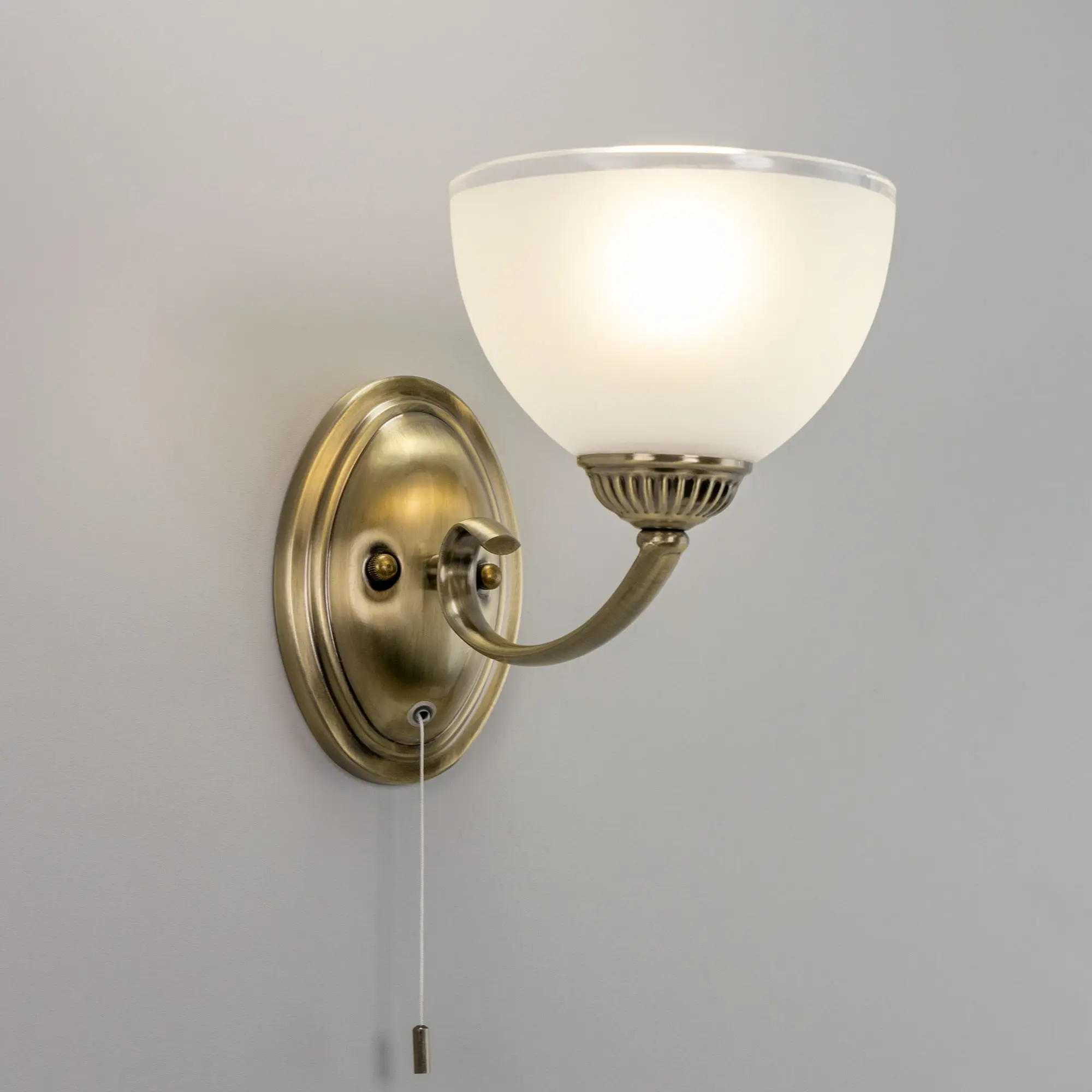 Настенный светильник Citilux Франческа CL417313 в классическом стиле с удобным выключателем. Корпус металлический, с литым рожком, цвет бронза. Плафон стеклянный, полуматовый, со стильной прозрачной окантовкой. Бра можно установить плафоном вверх или плафоном вниз. В изделии используется 1 лампа с цоколем Е27 и максимальной мощностью для ламп накаливания 75Вт. Светодиодные лампы можно использовать более яркие. Высота 20см, ширина 15см, глубина 26,5см,