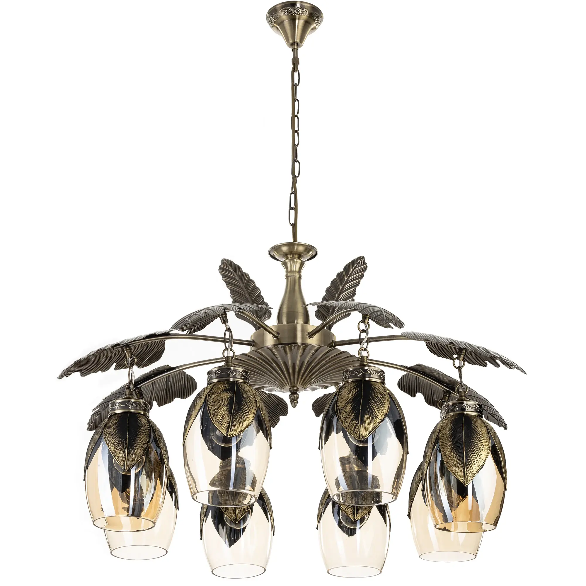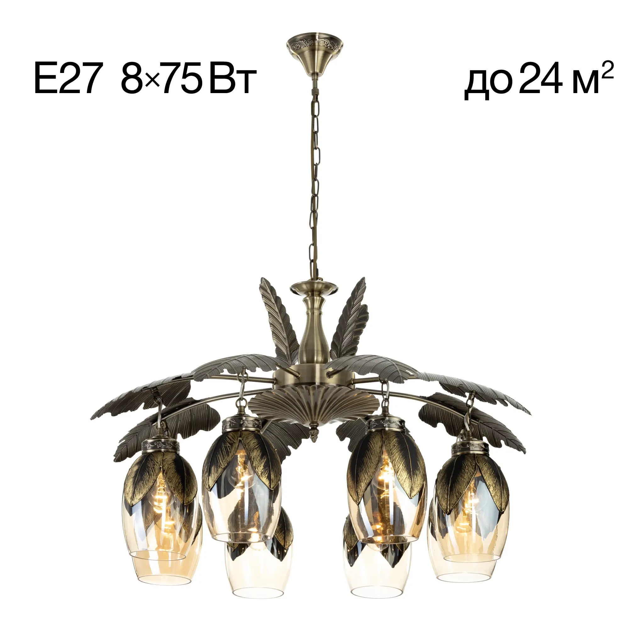 Люстра прекрасно подойдет для оформления самых разных интерьеров - от атмосферных гостиных и просторных залов до кухни, кабинета, кафе или ресторана. В изделии 8 ламп с цоколем Е27 максимальной мощностью для ламп накаливания 75Вт (в комплект не входят, приобретаются отдельно).