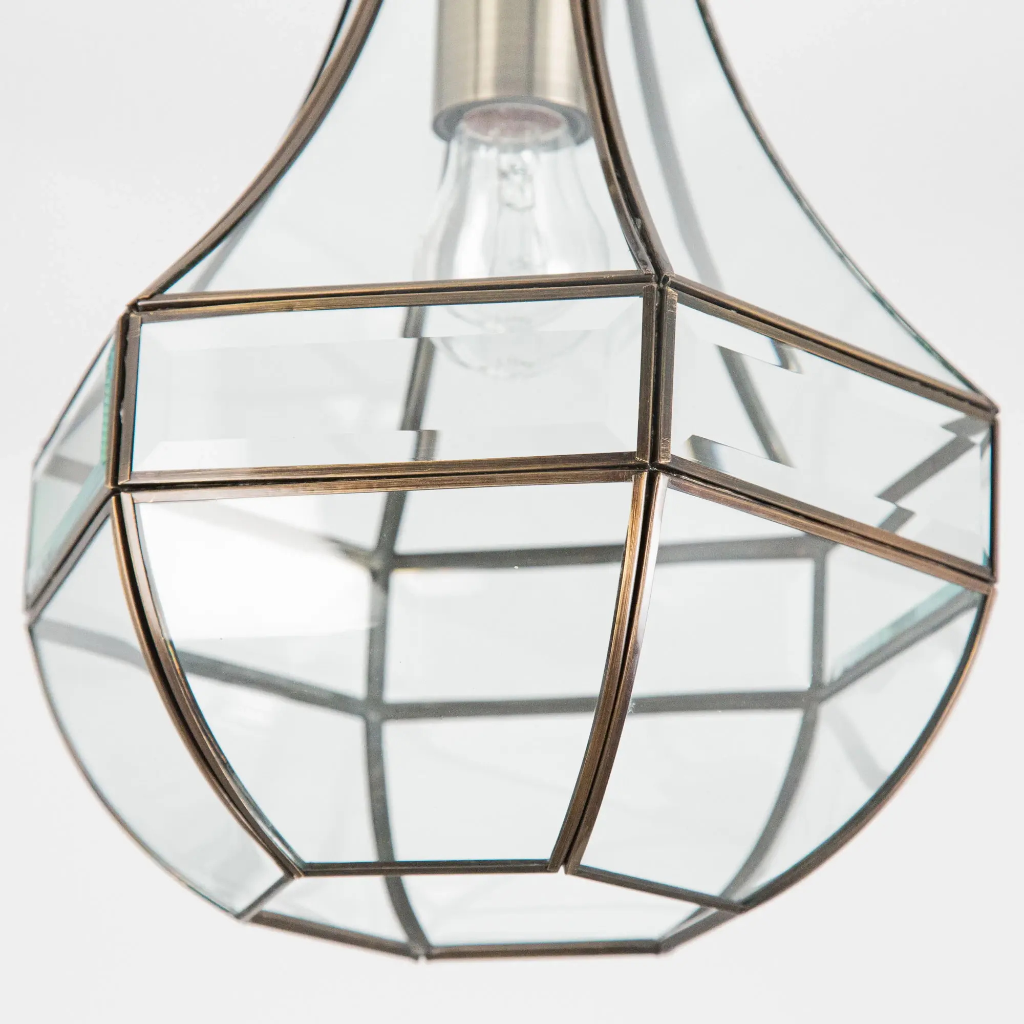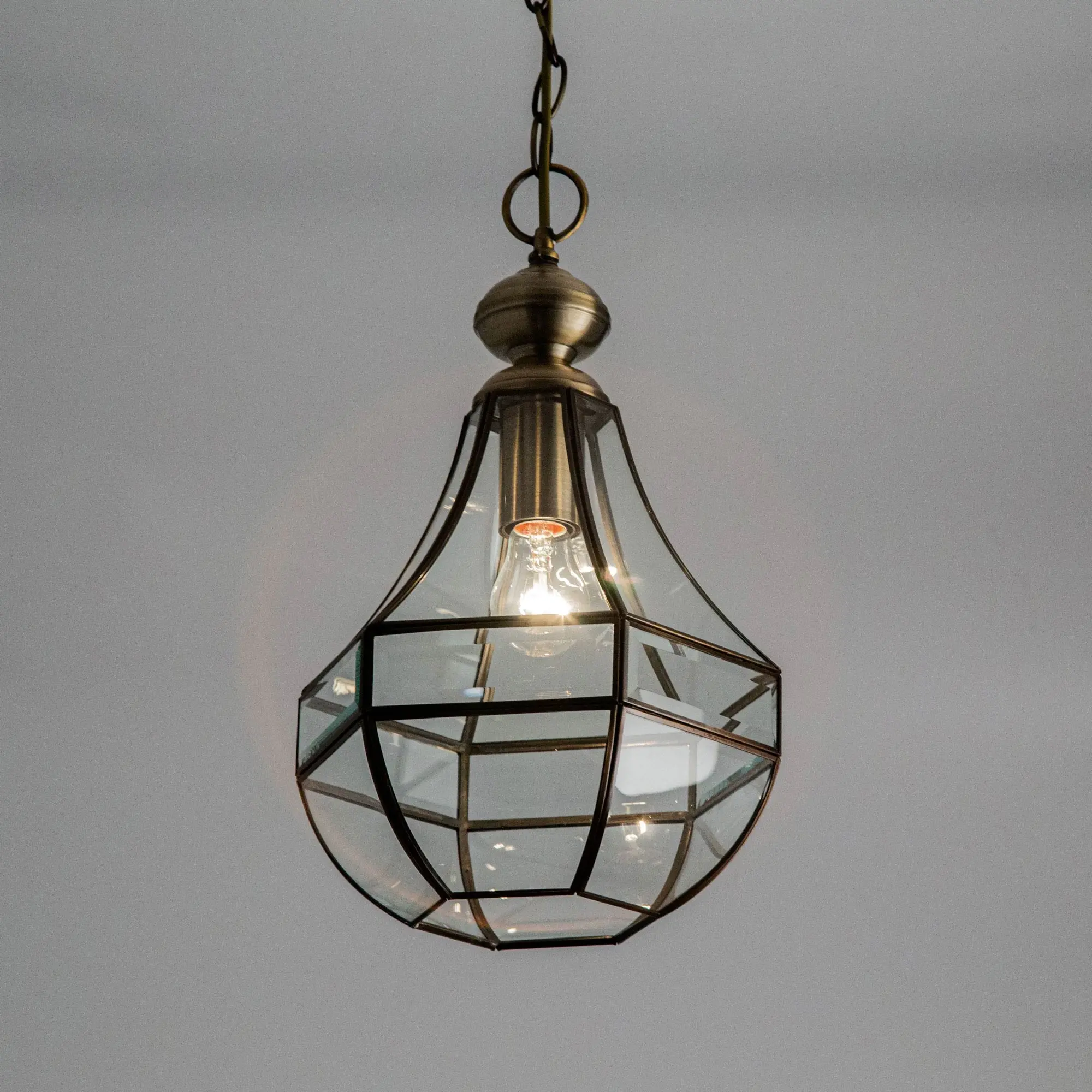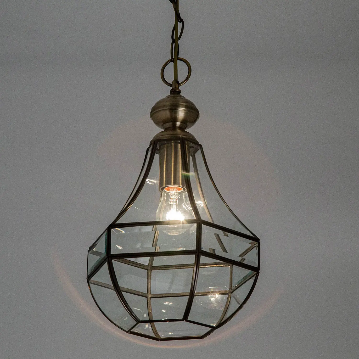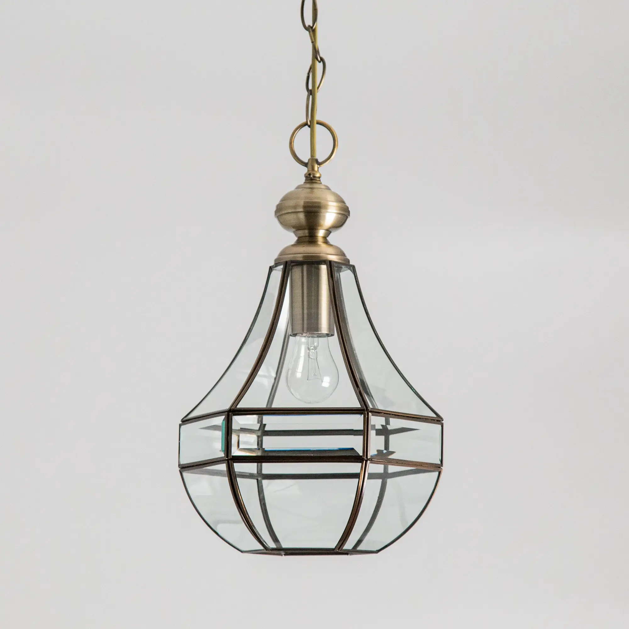 Одиночный подвесной светильник Citilux Gera CL444110 в ретро-стиле. Каркас из металлического сплава благородного оттенка старой бронзы. Витражный плафон причудливой формы изготовлен из прозрачного стекла вручную.