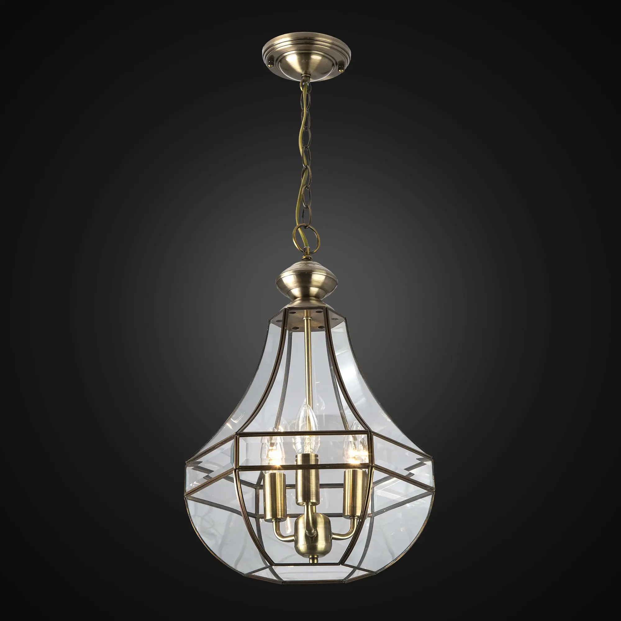 Витражная подвесная люстра Citilux Gera CL444130 в ретро-стиле. Каркас из металлического сплава благородного оттенка старой бронзы. Витражный плафон причудливой формы изготовлен из прозрачного стекла вручную.