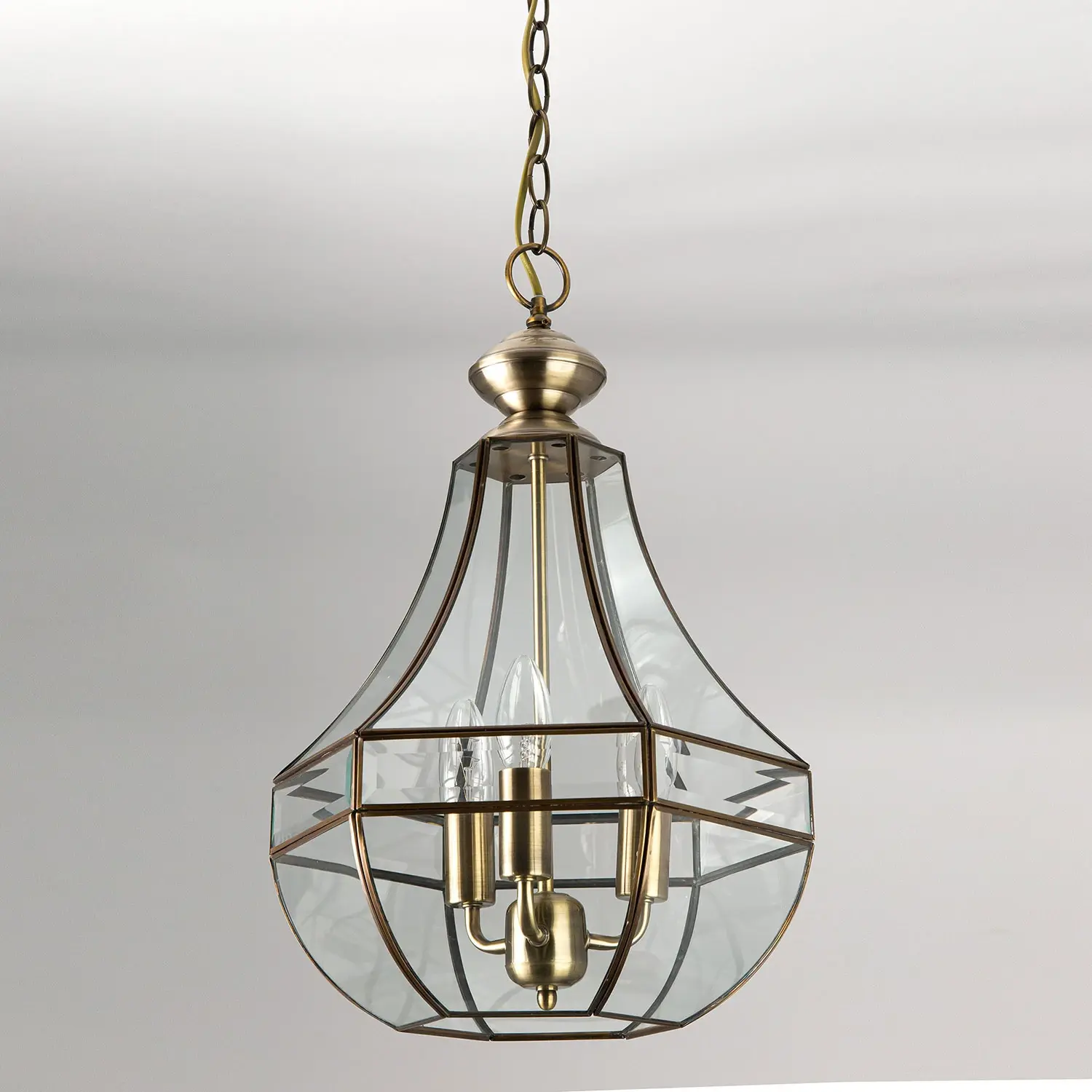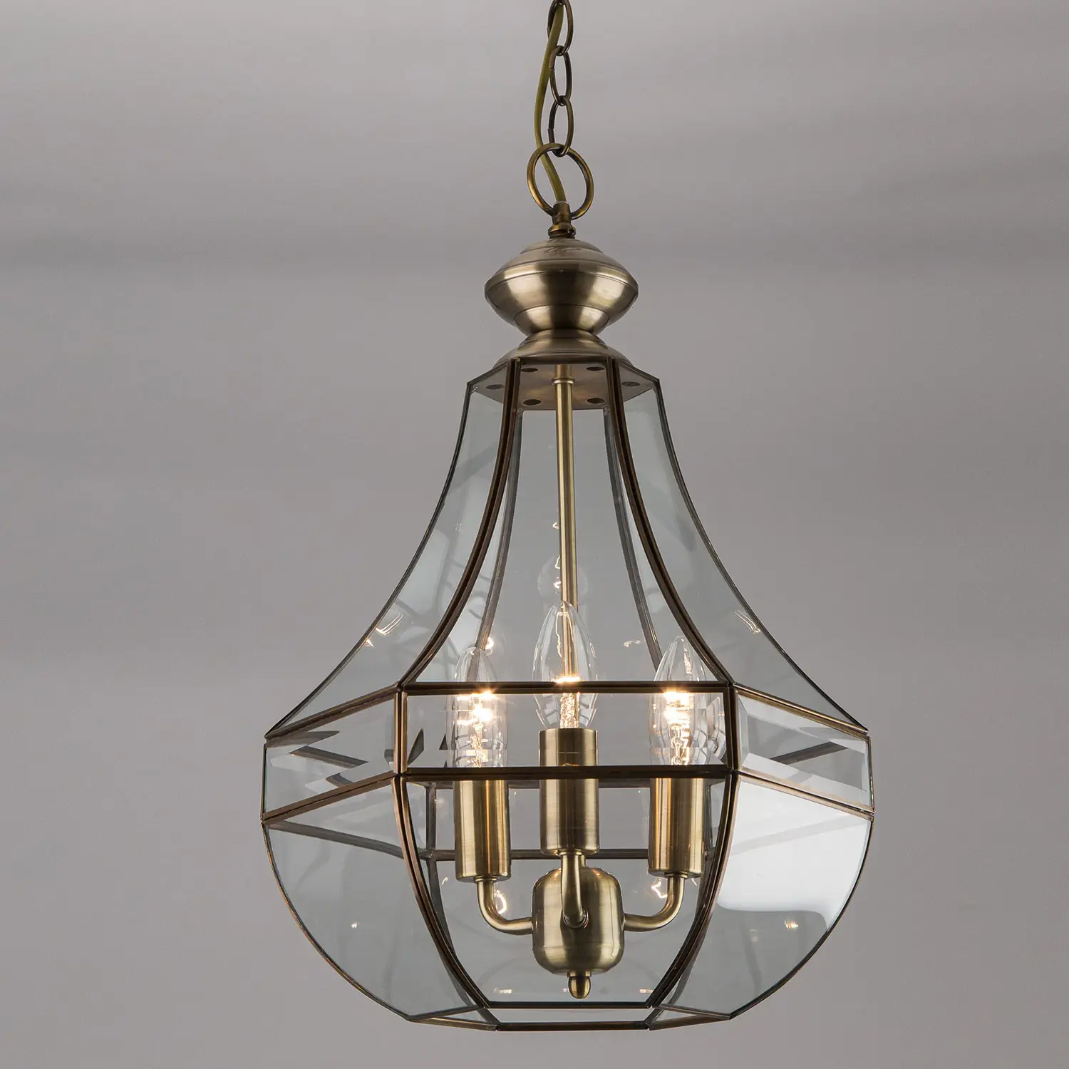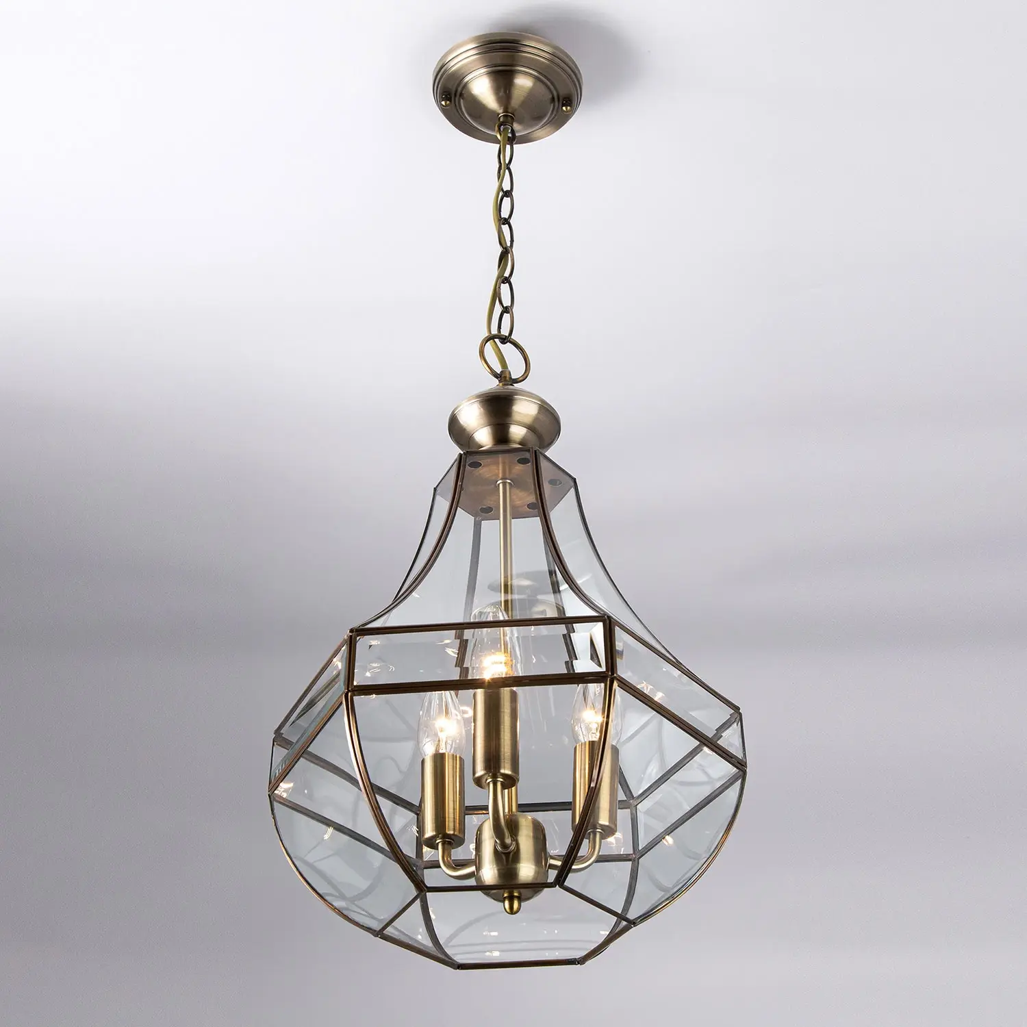В люстре используется три лампочки с цоколем E14 (не входят в комплект). Высоту подвеса можно изменить, сократив количество звеньев подвесной цепи. Тип крепления к потолку — планка, изделие можно установить даже на натяжной потолок.