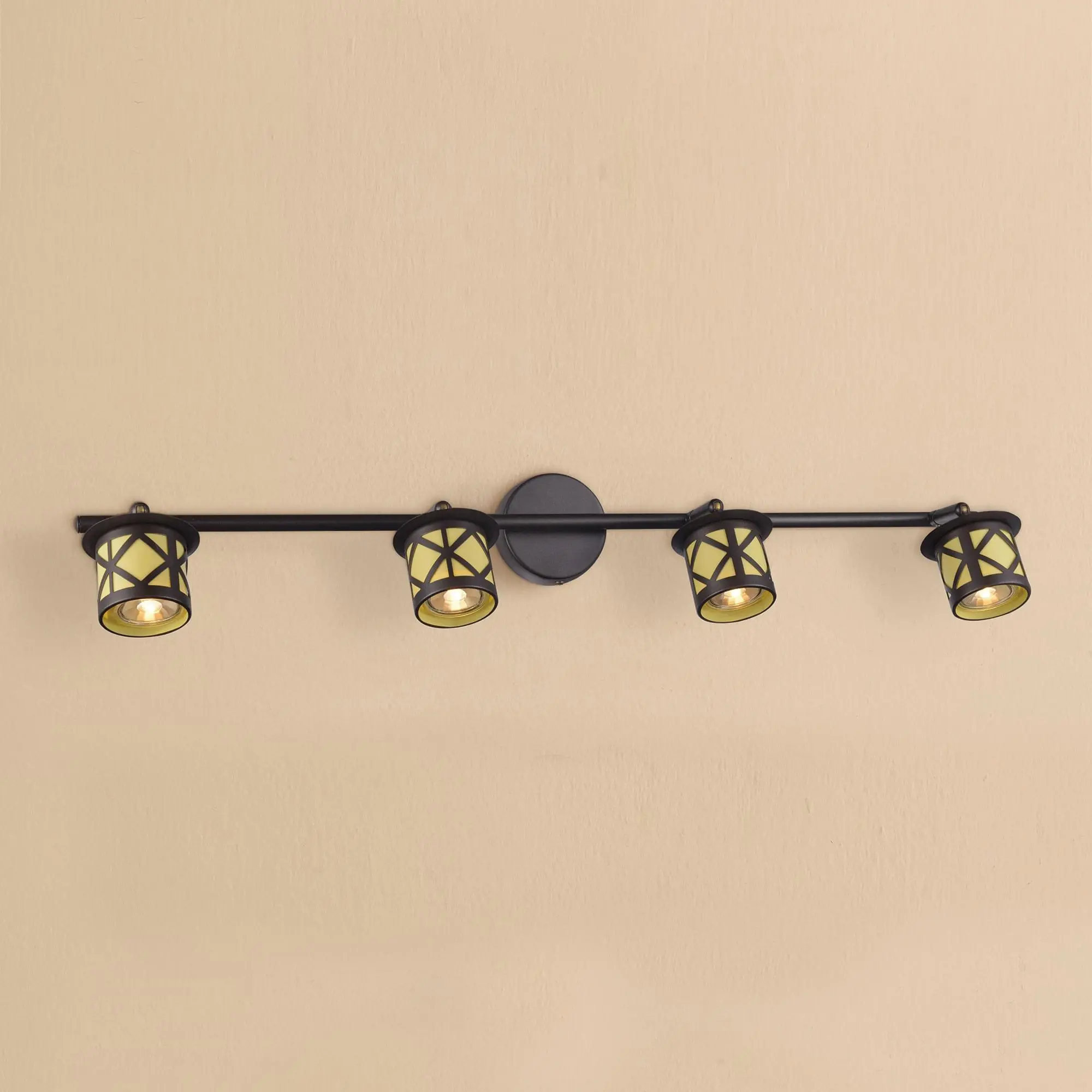 Настенно - потолочный светильник Citilux Гессен CL536541 с четырьмя поворотными плафонами выполнен в популярном стиле лофт. Корпус металлический, коричневого цвета. Плафоны украшены винтажным металлическим декором, рассеиватель из оптического полимера горчичного цвета.