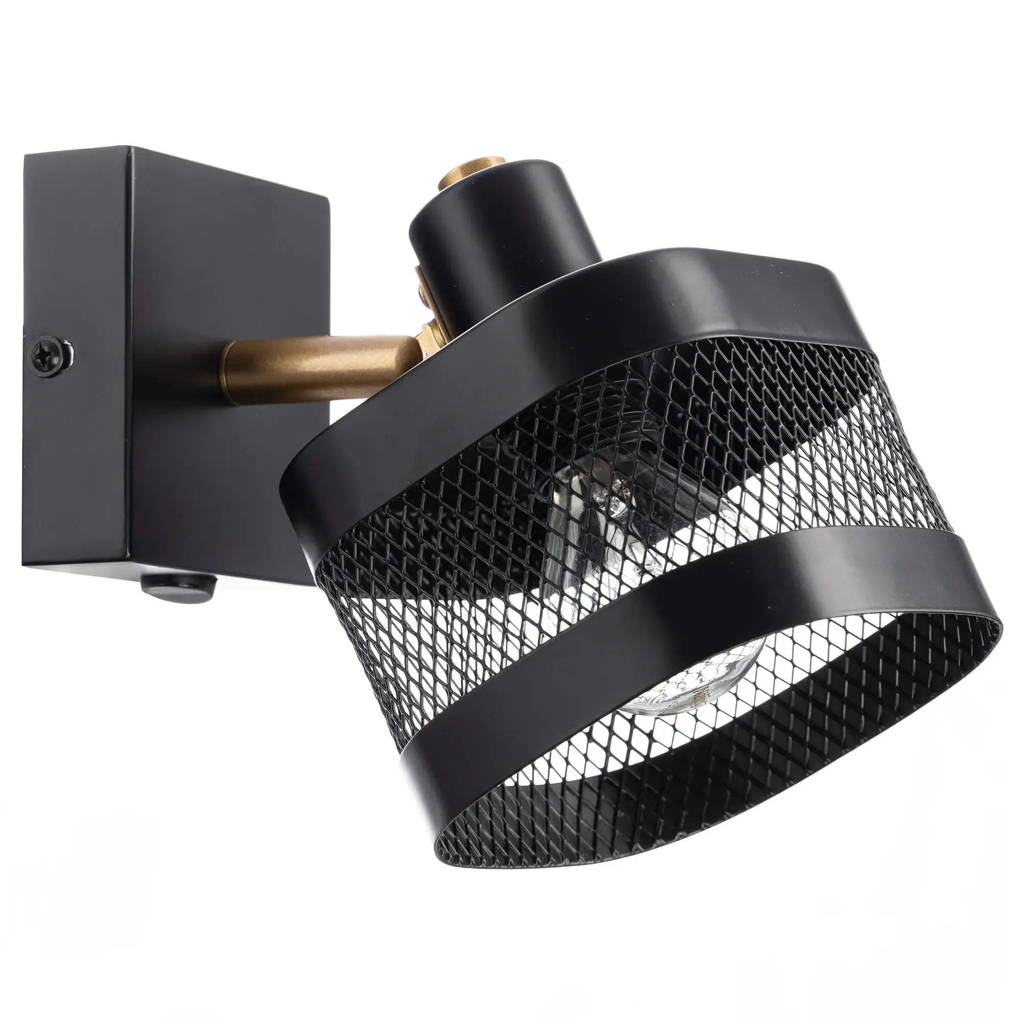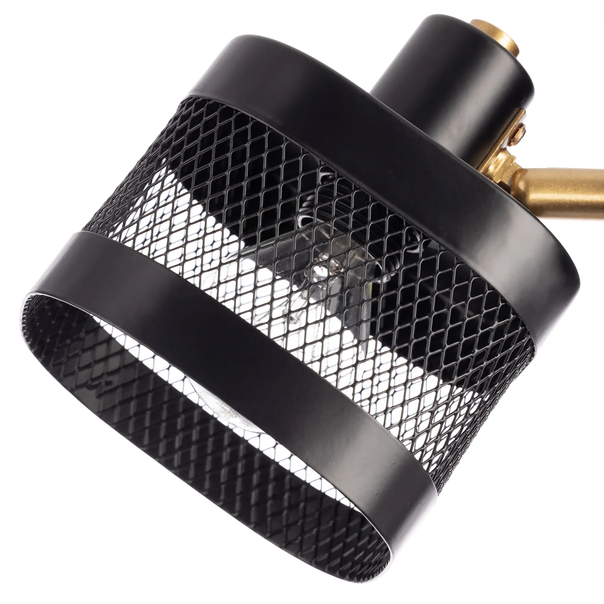 Корпус выполнен из металла, окрашенного в чёрный цвет и оснащен квадратным сетчатым плафоном для равномерного освещения.