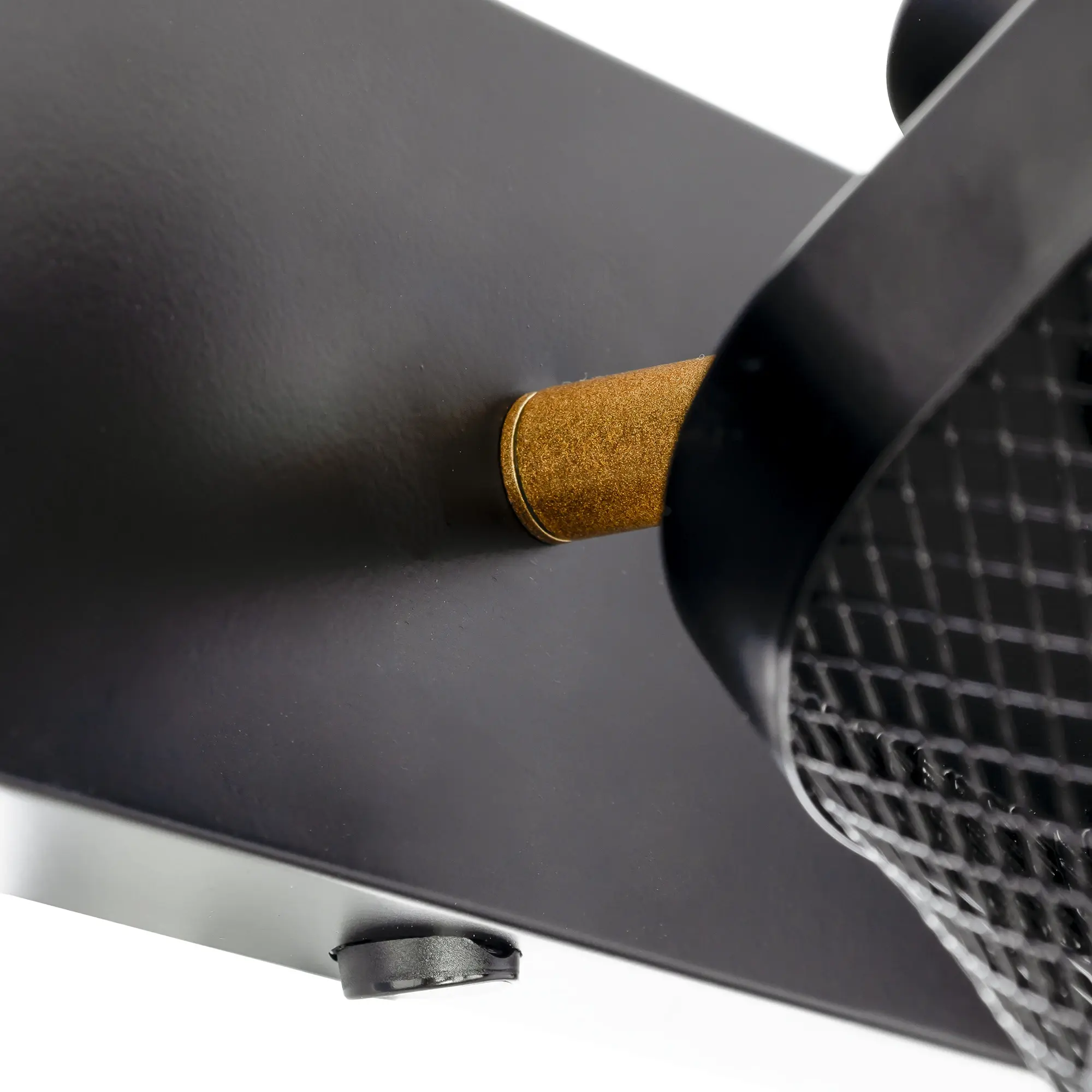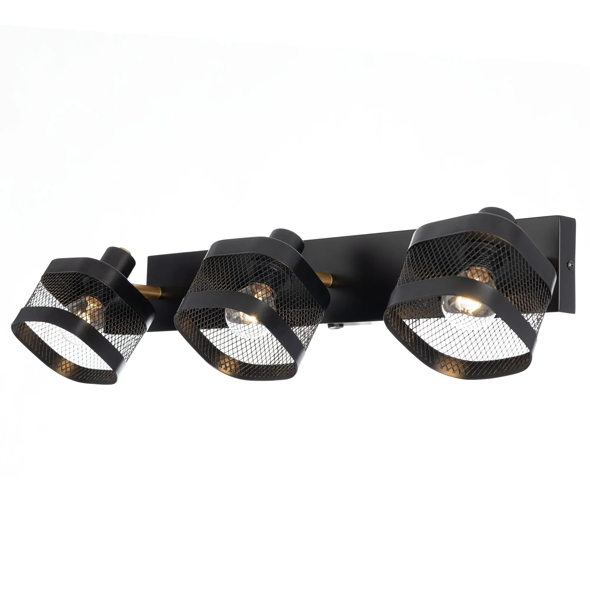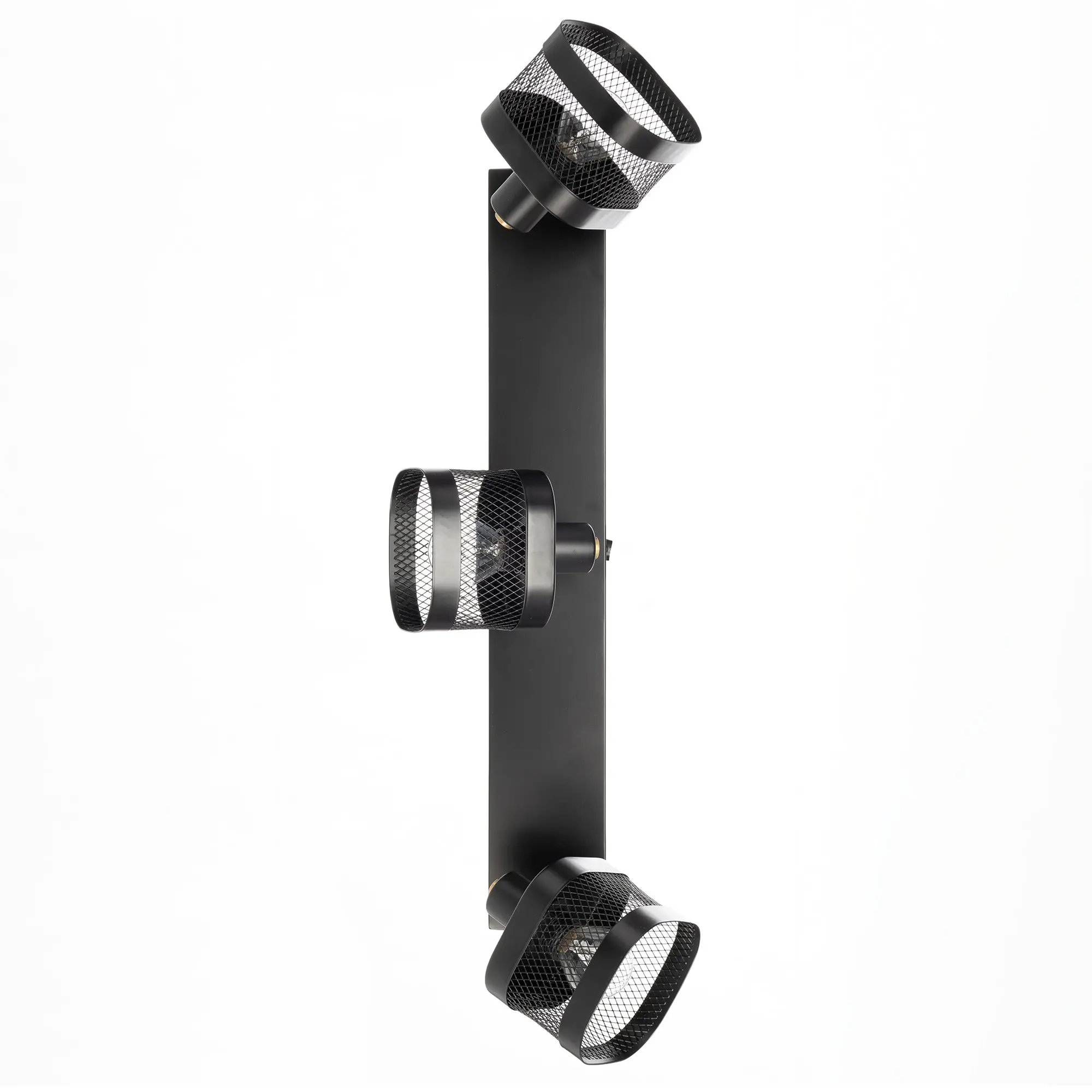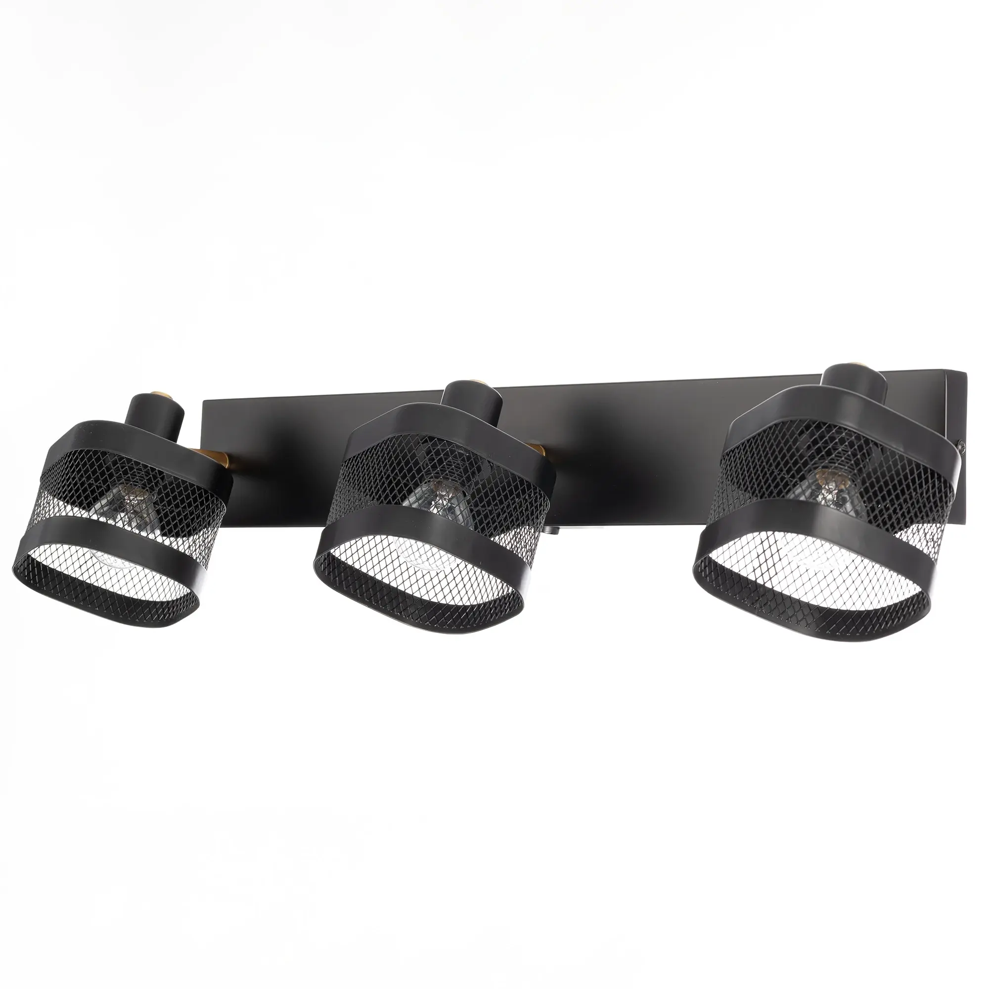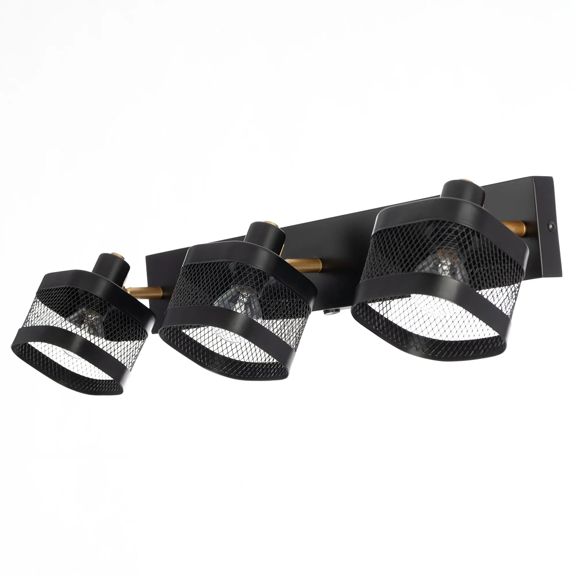Корпус выполнен из металла, окрашенного в чёрный цвет и оснащен квадратными сетчатыми плафонами для равномерного освещения.