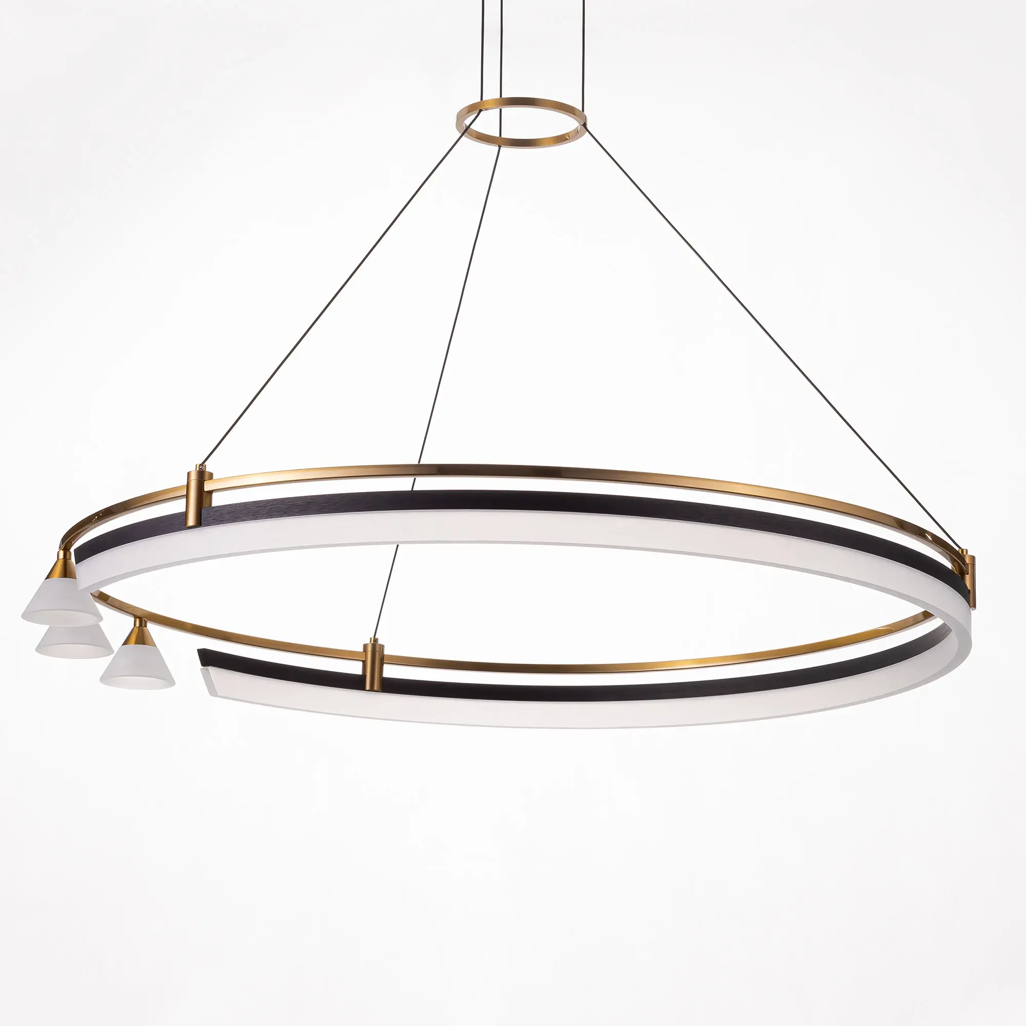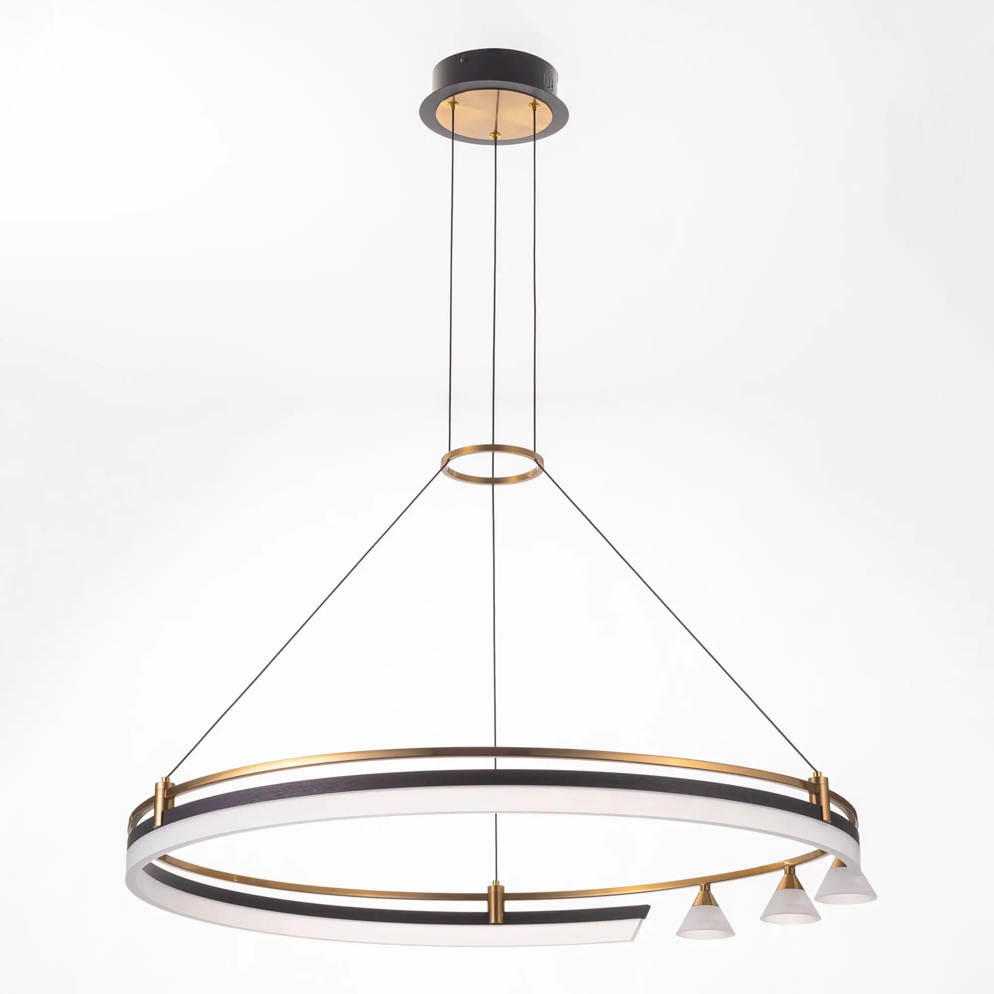 Подвесная светодиодная кольцевая люстра Citilux HELLY CL211082 является ярким примером элегантного сочетания современных технологий и изысканного дизайна. Корпус выполнен из металла, удачно сочетая благородный оттенок бронзы с глубоким чёрным цветом, что придаёт люстре стильный и утончённый вид. Оптический полимерный рассеиватель обеспечивает равномерное и мягкое освещение, создавая уютную атмосферу в любом помещении. Асимметрично расположенные плафоны подчёркивают оригинальный дизайн модели.