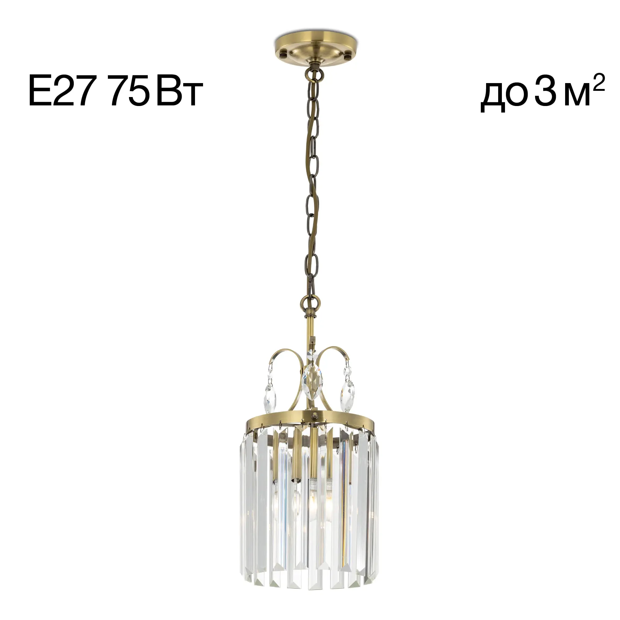В изделии 1 лампа с цоколем Е27 максимальной мощностью для ламп накаливания 75Вт (в комплект не входит, приобретается отдельно), светодиодные лампы можно использовать более яркие. Диаметр светильника 19см, высота легко регулируется от 40см до 1,2м. Площадь освещения около 3м². Модель подходит для всех типов потолков, в том числе натяжных, тип крепления – планка.
