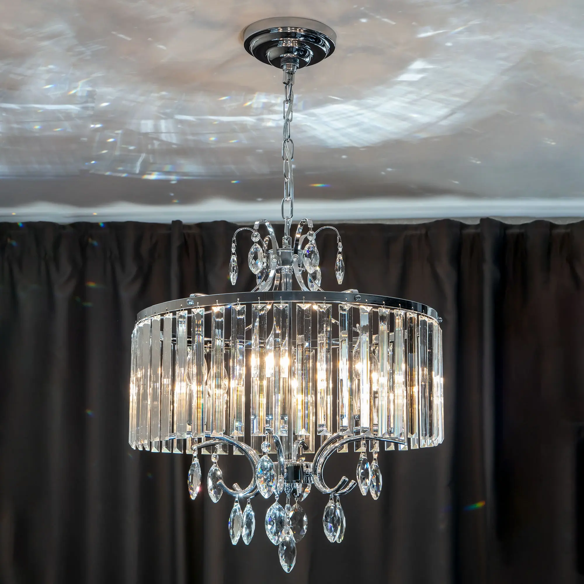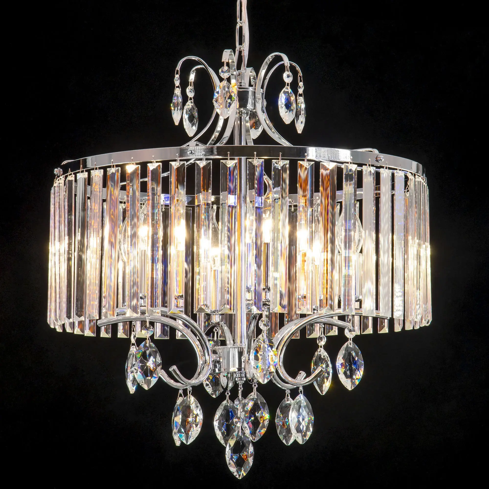 Хрустальная люстра Citilux Инга CL335161 на цепи. Корпус светильника металлический, цвет хром. Подвески хрустальные, прозрачные с классической огранкой. В модели используются 6 ламп с цоколем Е14, максимальной мощностью для ламп накаливания 60Вт. Светодиодные лампы можно использовать более яркие. Площадь освещения около 21м². Люстра подходит для всех типов потолков, в том числе натяжных. Тип крепления к потолку – планка. Светильник отлично подойдет для освещения пространств, оформленных как в современном, так и в классическом стиле.,