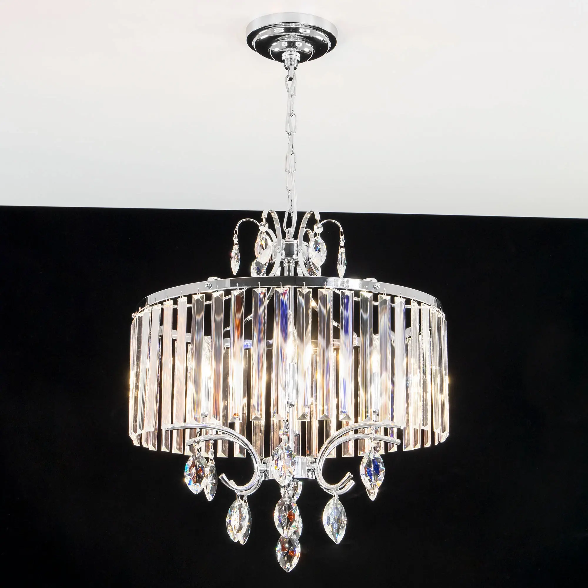 Хрустальная люстра Citilux Инга CL335161 на цепи. Корпус светильника металлический, цвет хром. Подвески хрустальные, прозрачные с классической огранкой. В модели используются 6 ламп с цоколем Е14, максимальной мощностью для ламп накаливания 60Вт. Светодиодные лампы можно использовать более яркие. Площадь освещения около 21м². Люстра подходит для всех типов потолков, в том числе натяжных. Тип крепления к потолку – планка. Светильник отлично подойдет для освещения пространств, оформленных как в современном, так и в классическом стиле,