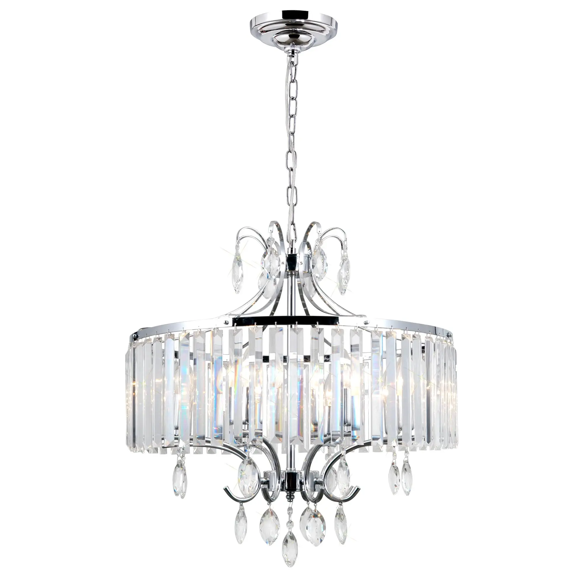 Хрустальная люстра Citilux Инга CL335181 на цепи. Корпус светильника металлический, цвет хром. Подвески хрустальные, прозрачные с классической огранкой. В модели используются 8 ламп с цоколем Е14, максимальной мощностью для ламп накаливания 60Вт. Светодиодные лампы можно использовать более яркие. Площадь освещения около 23м². Люстра подходит для всех типов потолков, в том числе натяжных. Тип крепления к потолку – планка. Светильник отлично подойдет для освещения пространств, оформленных как в современном, так и в классическом стиле.,