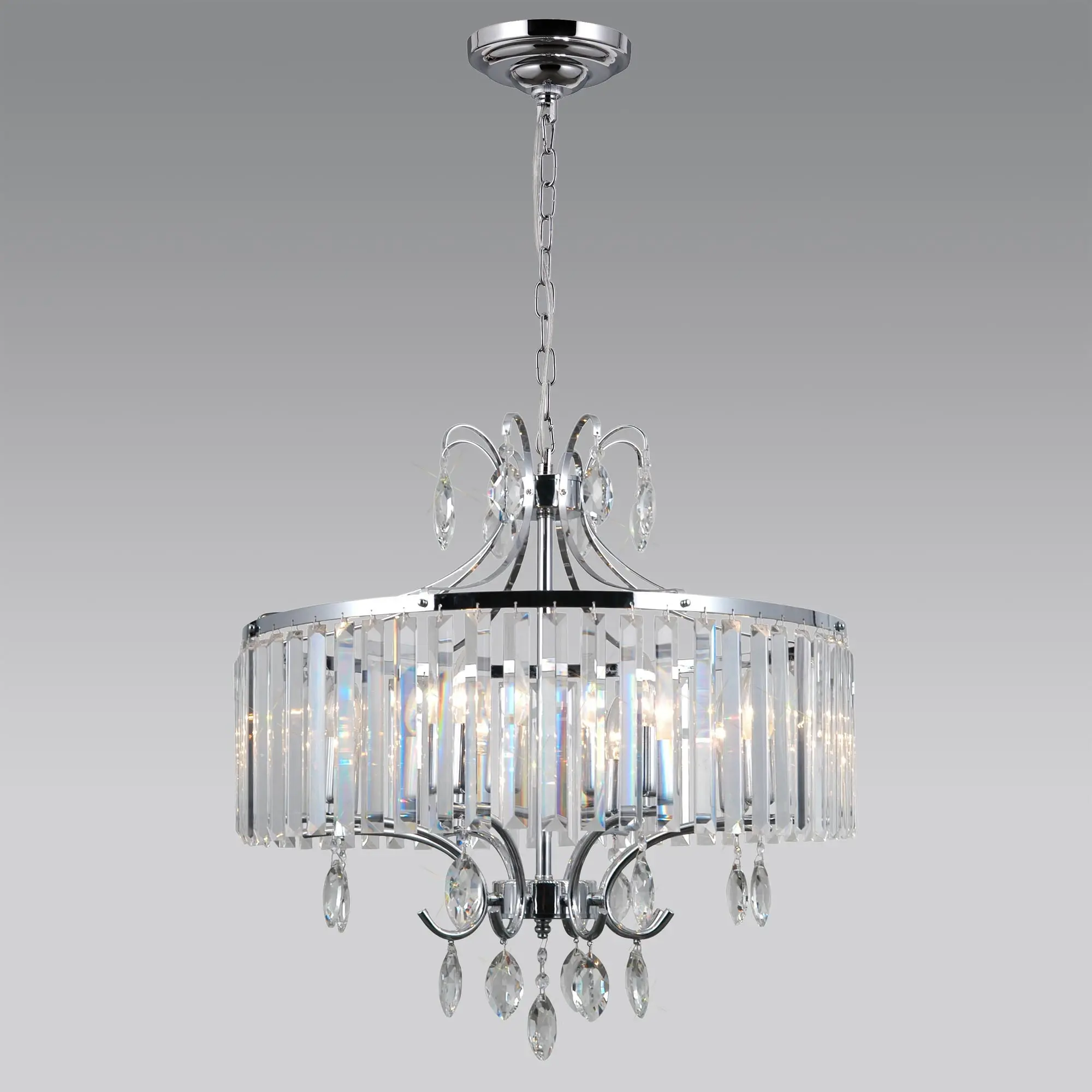 Хрустальная люстра Citilux Инга CL335181 на цепи. Корпус светильника металлический, цвет хром. Подвески хрустальные, прозрачные с классической огранкой. В модели используются 8 ламп с цоколем Е14, максимальной мощностью для ламп накаливания 60Вт. Светодиодные лампы можно использовать более яркие. Площадь освещения около 23м². Люстра подходит для всех типов потолков, в том числе натяжных. Тип крепления к потолку – планка. Светильник отлично подойдет для освещения пространств, оформленных как в современном, так и в классическом стиле.