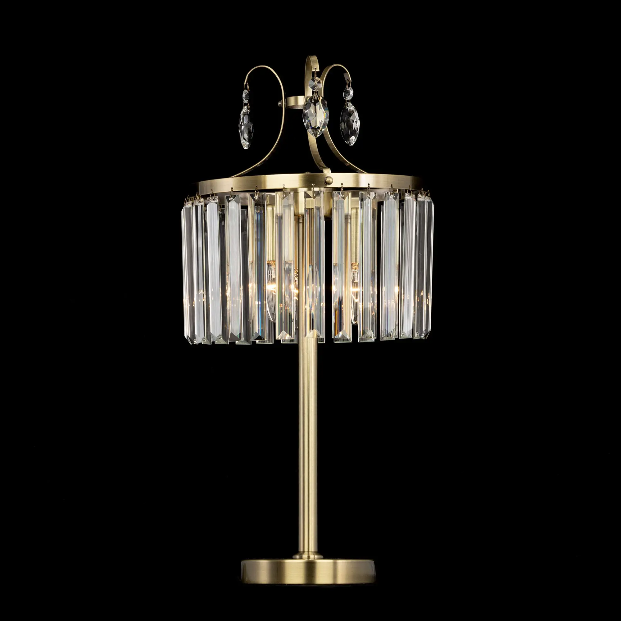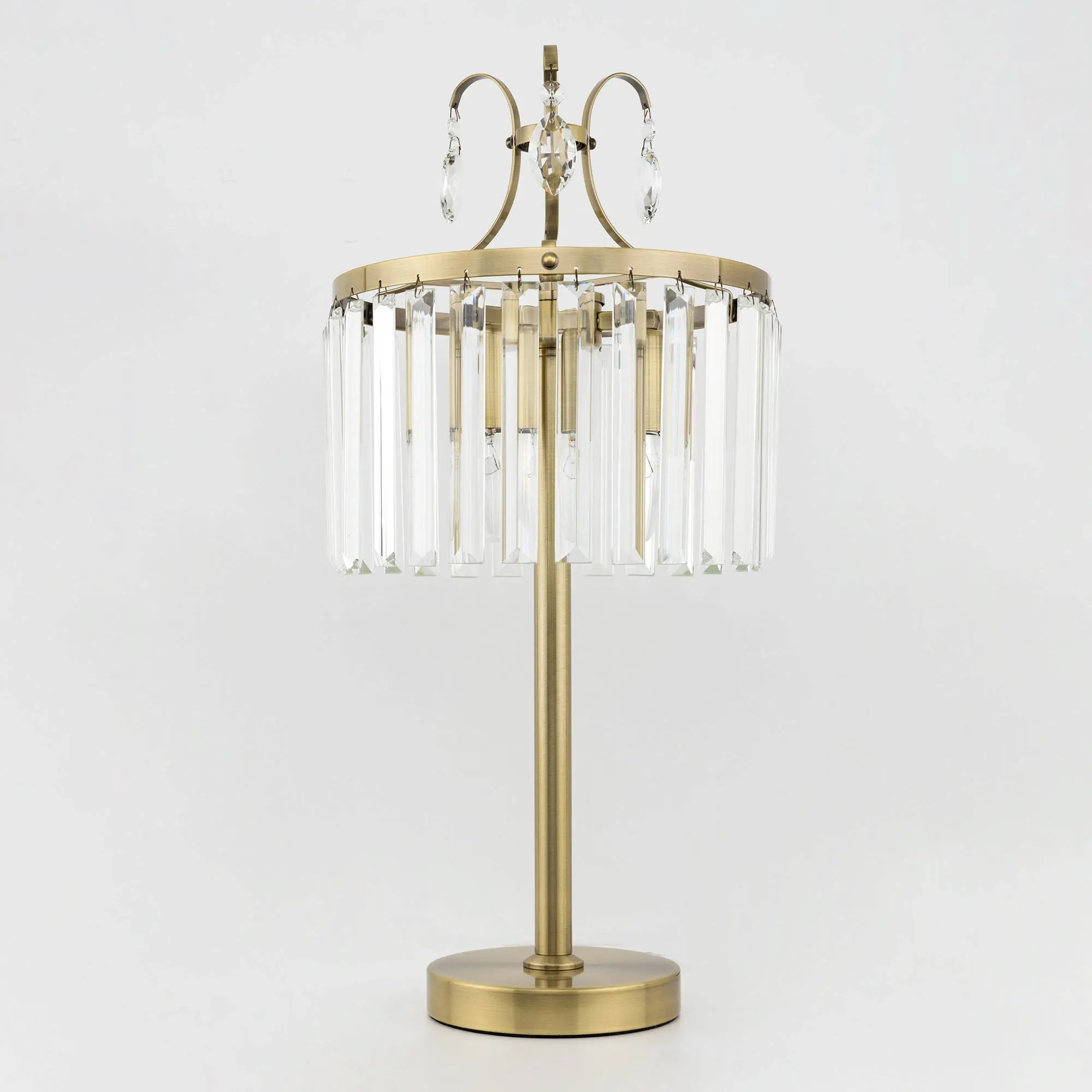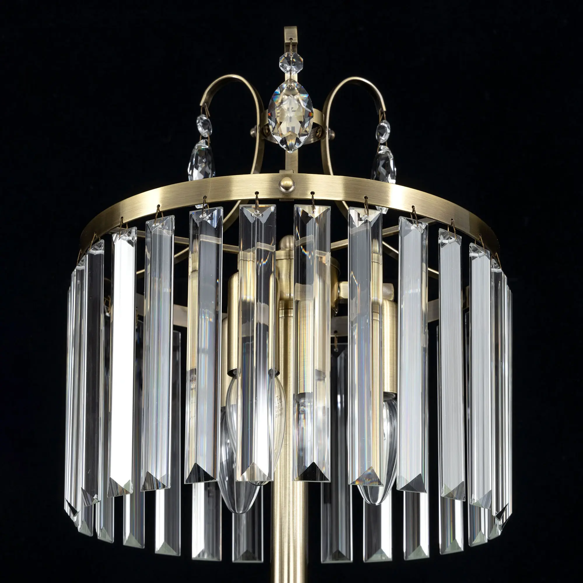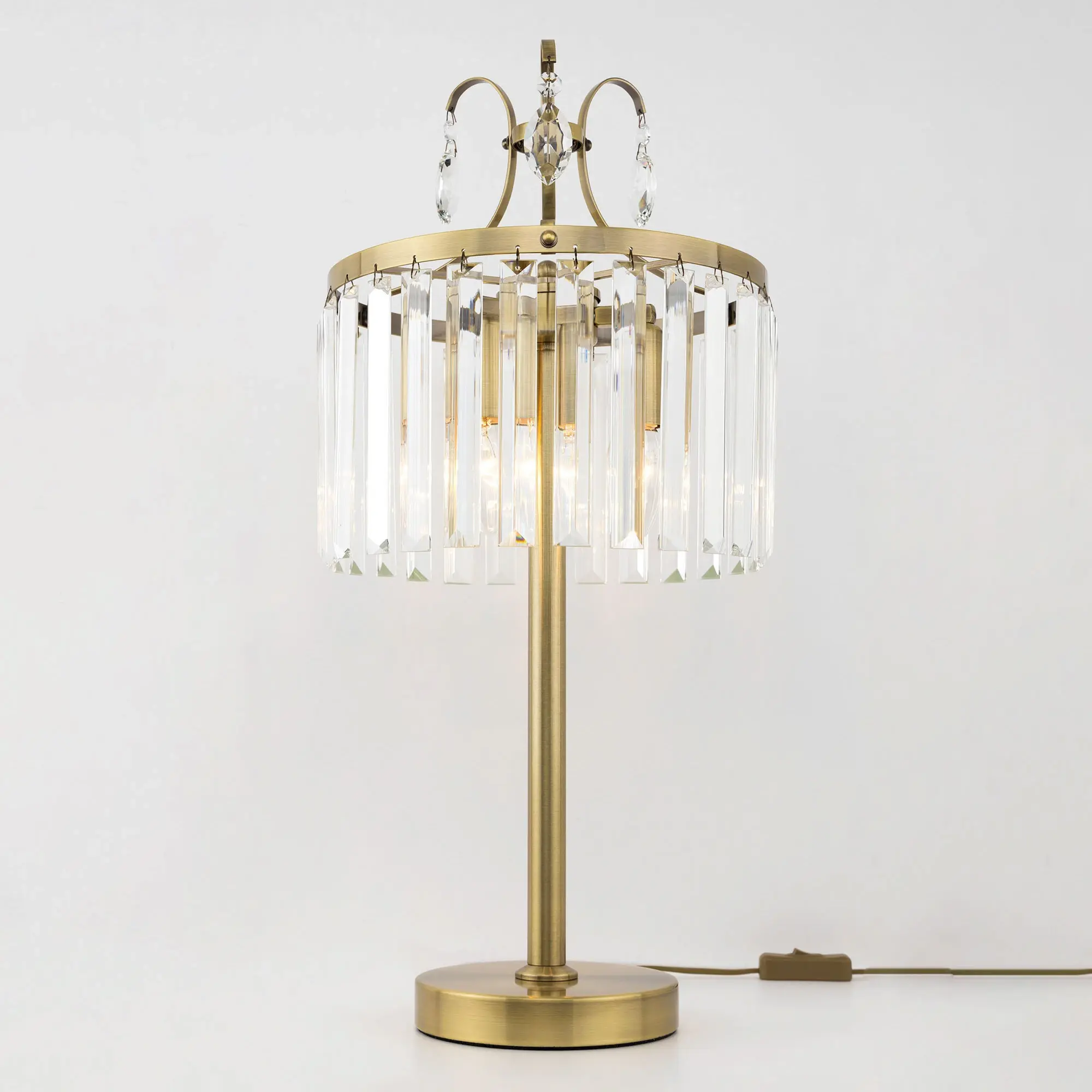 Настольная лампа Citilux Инга CL335833 с шикарными хрустальными подвесками. Корпус светильника металлический, цвет бронза. В изделии используются 3 лампы с цоколем Е14, максимальной мощностью для ламп накаливания 60Вт (в комплект не входят, приобретаются отдельно). Высота светильника 56см, диаметр хрустального абажура 27см. Длина сетевого шнура 170см, выключатель находится на расстоянии 20см от основания. Светильник можно разместить на камине, столе или прикроватной тумбе. Он отлично подойдет для освещения зала, гостиной, спальни или кабинета, оформленных в классическом или современном стиле.