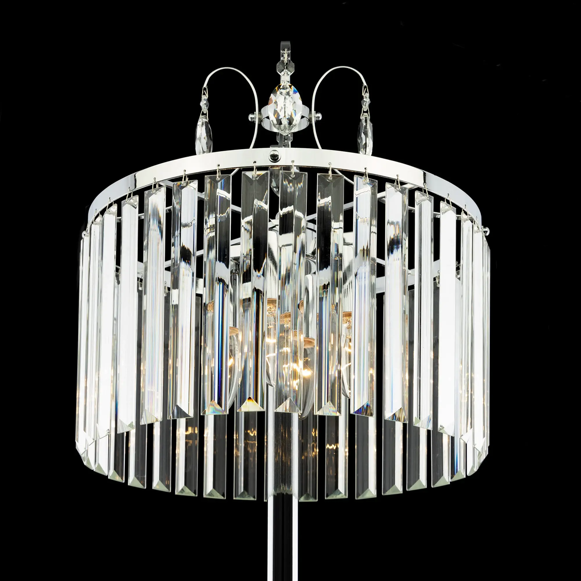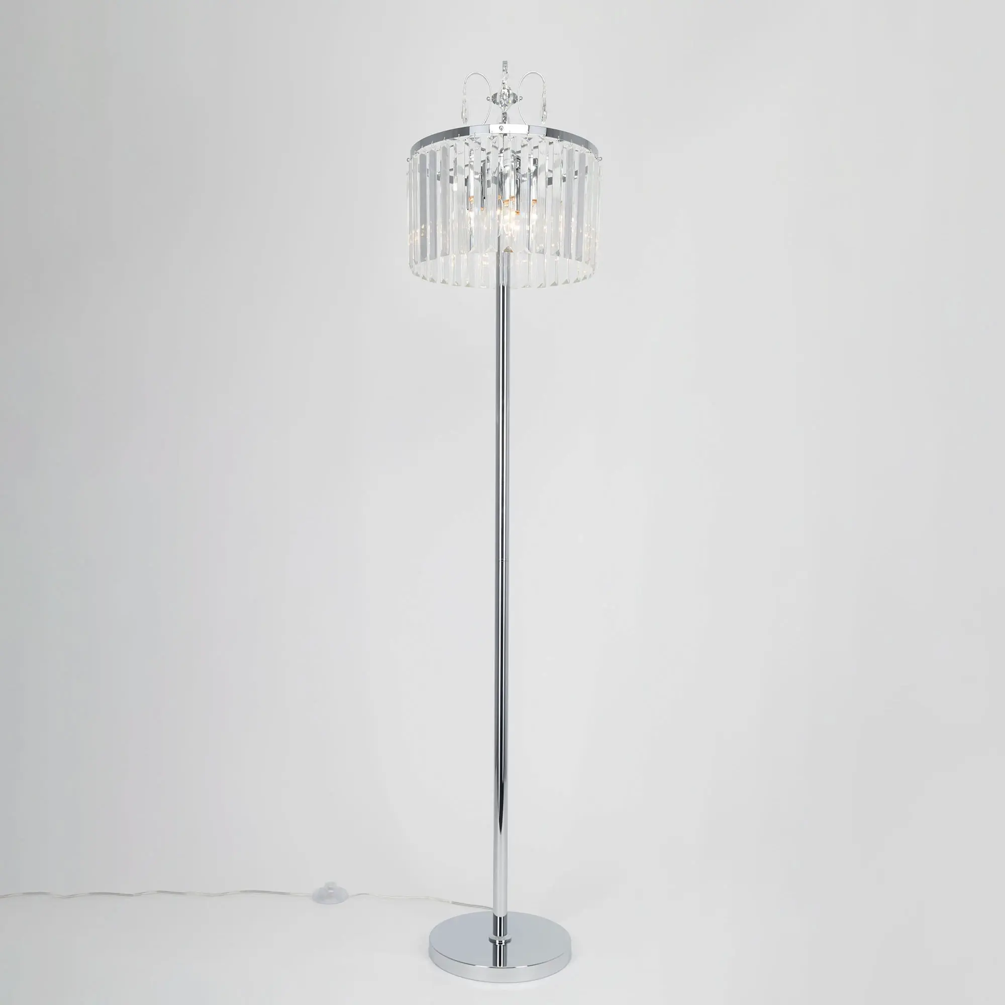 Напольный торшер Citilux Инга CL335941 с шикарными хрустальными подвесками. Корпус светильника металлический, цвет хром. В изделии используются 4 лампы с цоколем Е14, максимальной мощностью для ламп накаливания 60Вт (в комплект не входят, приобретаются отдельно). Высота торшера 152см, диаметр хрустального абажура 33см, длина сетевого шнура 180см, выключатель напольный. Светильник отлично подойдет для освещения зала, гостиной, столовой или кабинета, оформленных в классическом или современном стиле.,
