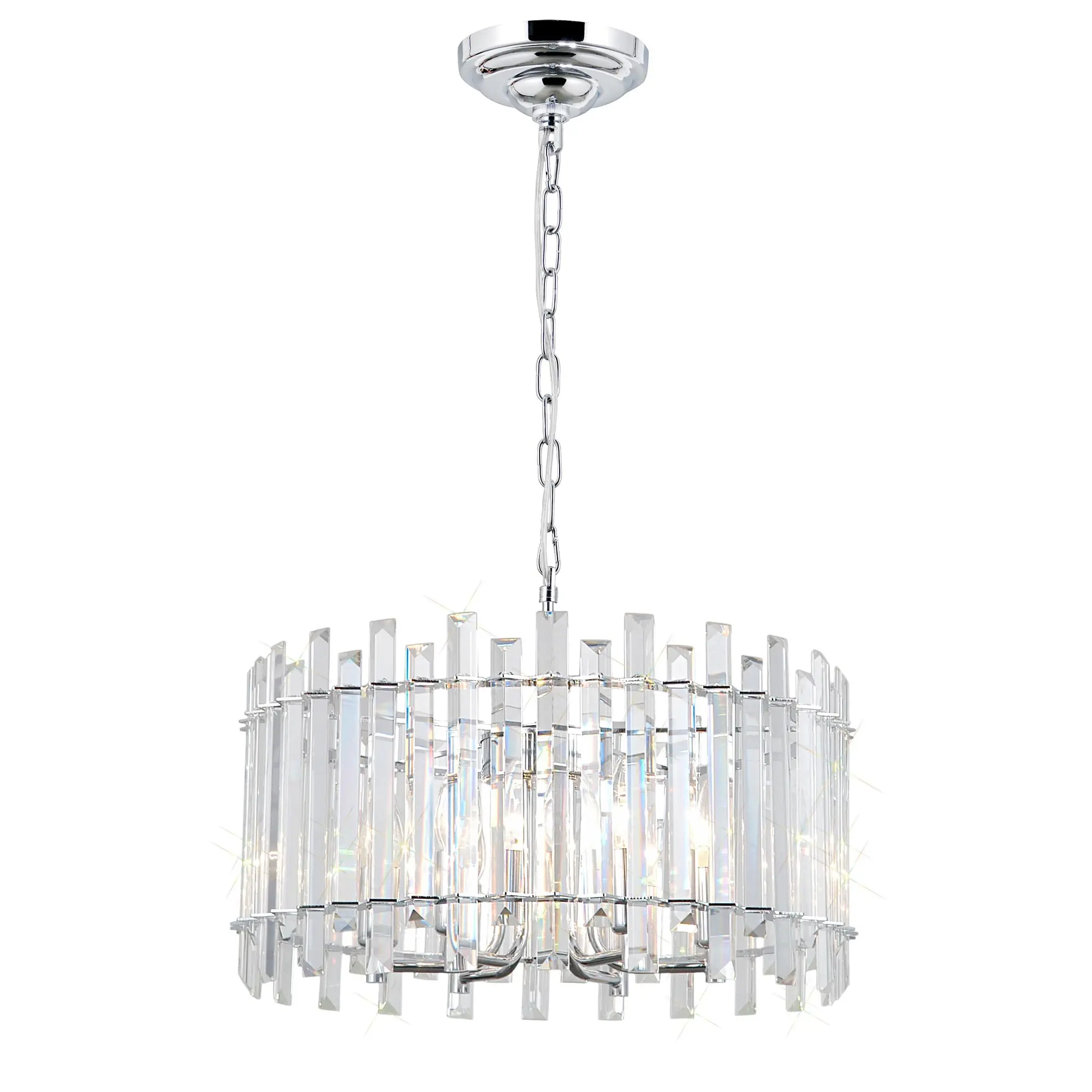 Хрустальная люстра Citilux Ингвар CL334161 выполнена в стиле современной классики. Корпус светильника металлический, цвет хром. Люстра шестирожковая с хрустальным абажуром цилиндрической формы. Хрустальные элементы крупные, кристально прозрачные с современной огранкой.