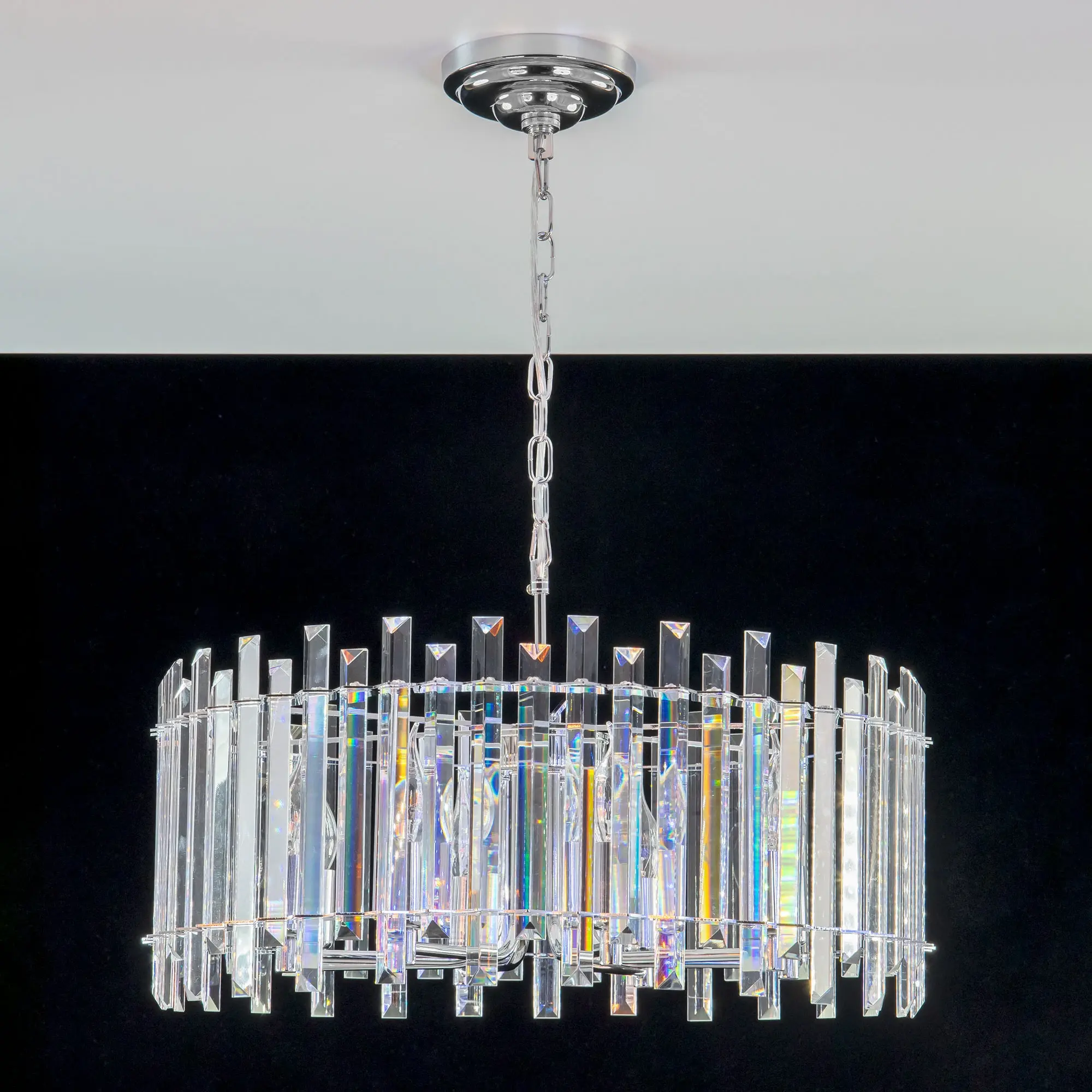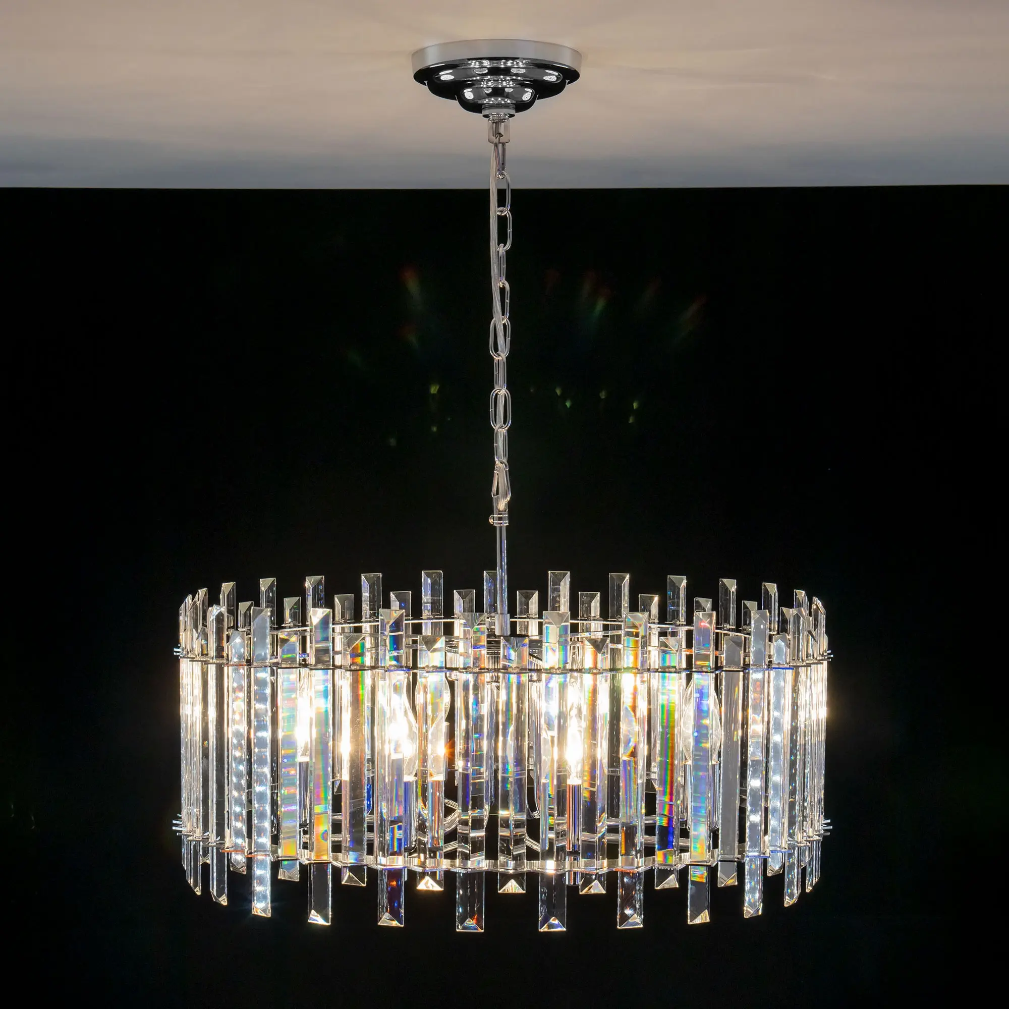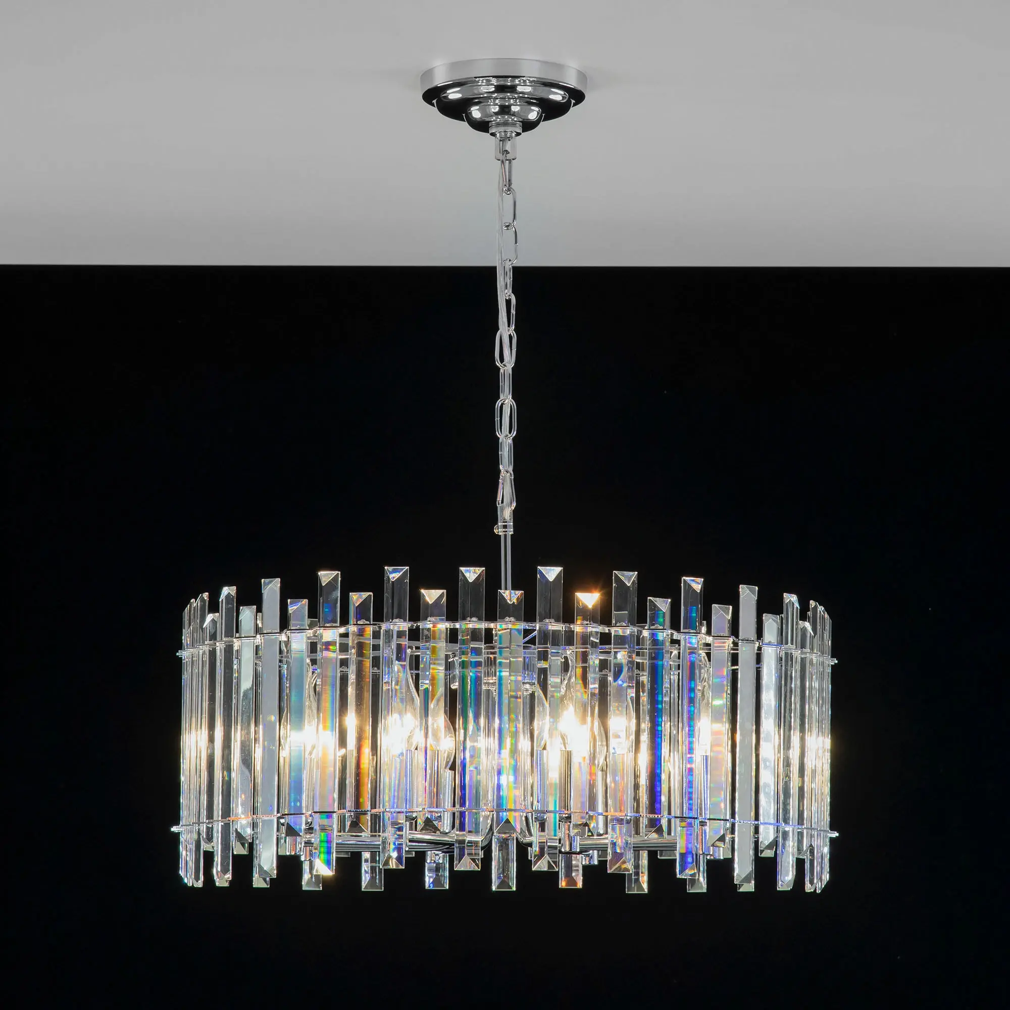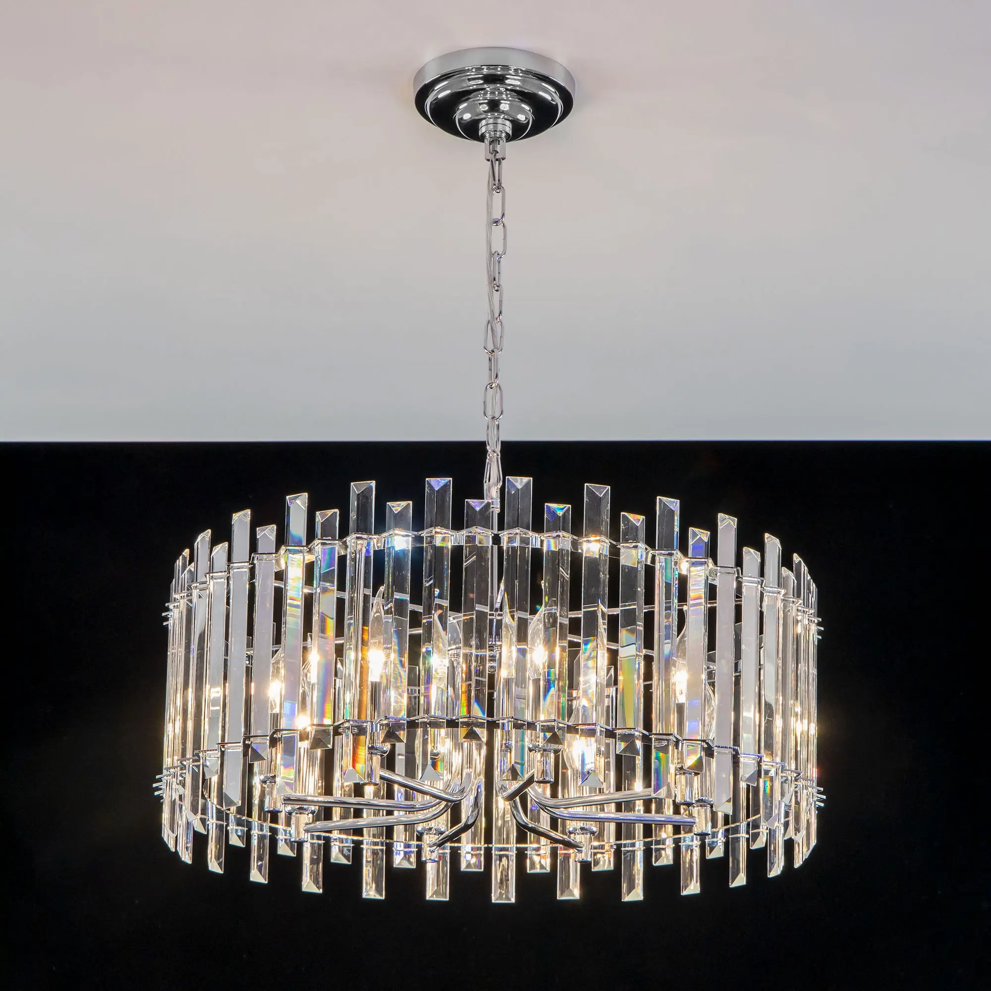 Хрустальная люстра Citilux Ингвар CL334181 выполнена в популярном стиле современной классики. Корпус светильника металлический, цвет хром. Люстра восьмирожковая с хрустальным абажуром цилиндрической формы. Хрустальные элементы крупные, кристально прозрачные с современной огранкой.