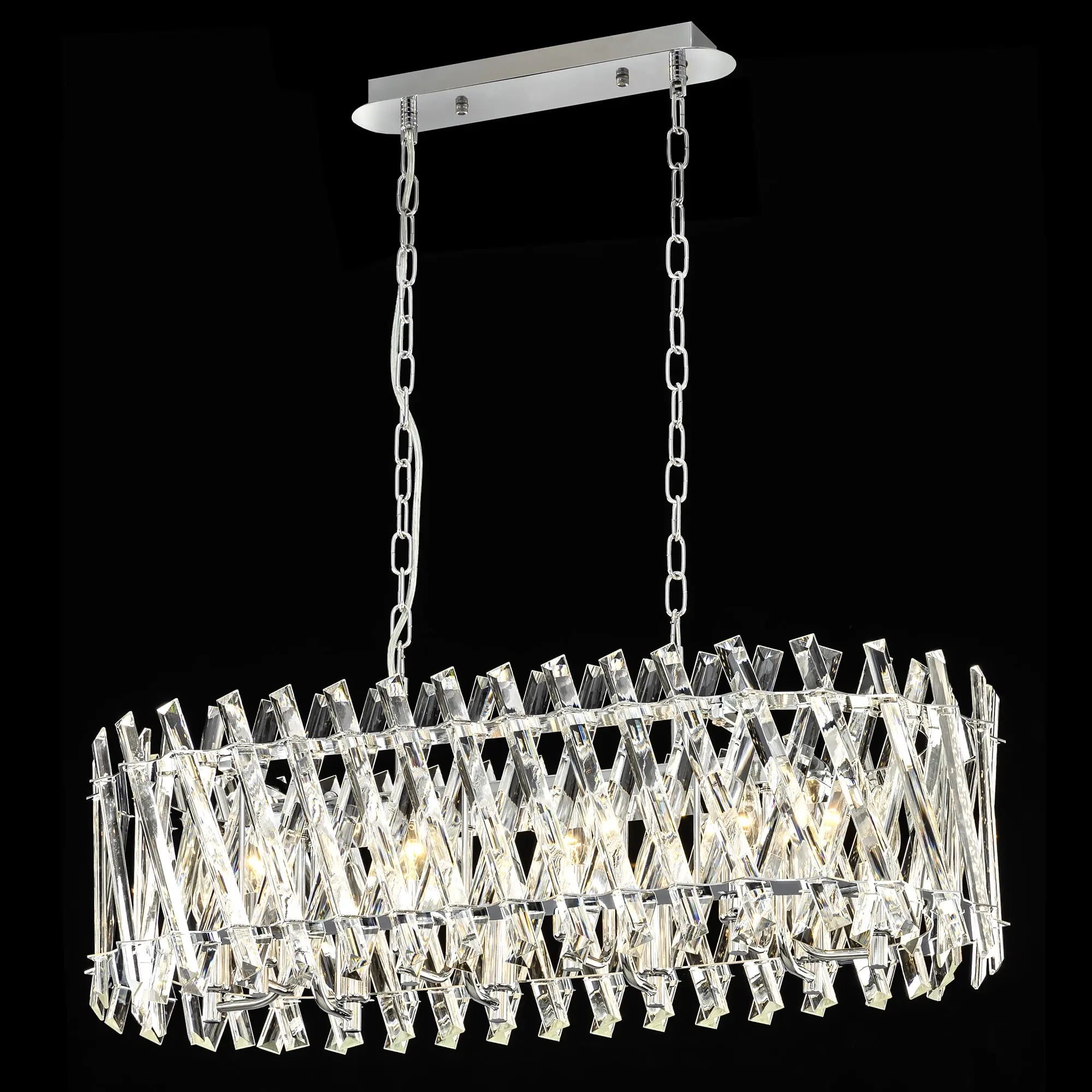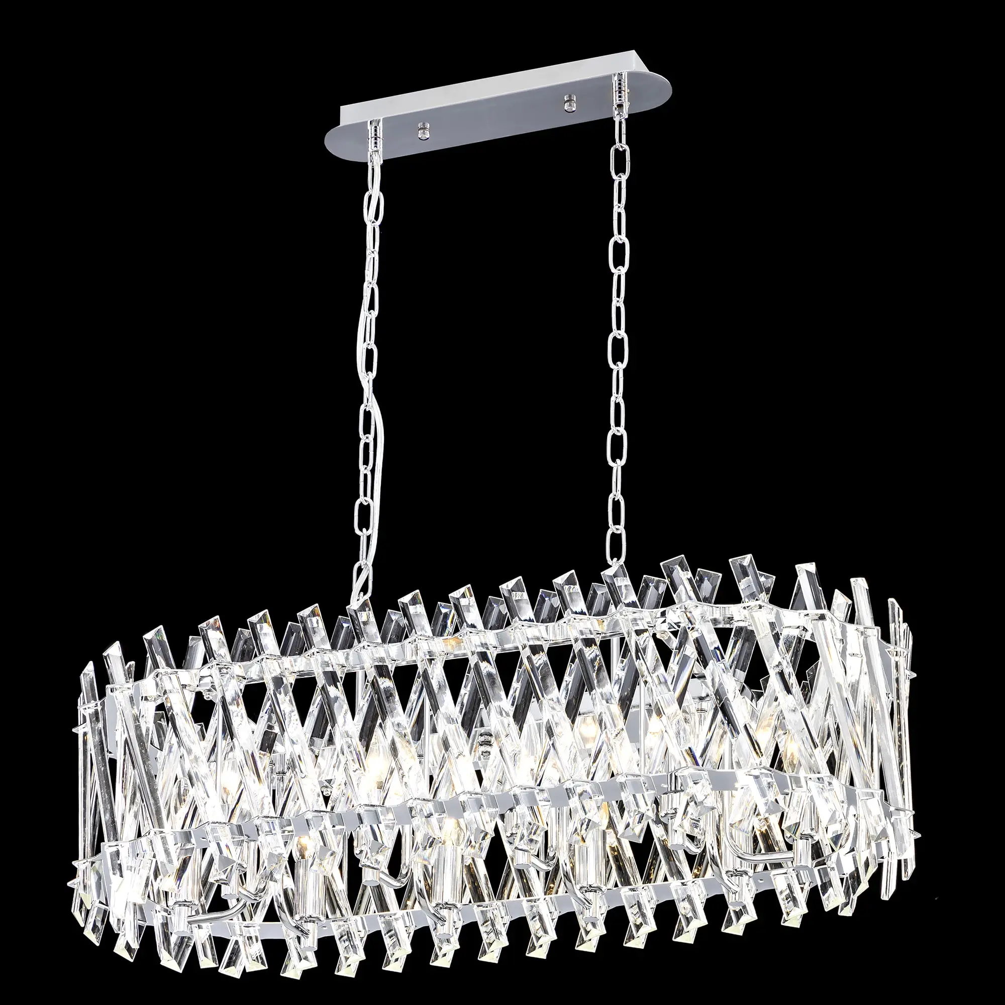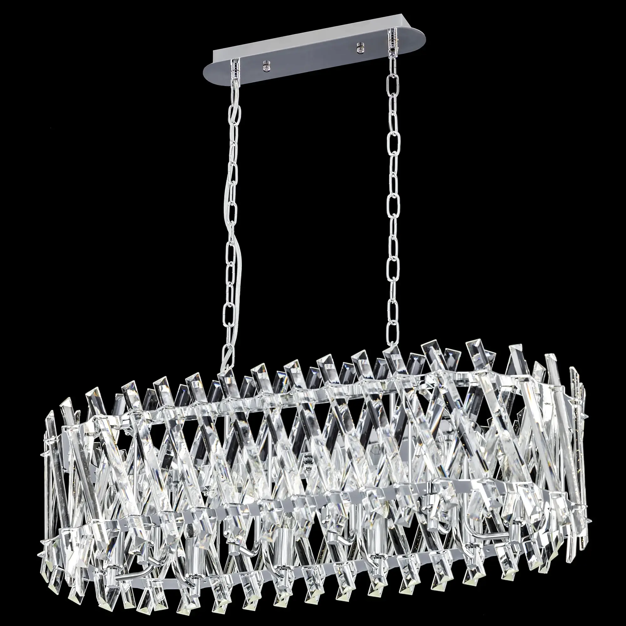 Хрустальная люстра Citilux Ингвар CL334301 выполнена в популярном стиле современной классики. Корпус светильника металлический, цвет хром. Люстра десятирожковая, с большим хрустальным абажуром овальной формы. Хрустальные элементы крупные, кристально прозрачные с современной огранкой.