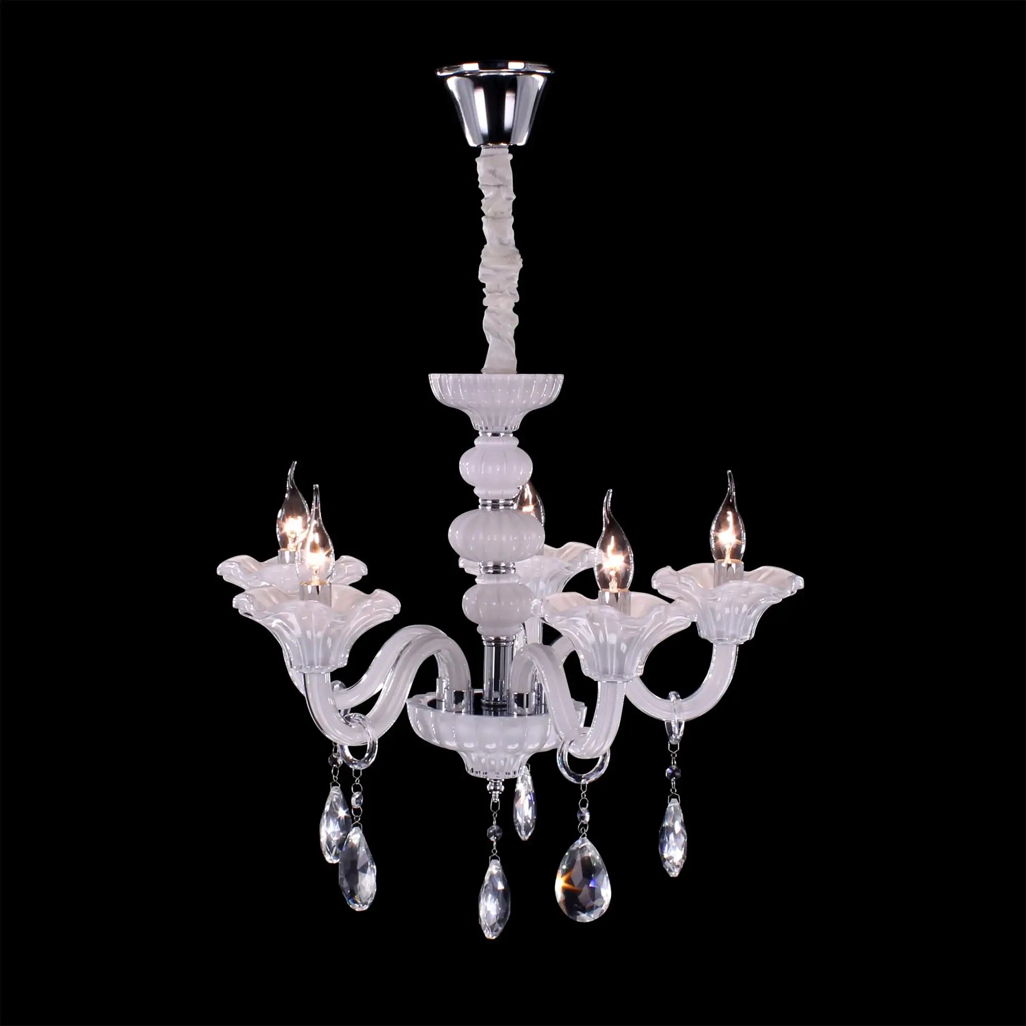 Стеклянная подвесная люстра Citilux Irida CL351150 в неоклассическом стиле. Арматура — металлическая, с хромированным покрытием, корпус изготовлен из белого стекла. Рожки с открытыми лампами напоминают старинные подсвечники. Внешний вид люстры дополняют изящные подвески из хрусталя в форме капли.